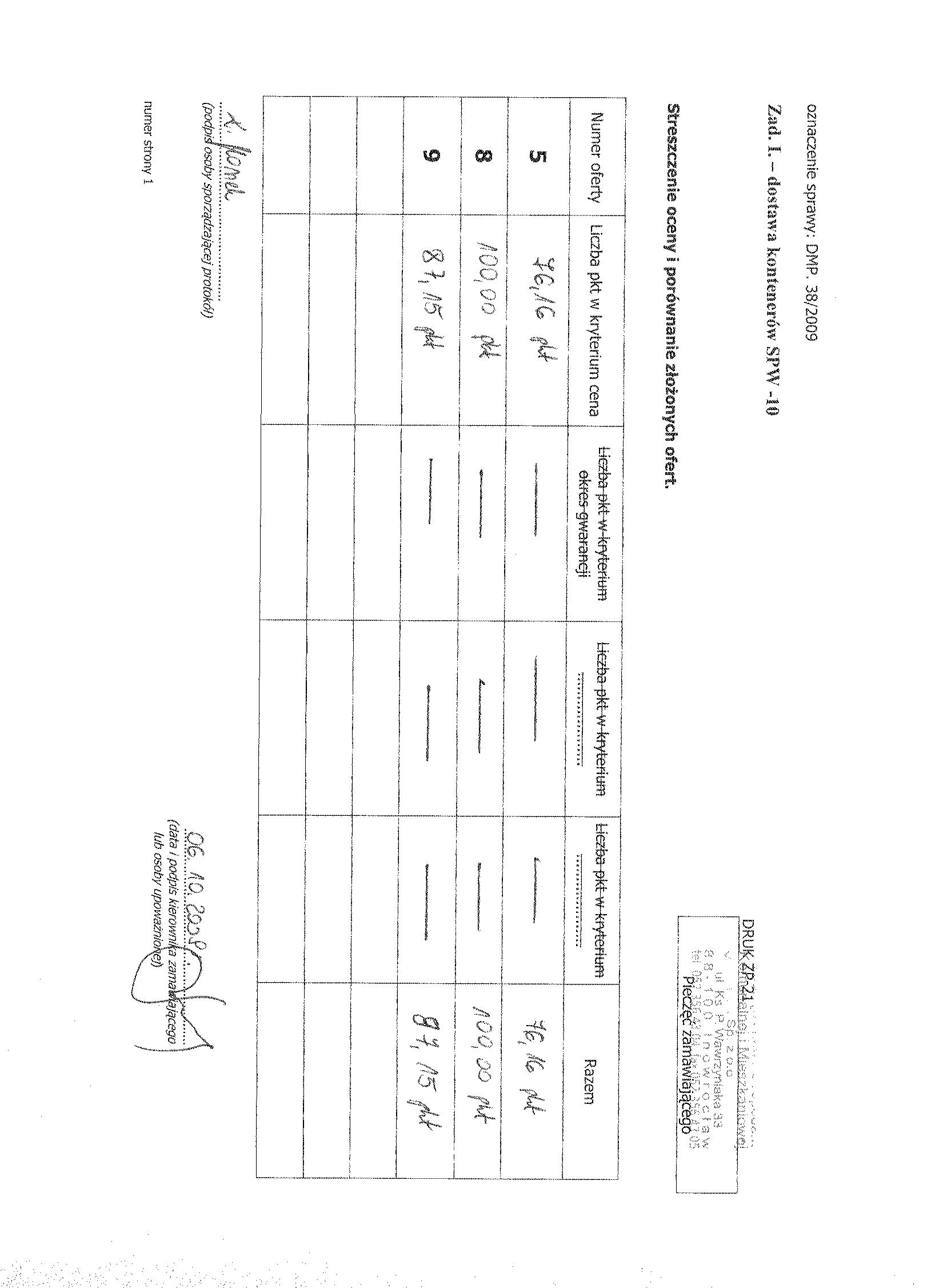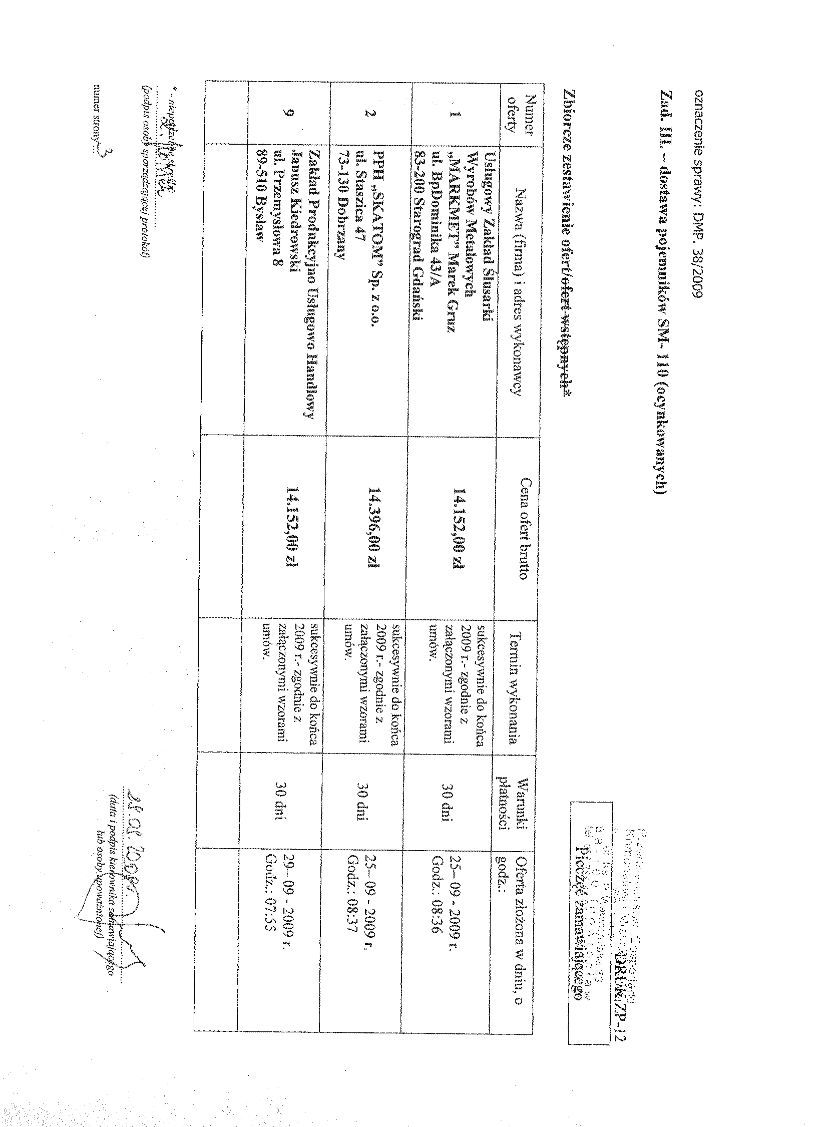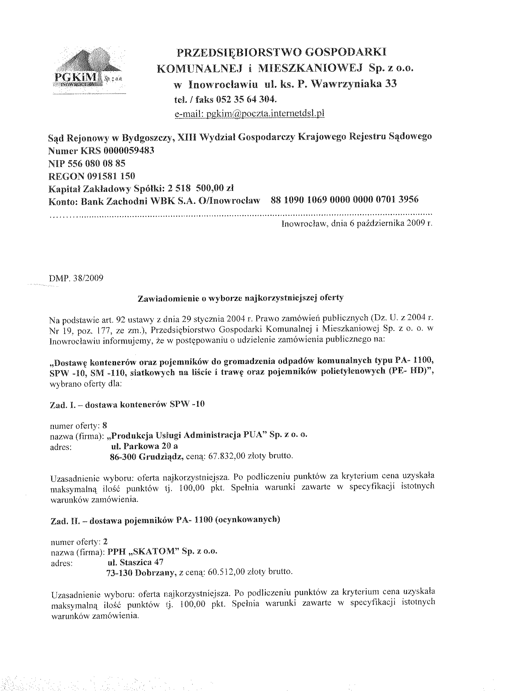 Numer sprawy: DMP.38/2009聽聽聽聽聽聽聽聽Inowroc艂aw, dnia 15 wrze艣nia 2009 r.聽聽 聽