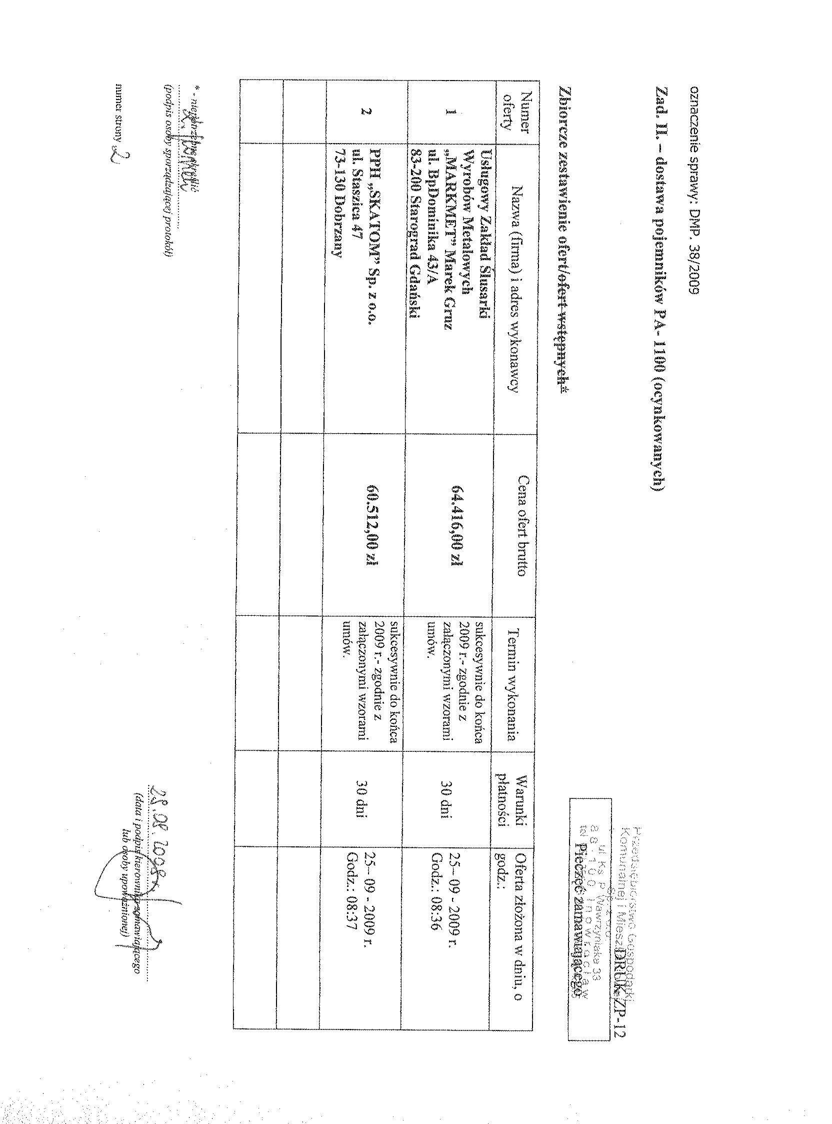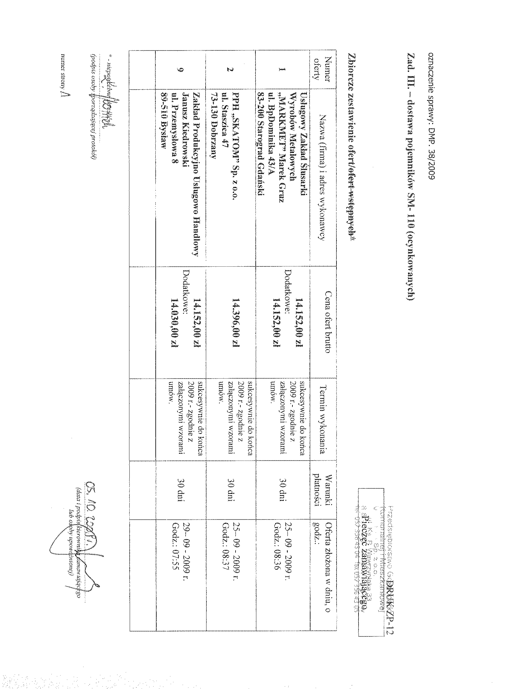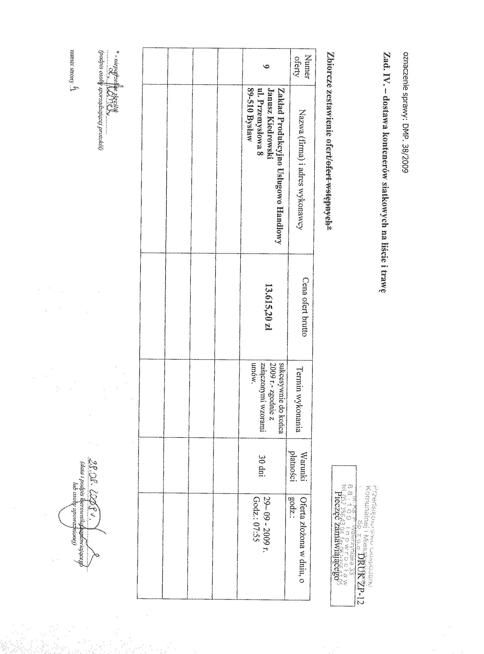 Numer sprawy: DMP.38/2009聽聽聽聽聽聽聽聽Inowroc艂aw, dnia 15 wrze艣nia 2009 r.聽聽 聽