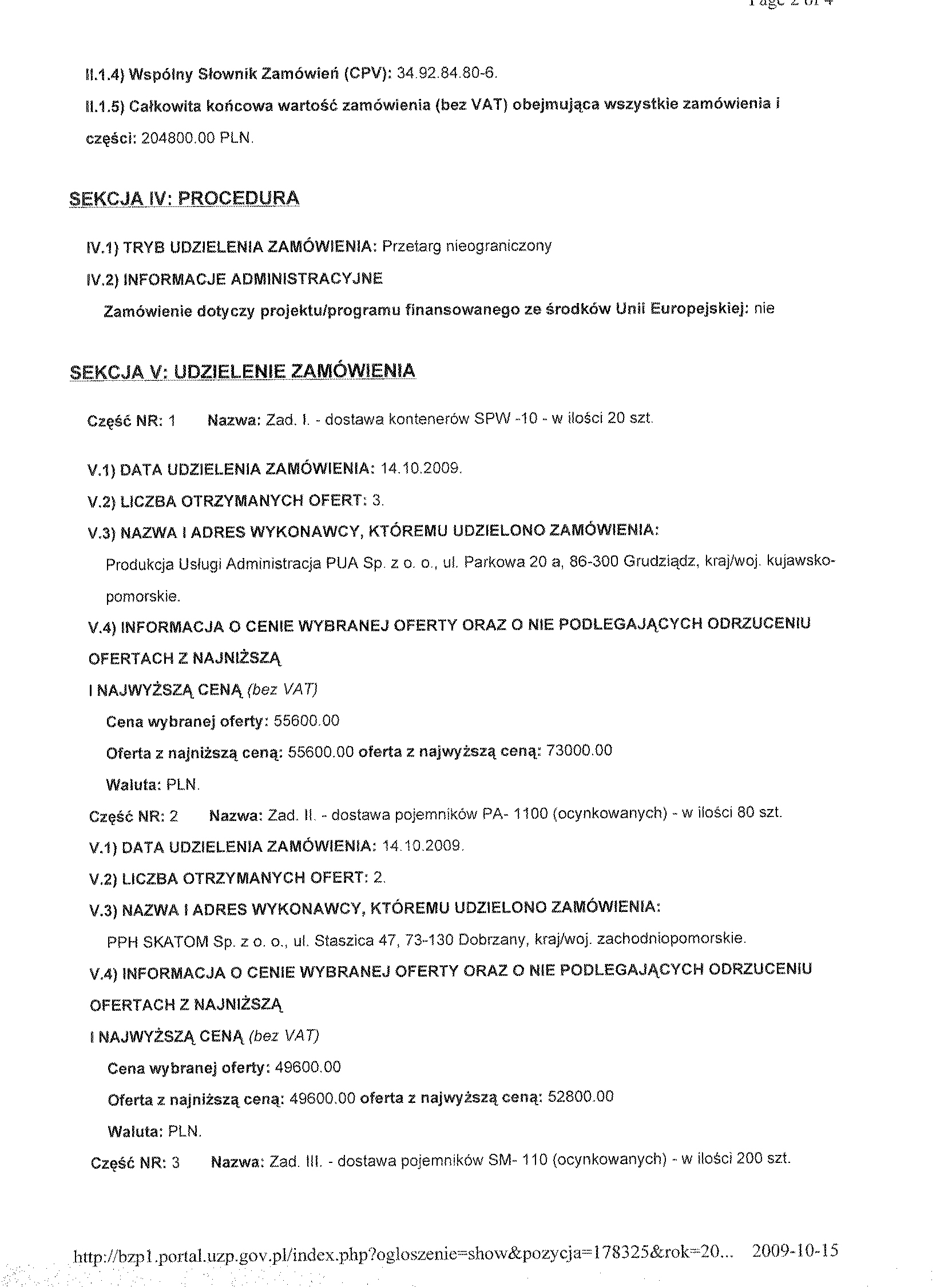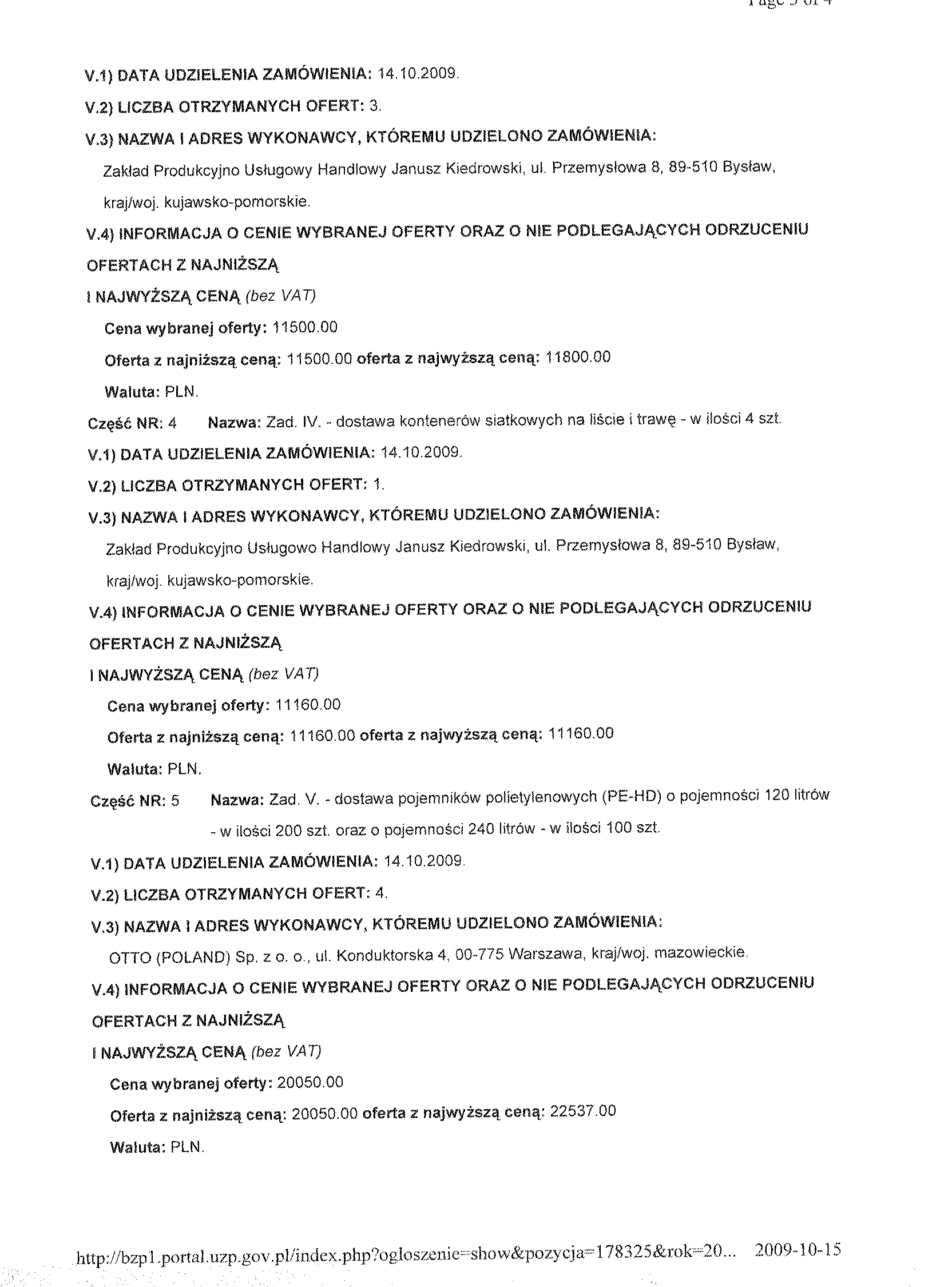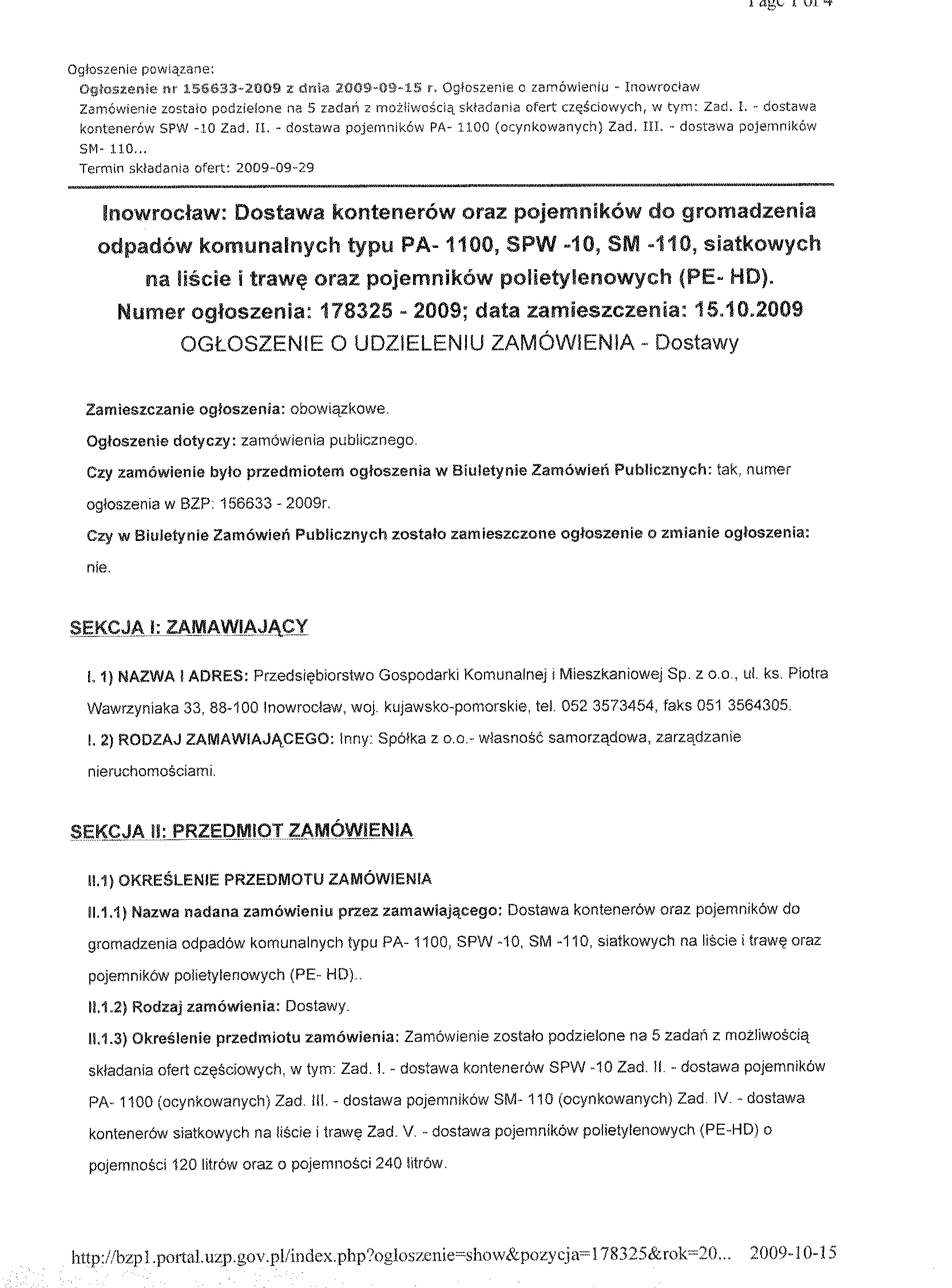 Numer og艂oszenia w BZP: 156633 - 2009; data zamieszczenia 15/09/2009 r. 聽