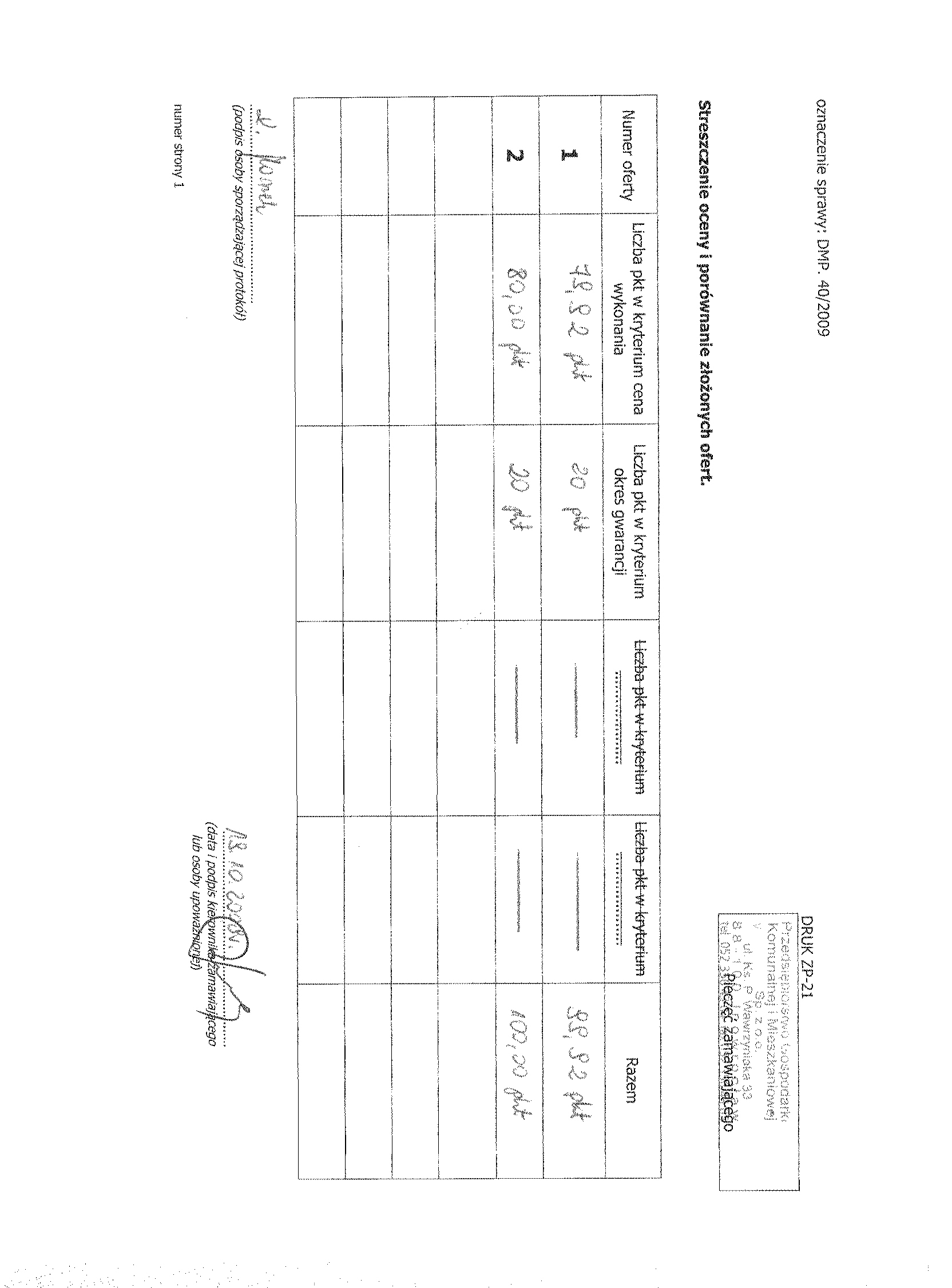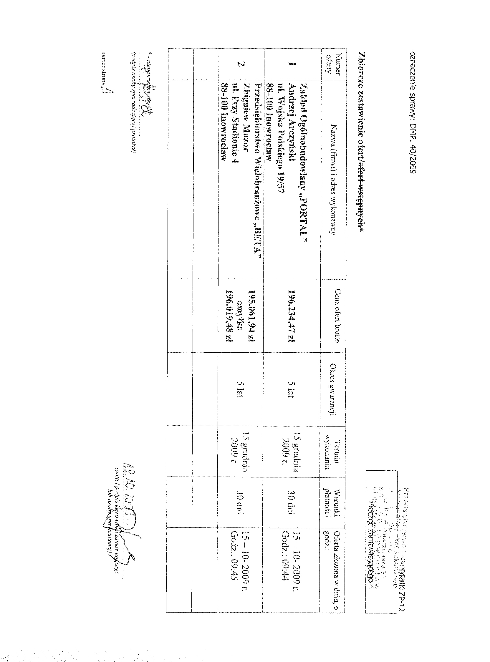 Numer sprawy: DMP. 40/2009聽聽聽聽聽聽聽聽聽聽聽聽聽聽聽聽聽聽聽聽聽聽聽聽聽聽聽聽聽聽聽聽聽聽聽Inowroc艂aw, dnia 24 wrze艣nia 2009 r.聽聽 聽