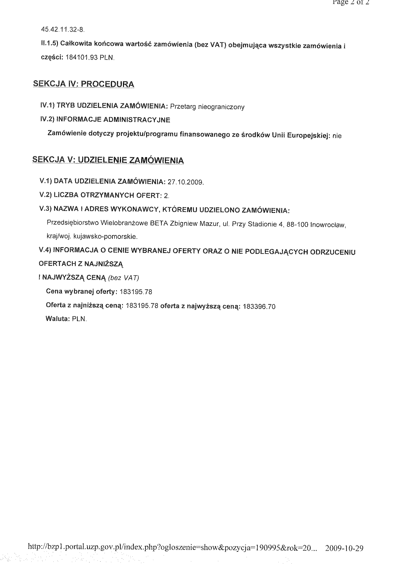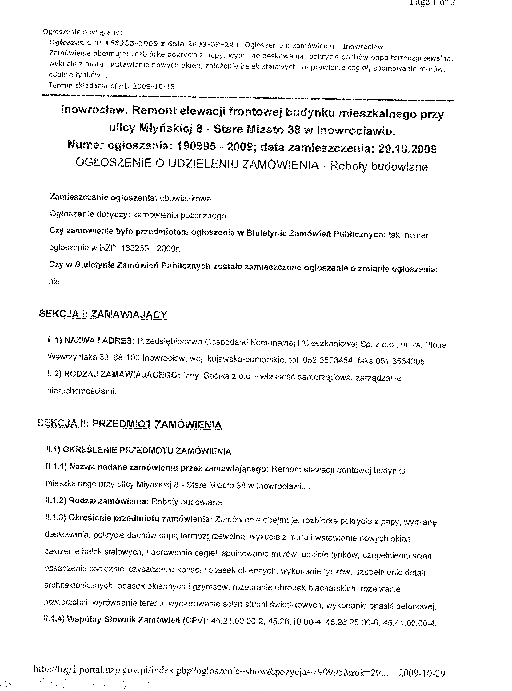 Numer og艂oszenia w BZP: 163253 - 2009; data zamieszczenia 24/09/2009 r. 聽