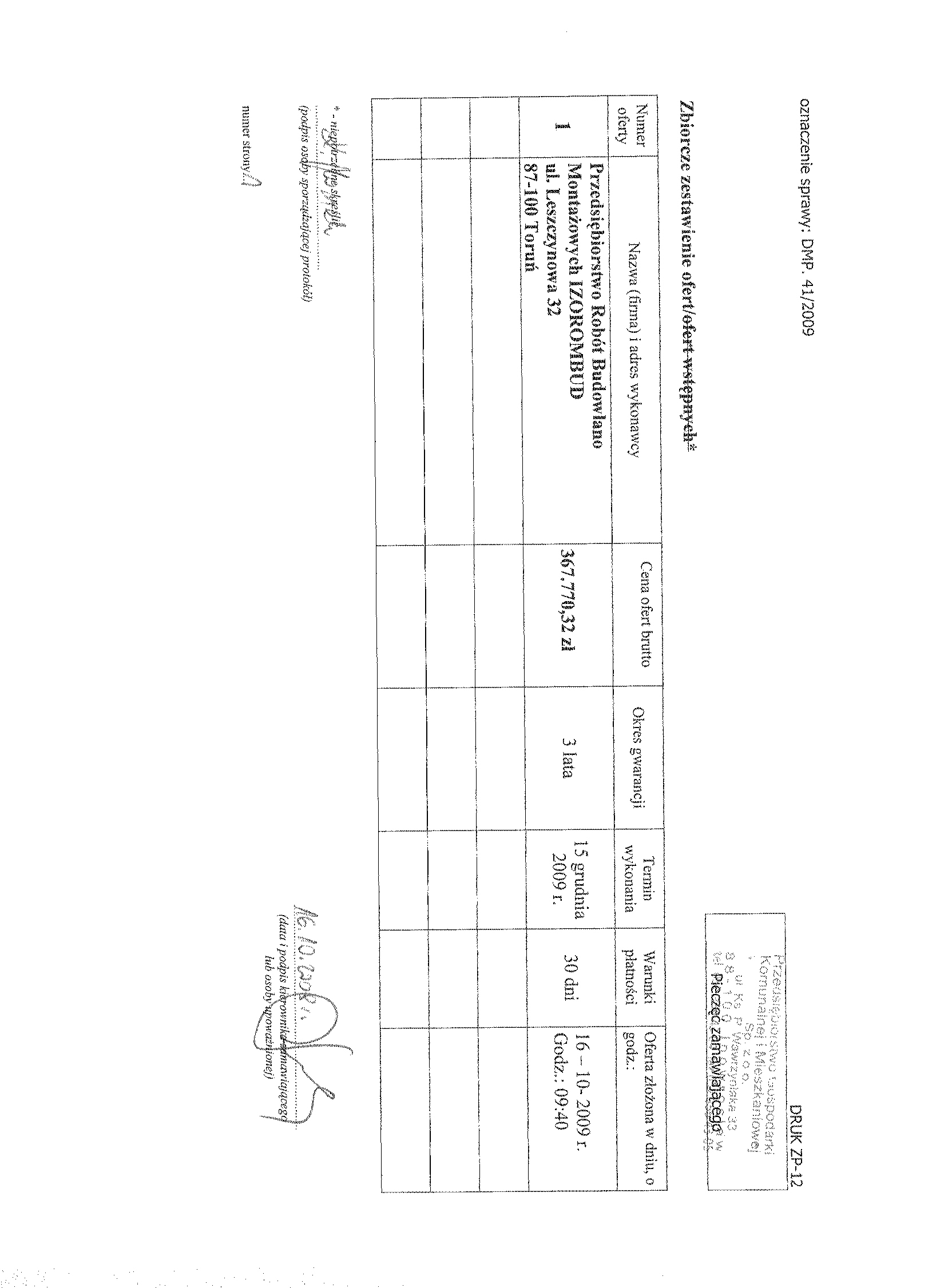 Numer sprawy: DMP. 41/2009聽聽聽聽聽聽聽聽聽聽聽聽聽聽聽聽聽聽聽聽聽聽聽聽聽聽聽聽聽Inowroc艂aw, dnia 25 wrze艣nia 2009 r.聽聽 聽