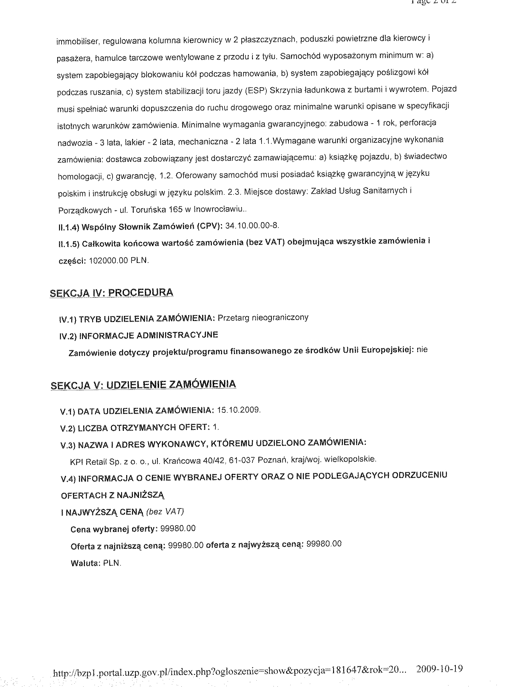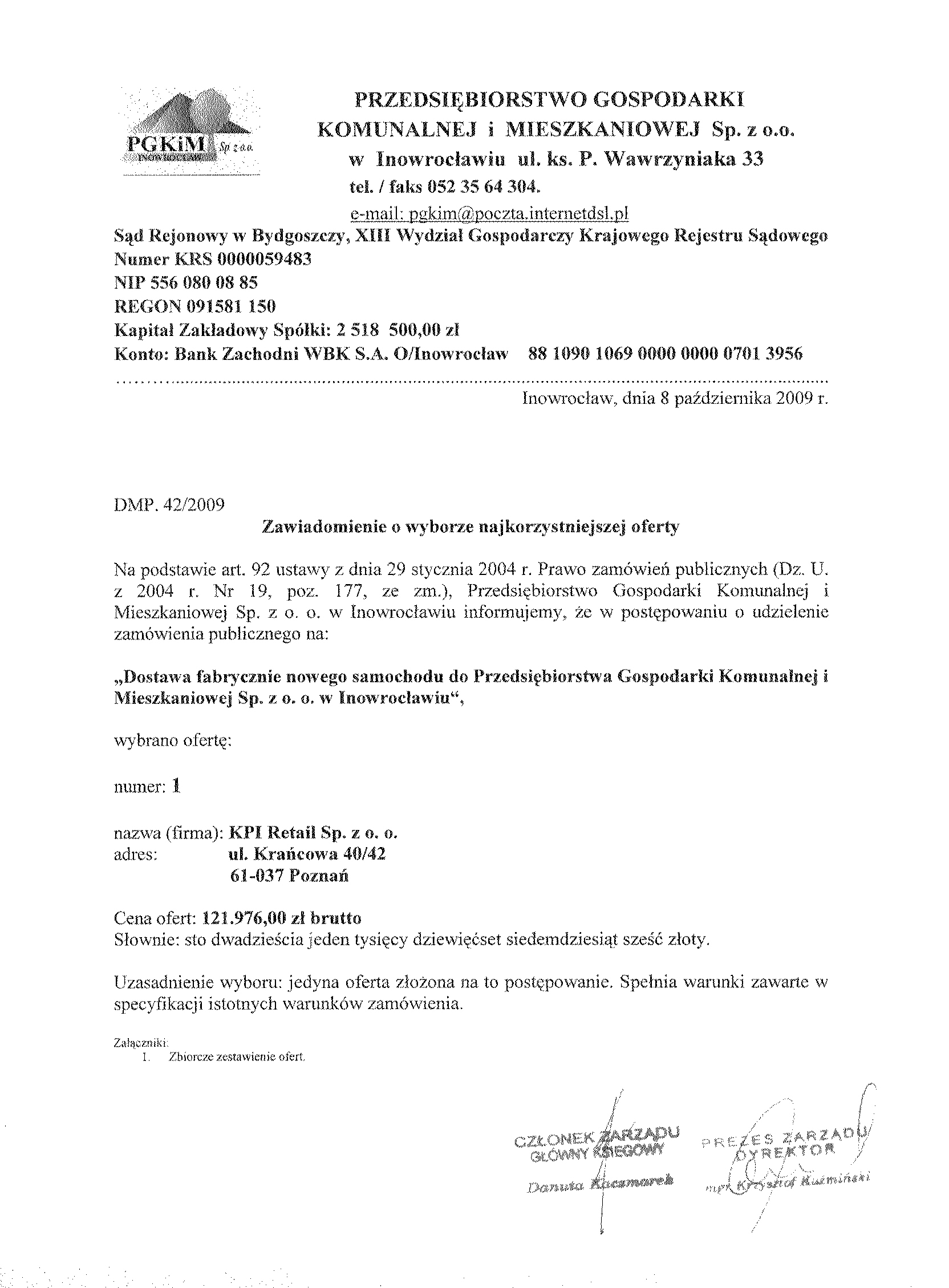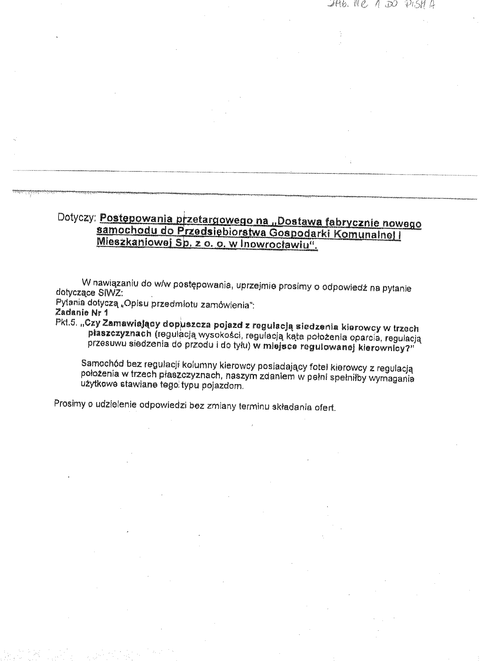 Tytu艂 post臋powania: "Dostawa fabrycznie nowego samochodu do Przedsi臋biorstwa Gospodarki Komunalnej i Mieszkaniowej Sp. z o. o. w Inowroc艂awiu |