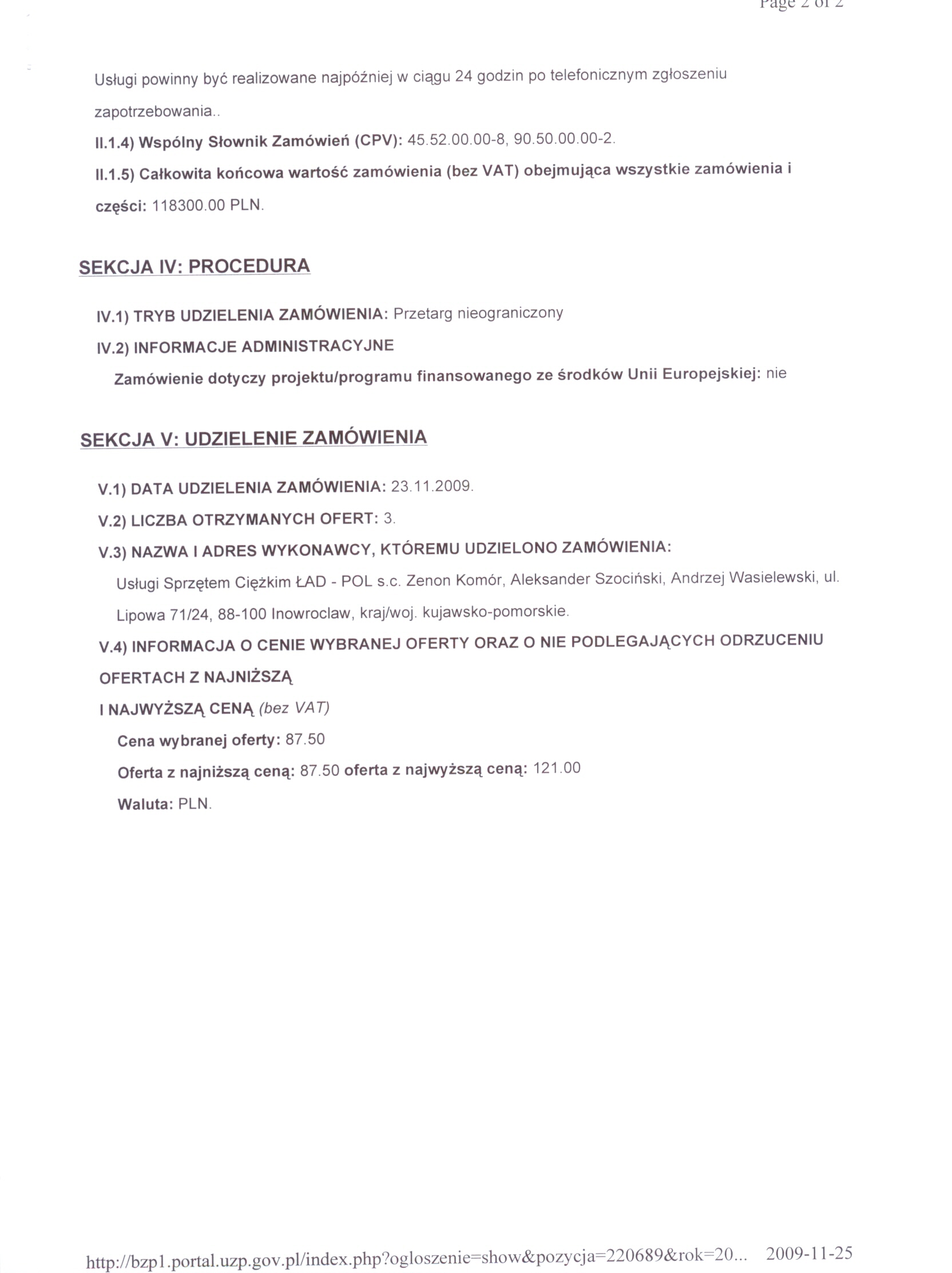 Numer og艂oszenia w BZP: 179169 - 2009; data zamieszczenia 15/10/2009 r. 聽