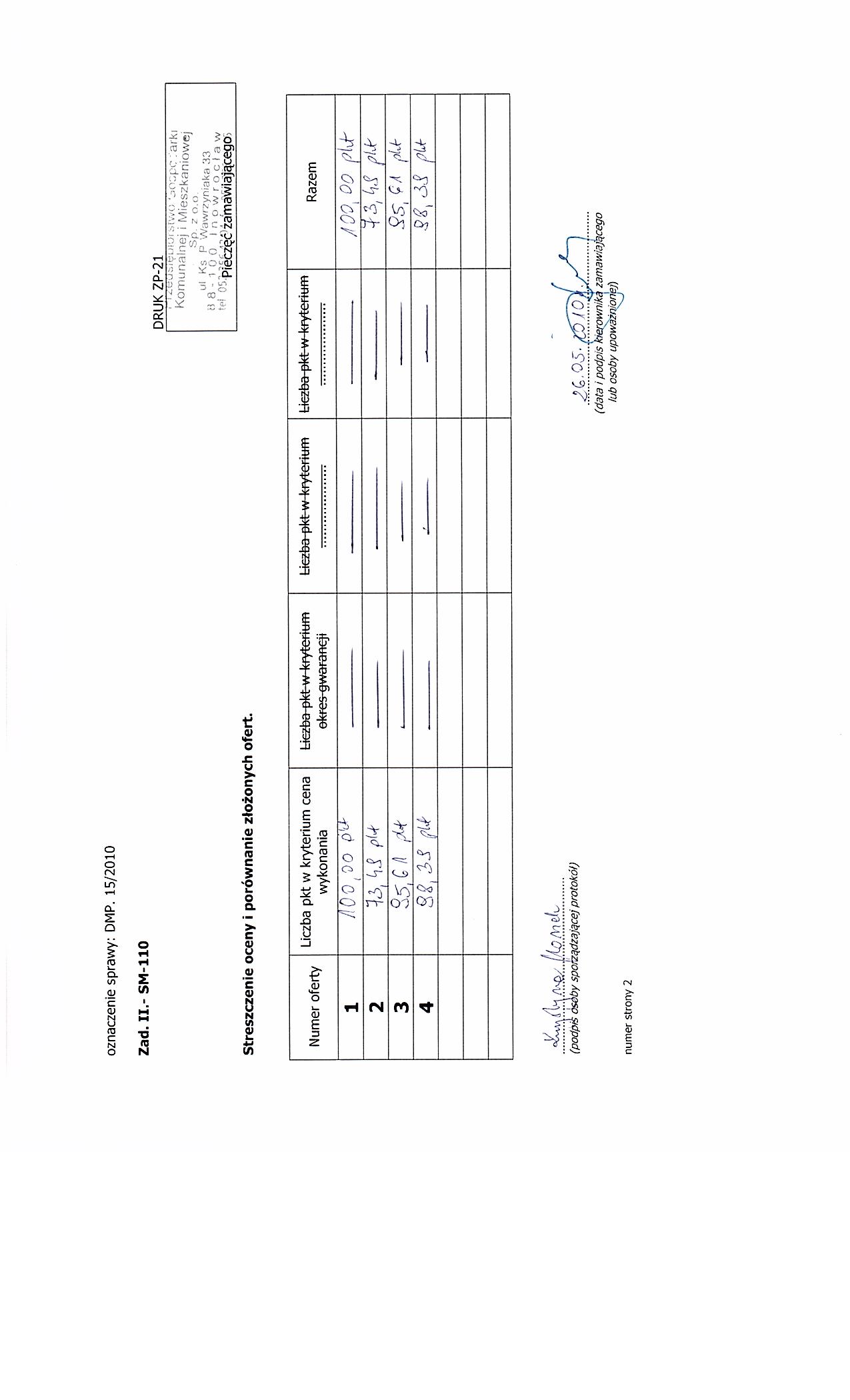 CZ臉艢膯 Nr: 2 NAZWA: Zad. II. - SM - 110. 1) Kr贸tki opis ze wskazaniem wielko艣ci lub zakresu zam贸wienia: zakres zam贸wienia 150 szt.. 2) Wsp贸lny S艂ownik Zam贸wie艅 (CPV): 34.92.84.80-6. 3) Czas trwania lub termin wykonania: Okres w dniach: 30. 4) Kryteria oceny ofert: najni偶sza cena.