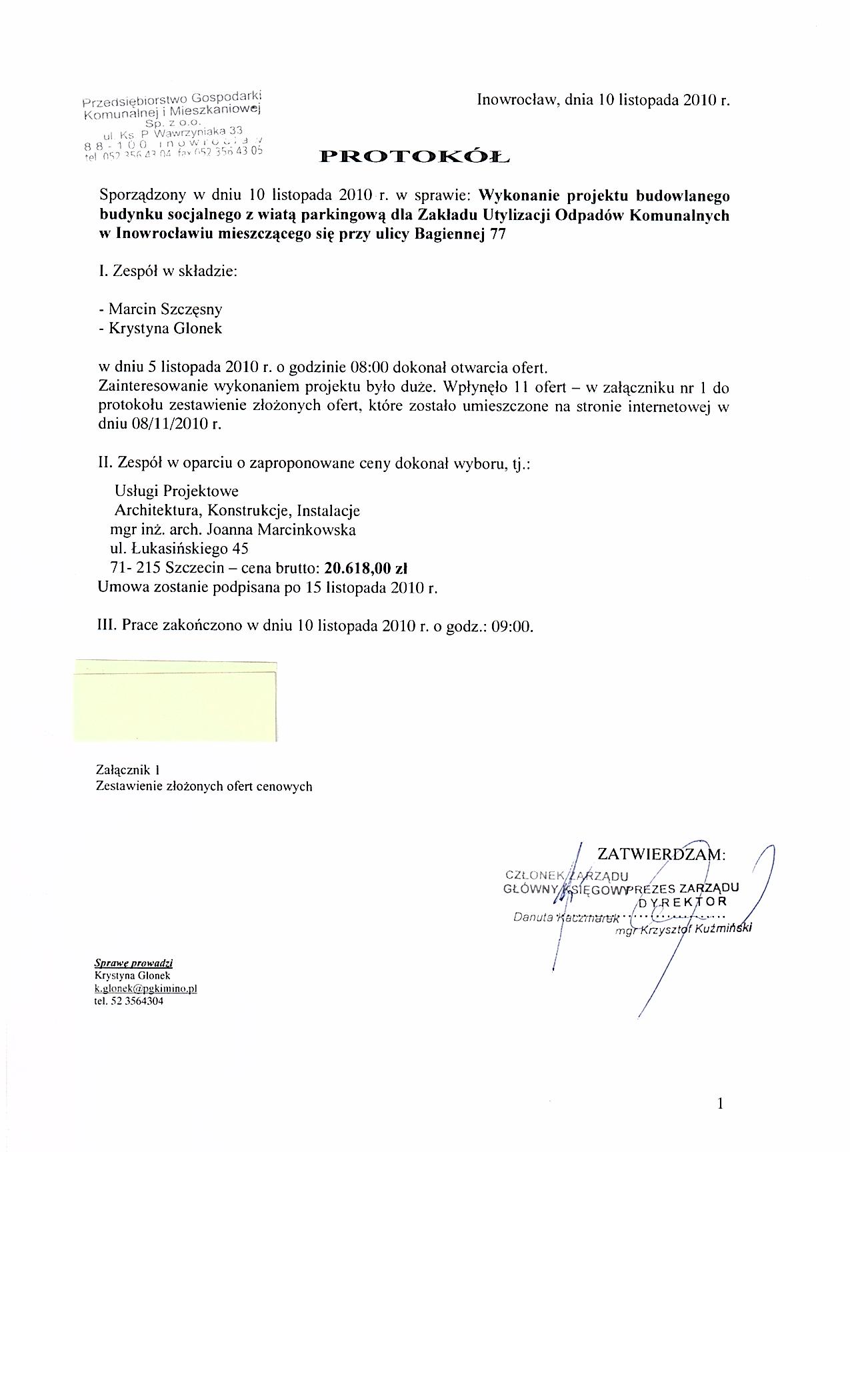 PRZEDSIĘBIORSTWO GOSPODARKI        KOMUNALNEJ i MIESZKANIOWEJ Sp. z o.o.     w Inowrocławiu ul. ks. P. Wawrzyniaka 33                tel. / faks 052 35 64 304               e-mail: pgkim@poczta.internetdsl.pl Sąd Rejonowy w Bydgoszczy, XIII Wydział Gospodarczy Krajowego Rejestru Sądowego                  Numer KRS 0000059483 NIP 556 080 08 85 REGON 091581 150 Kapitał Zakładowy Spółki: 18 918 600,00 zł Konto: Bank Zachodni WBK S.A. O/Inowrocław   88 1090 1069 0000 0000 0701 3956