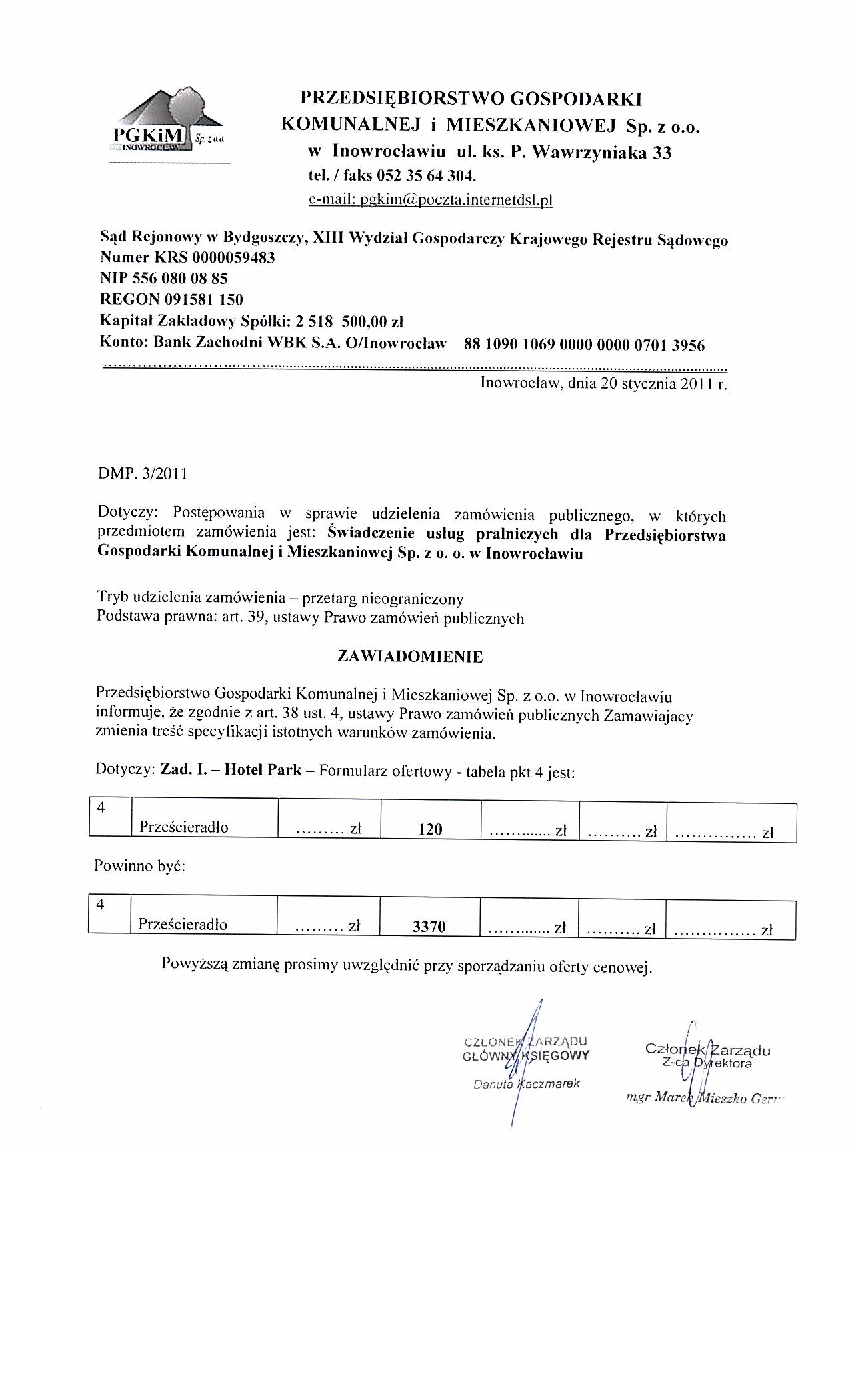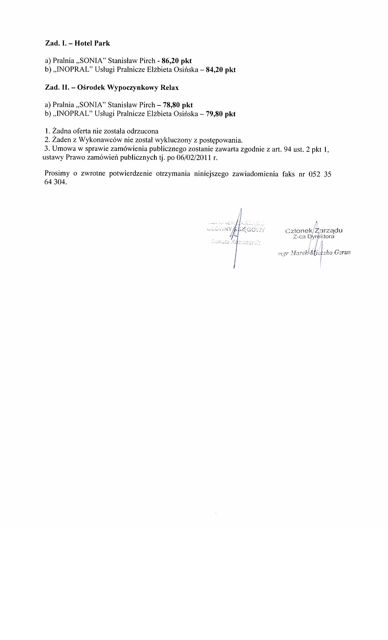 | Typ | Rozmiar | Pobierz | Komentarz | Data dodania | Licznik | ? | 24.3 KB | POBIERZ | Ogłoszenie | 2011-01-14 13:49:33 | 436 | .DOC | 397 KB | POBIERZ | Specyfikacja istotnych warunków zamówienia | 2011-01-14 13:50:39 | 636 | graf. | 268 KB | POBIERZ | Odpowiedzi na pytania | 2011-01-20 09:54:49 | 534 | graf. | 114.4 KB | POBIERZ | Treść pytań | 2011-01-20 09:55:05 | 499 | graf. | 225.3 KB | POBIERZ | Zmiana Formularza ofertowego w poz. 4 - Zad. I. | 2011-01-20 10:08:58 | 558 | graf. | 221.3 KB | POBIERZ | Wybór najkorzystniejszej oferty | 2011-02-01 11:10:23 | 486 | graf. | 116 KB | POBIERZ | s.2 | 2011-02-01 11:10:33 | 508 | ? | 18.7 KB | POBIERZ | Ogłoszenie o udzieleniu zamówienia- BZP nr 44785-2011 | 2011-02-08 11:44:03 | 449 |