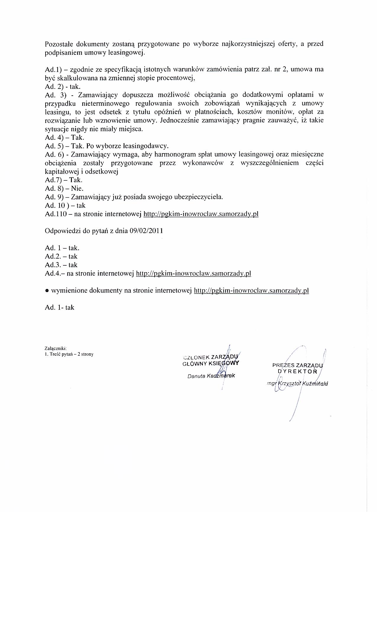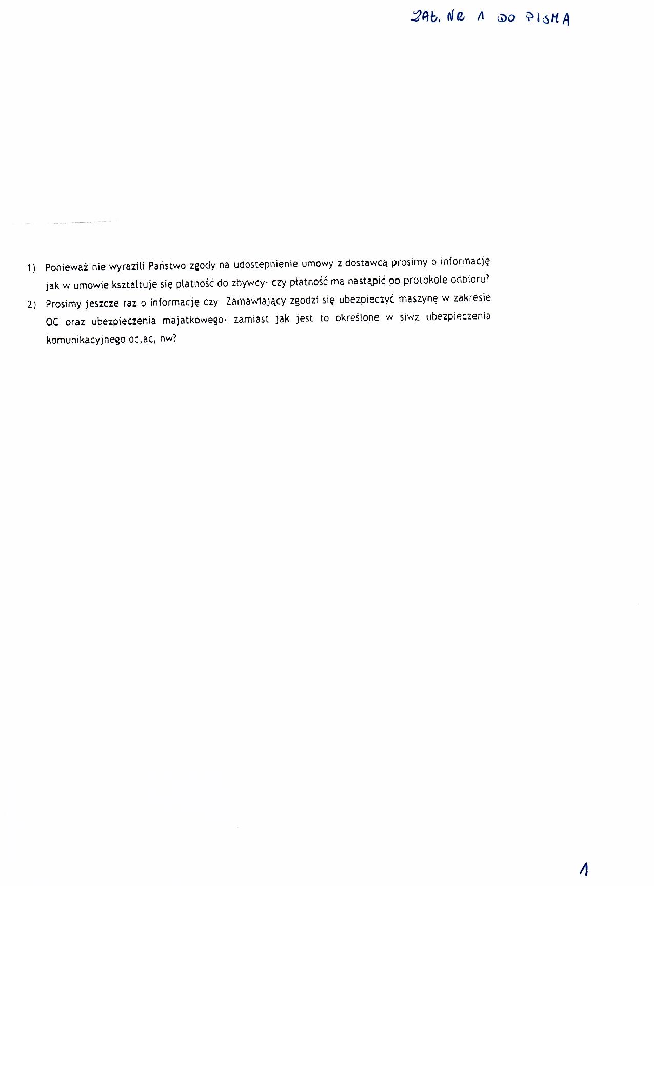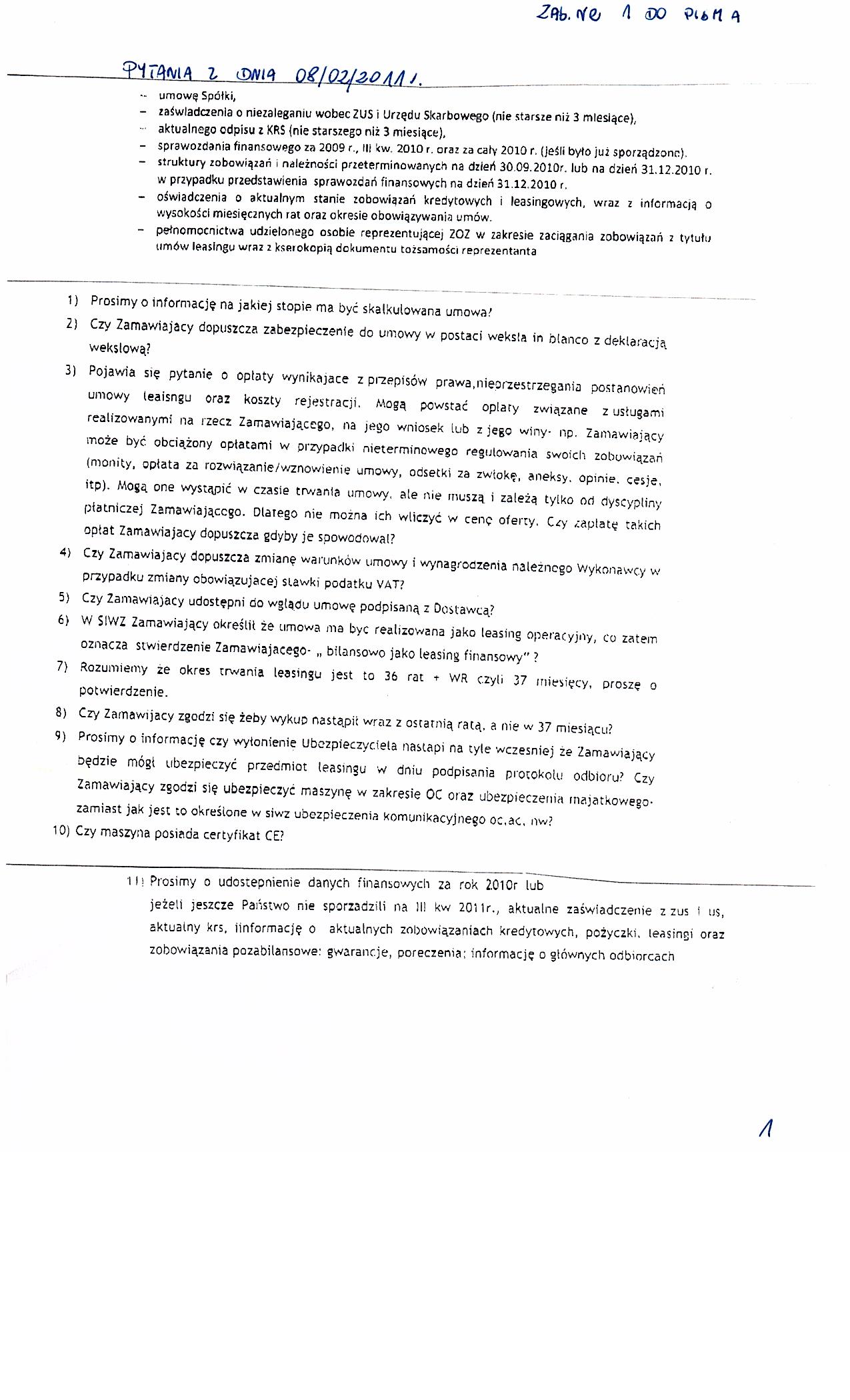 | Typ | Rozmiar | Pobierz | Komentarz | Data dodania | Licznik | ? | 22.4 KB | POBIERZ | Ogłoszenie | 2011-02-04 09:56:55 | 460 | .DOC | 243 KB | POBIERZ | Specyfikacja istotnych warunków zamówienia | 2011-02-04 09:58:03 | 600 | .DOC | 23.5 KB | POBIERZ | Zał. nr 5 do siwz- OT | 2011-02-04 09:58:42 | 583 | graf. | 206.7 KB | POBIERZ | zał. nr 6 do siwz -NIP | 2011-02-04 09:59:02 | 510 | graf. | 271.1 KB | POBIERZ | zał. nr 7 do siwz-Regon | 2011-02-04 09:59:43 | 575 | graf. | 268.6 KB | POBIERZ | Odpowiedzi na zapytania | 2011-02-09 12:28:23 | 490 | graf. | 193.6 KB | POBIERZ | s.2 | 2011-02-09 12:28:35 | 547 | graf. | 302.7 KB | POBIERZ | Treść pytań | 2011-02-09 12:28:53 | 555 | graf. | 236.3 KB | POBIERZ | s.2 | 2011-02-09 12:29:09 | 504 | .PDF | 859.7 KB | POBIERZ | Umowa Spółki | 2011-02-09 12:29:40 | 677 | graf. | 300 KB | POBIERZ | ZUS | 2011-02-09 12:30:14 | 523 | graf. | 310.1 KB | POBIERZ | NUS | 2011-02-09 12:30:27 | 536 | graf. | 262.3 KB | POBIERZ | s.2 | 2011-02-09 12:30:39 | 515 | .ZIP | 3235.9 KB | POBIERZ | KRS | 2011-02-09 12:31:43 | 523 | .PDF | 2478.3 KB | POBIERZ | sprawozdanie 2009 | 2011-02-09 12:32:41 | 567 | .ZIP | 1706.3 KB | POBIERZ | sprawozdanie 2010 | 2011-02-09 12:33:24 | 554 | graf. | 142.8 KB | POBIERZ | zobowiązania | 2011-02-09 12:34:10 | 546 | graf. | 201.4 KB | POBIERZ | s.2 | 2011-02-09 12:34:24 | 556 | graf. | 288.4 KB | POBIERZ | s.3 | 2011-02-09 12:34:38 | 642 | graf. | 255.9 KB | POBIERZ | Odpowiedzi na zapytania- II | 2011-02-10 10:01:06 | 537 | graf. | 80.5 KB | POBIERZ | Treść pytań | 2011-02-10 10:01:18 | 587 | graf. | 233.7 KB | POBIERZ | Odpowiedzi na zapytania-III | 2011-02-11 13:40:19 | 486 | graf. | 204 KB | POBIERZ | Treść pytań | 2011-02-11 13:40:46 | 464 | graf. | 216.6 KB | POBIERZ | Zawiadomienie o unieważnieniu postępowania. | 2011-02-18 11:57:00 | 477 |