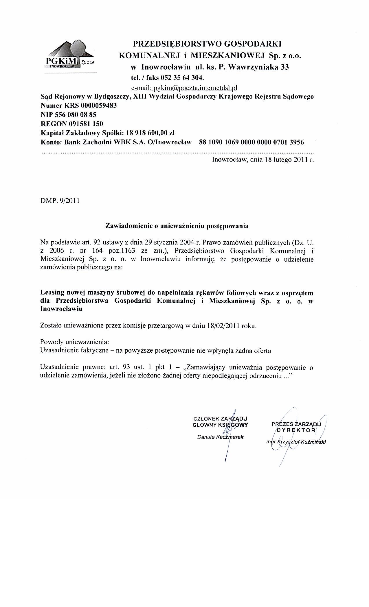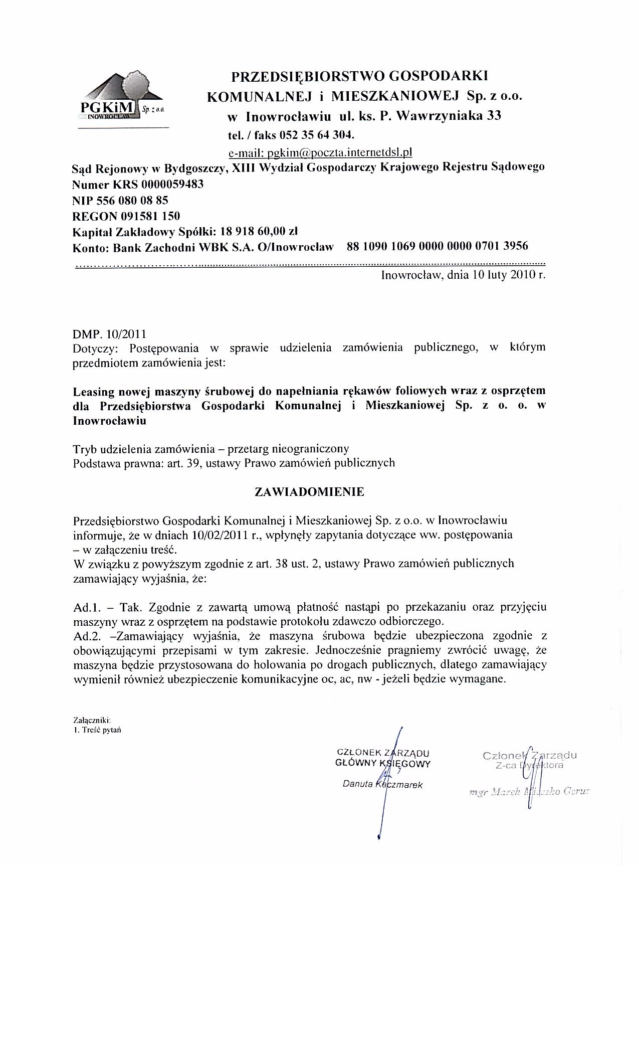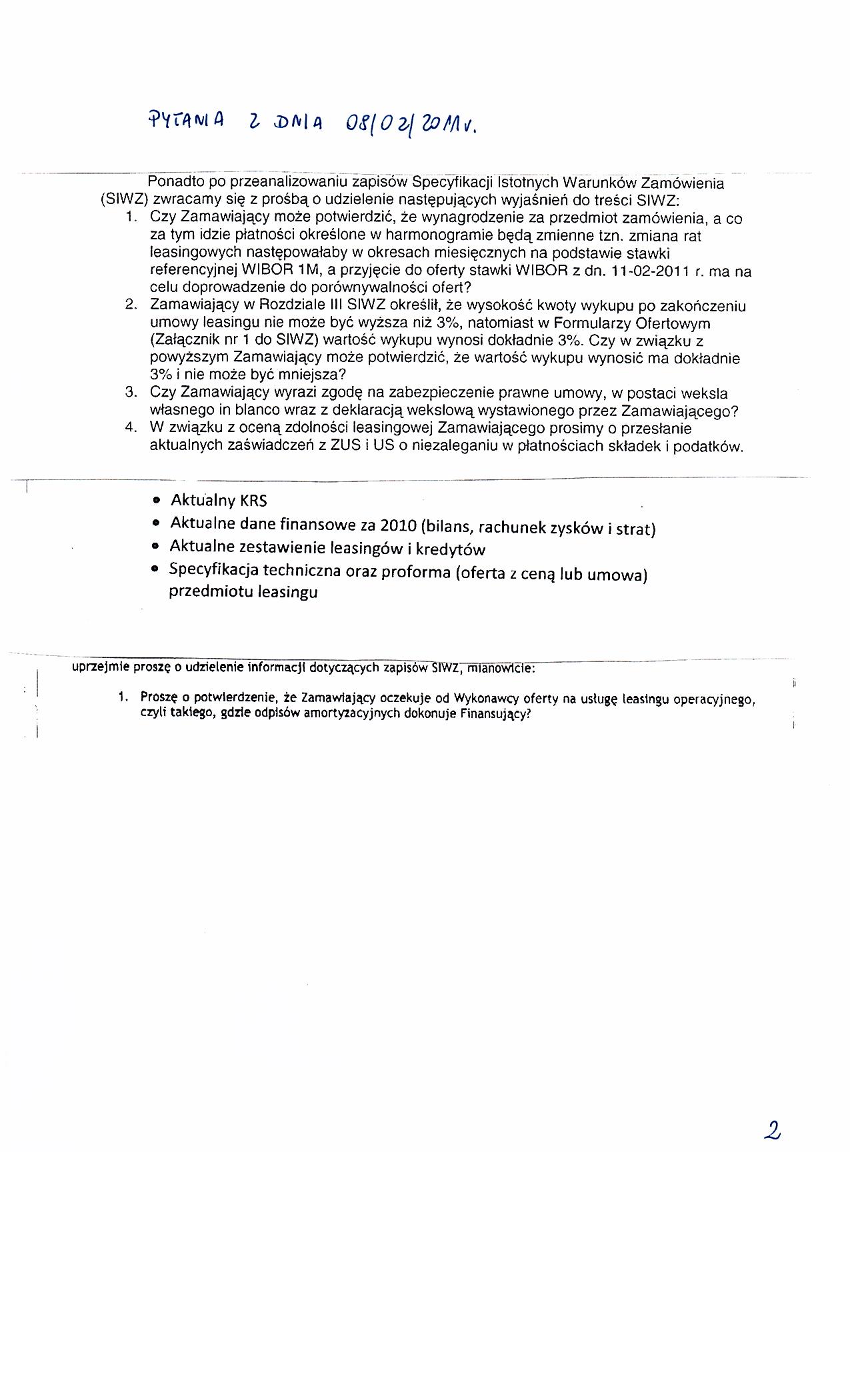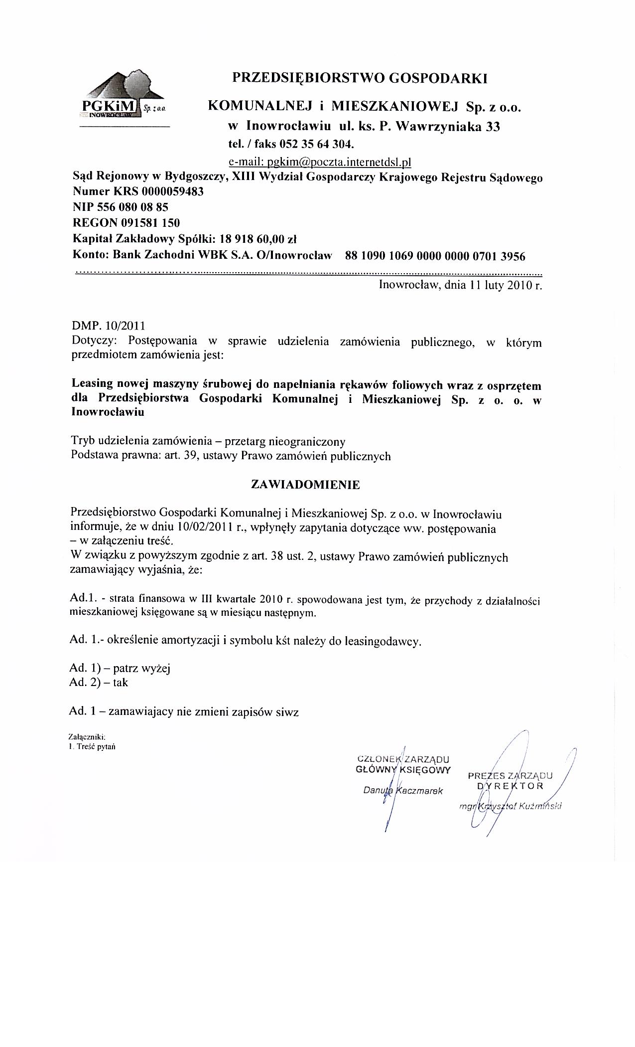 | Typ | Rozmiar | Pobierz | Komentarz | Data dodania | Licznik | ? | 22.4 KB | POBIERZ | Ogłoszenie | 2011-02-04 09:56:55 | 460 | .DOC | 243 KB | POBIERZ | Specyfikacja istotnych warunków zamówienia | 2011-02-04 09:58:03 | 600 | .DOC | 23.5 KB | POBIERZ | Zał. nr 5 do siwz- OT | 2011-02-04 09:58:42 | 583 | graf. | 206.7 KB | POBIERZ | zał. nr 6 do siwz -NIP | 2011-02-04 09:59:02 | 510 | graf. | 271.1 KB | POBIERZ | zał. nr 7 do siwz-Regon | 2011-02-04 09:59:43 | 575 | graf. | 268.6 KB | POBIERZ | Odpowiedzi na zapytania | 2011-02-09 12:28:23 | 490 | graf. | 193.6 KB | POBIERZ | s.2 | 2011-02-09 12:28:35 | 547 | graf. | 302.7 KB | POBIERZ | Treść pytań | 2011-02-09 12:28:53 | 555 | graf. | 236.3 KB | POBIERZ | s.2 | 2011-02-09 12:29:09 | 504 | .PDF | 859.7 KB | POBIERZ | Umowa Spółki | 2011-02-09 12:29:40 | 677 | graf. | 300 KB | POBIERZ | ZUS | 2011-02-09 12:30:14 | 523 | graf. | 310.1 KB | POBIERZ | NUS | 2011-02-09 12:30:27 | 536 | graf. | 262.3 KB | POBIERZ | s.2 | 2011-02-09 12:30:39 | 515 | .ZIP | 3235.9 KB | POBIERZ | KRS | 2011-02-09 12:31:43 | 523 | .PDF | 2478.3 KB | POBIERZ | sprawozdanie 2009 | 2011-02-09 12:32:41 | 567 | .ZIP | 1706.3 KB | POBIERZ | sprawozdanie 2010 | 2011-02-09 12:33:24 | 554 | graf. | 142.8 KB | POBIERZ | zobowiązania | 2011-02-09 12:34:10 | 546 | graf. | 201.4 KB | POBIERZ | s.2 | 2011-02-09 12:34:24 | 556 | graf. | 288.4 KB | POBIERZ | s.3 | 2011-02-09 12:34:38 | 642 | graf. | 255.9 KB | POBIERZ | Odpowiedzi na zapytania- II | 2011-02-10 10:01:06 | 537 | graf. | 80.5 KB | POBIERZ | Treść pytań | 2011-02-10 10:01:18 | 587 | graf. | 233.7 KB | POBIERZ | Odpowiedzi na zapytania-III | 2011-02-11 13:40:19 | 486 | graf. | 204 KB | POBIERZ | Treść pytań | 2011-02-11 13:40:46 | 464 | graf. | 216.6 KB | POBIERZ | Zawiadomienie o unieważnieniu postępowania. | 2011-02-18 11:57:00 | 477 |
