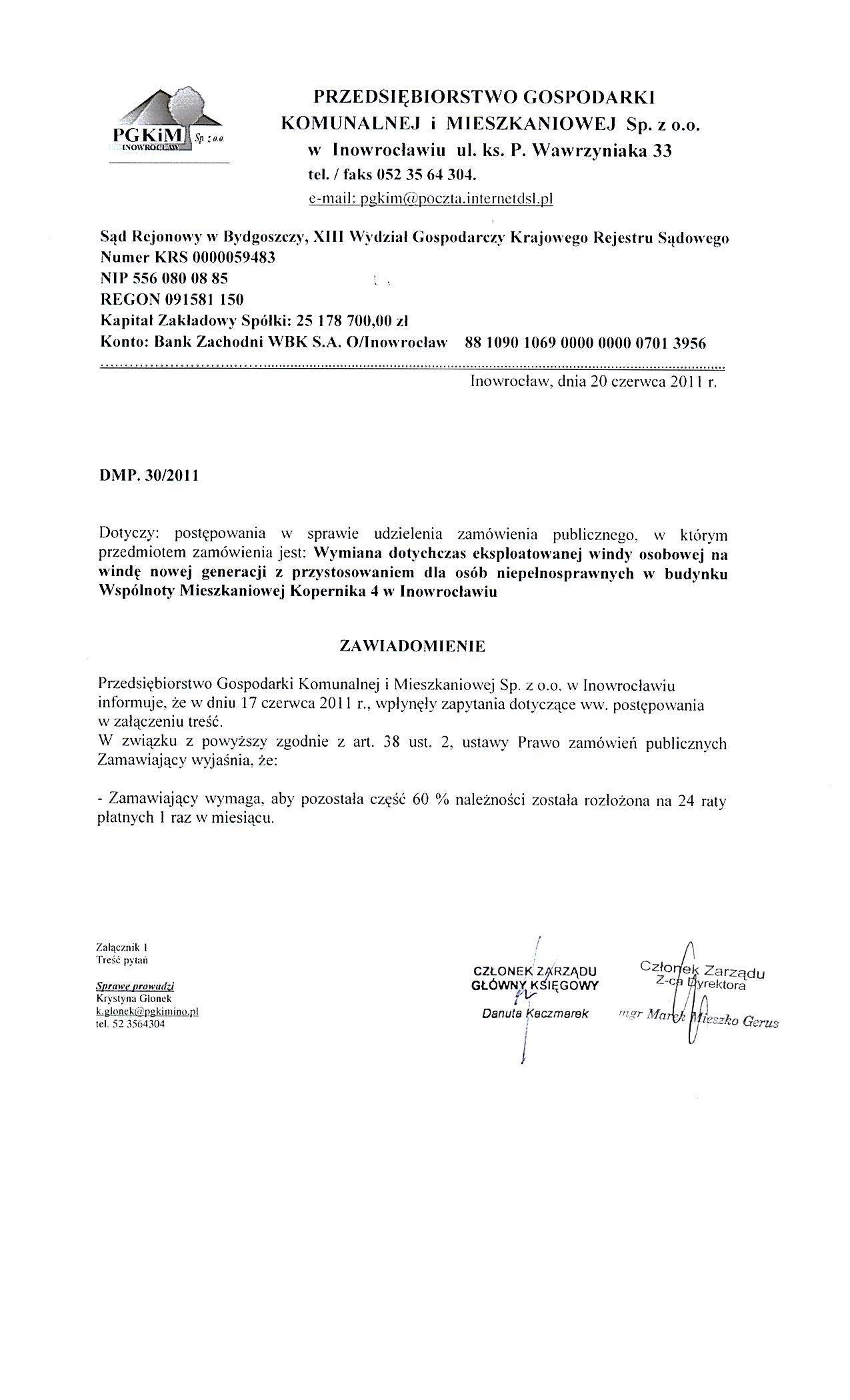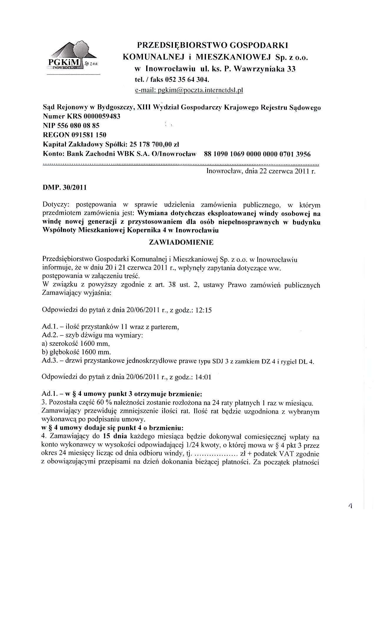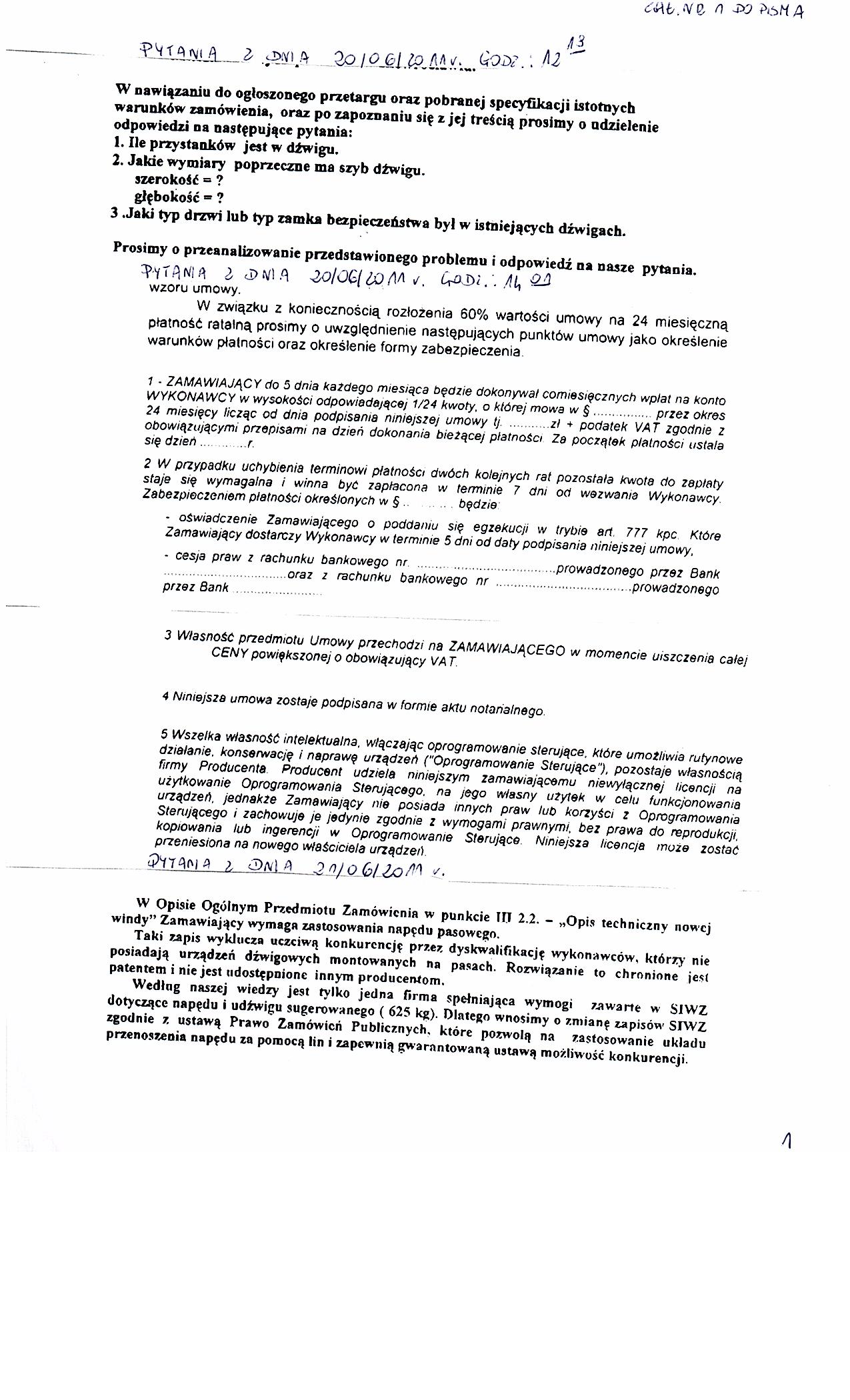 | Typ | Rozmiar | Pobierz | Komentarz | Data dodania | Licznik | .DOC | 280 KB | POBIERZ | Specyfikacja istotnych warunk贸w zam贸wienia | 2011-06-17 11:08:35 | 826 | ? | 25.1 KB | POBIERZ | Og艂oszenie | 2011-06-17 11:09:40 | 442 | graf. | 208.7 KB | POBIERZ | Odpowiedzi na zapytania | 2011-06-20 10:21:14 | 756 | graf. | 96.6 KB | POBIERZ | Tre艣膰 pyta艅 | 2011-06-20 10:21:34 | 760 | ? | 14.9 KB | POBIERZ | Zmiana terminu | 2011-06-22 12:43:59 | 494 | graf. | 283.3 KB | POBIERZ | Odpowiedzi na zapytania II | 2011-06-22 12:44:47 | 697 | graf. | 312.4 KB | POBIERZ | s.2 | 2011-06-22 12:45:02 | 677 | graf. | 366 KB | POBIERZ | Tre艣膰 pyta艅 II | 2011-06-22 12:45:37 | 711 | graf. | 256.5 KB | POBIERZ | Odpowiedzi na zapytania III | 2011-07-04 12:55:42 | 452 | graf. | 110.3 KB | POBIERZ | Tre艣膰 pyta艅 | 2011-07-04 12:56:00 | 447 | graf. | 236.7 KB | POBIERZ | Wyja艣nienia do siwz - IV | 2011-07-05 12:22:18 | 437 | graf. | 256.4 KB | POBIERZ | Wyb贸r oferty | 2011-07-25 15:06:03 | 488 | ? | 18.6 KB | POBIERZ | Og艂oszenie o udzieleniu zam贸wienia BZP nr 284617-2011 | 2011-10-31 08:07:51 | 417 |