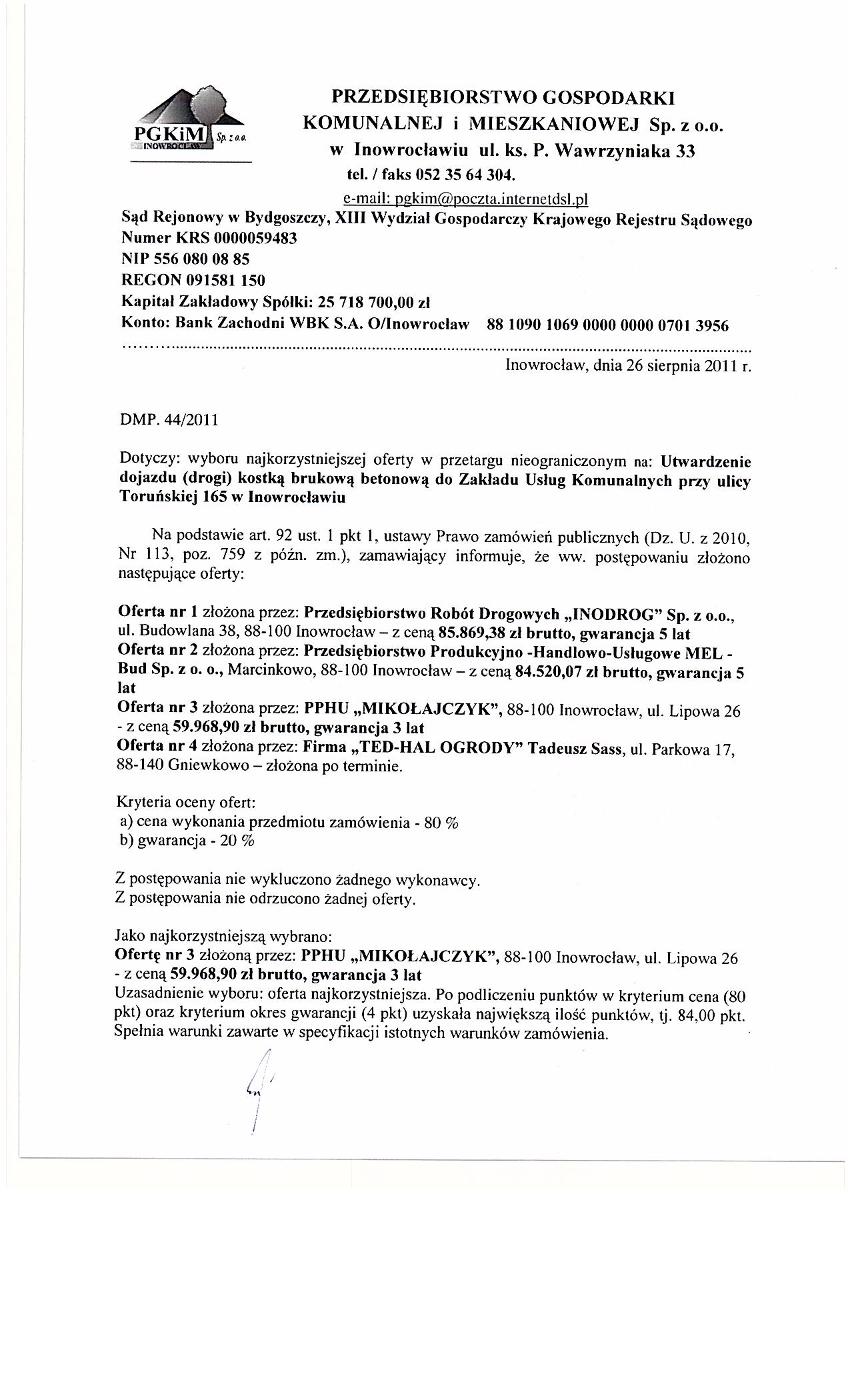 ? | 17.1 KB | POBIERZ | Ogłoszenie o udzieleniu zamówienia BZP nr 235143-2011 | 2011-09-02 10:51:33 | 438 |
