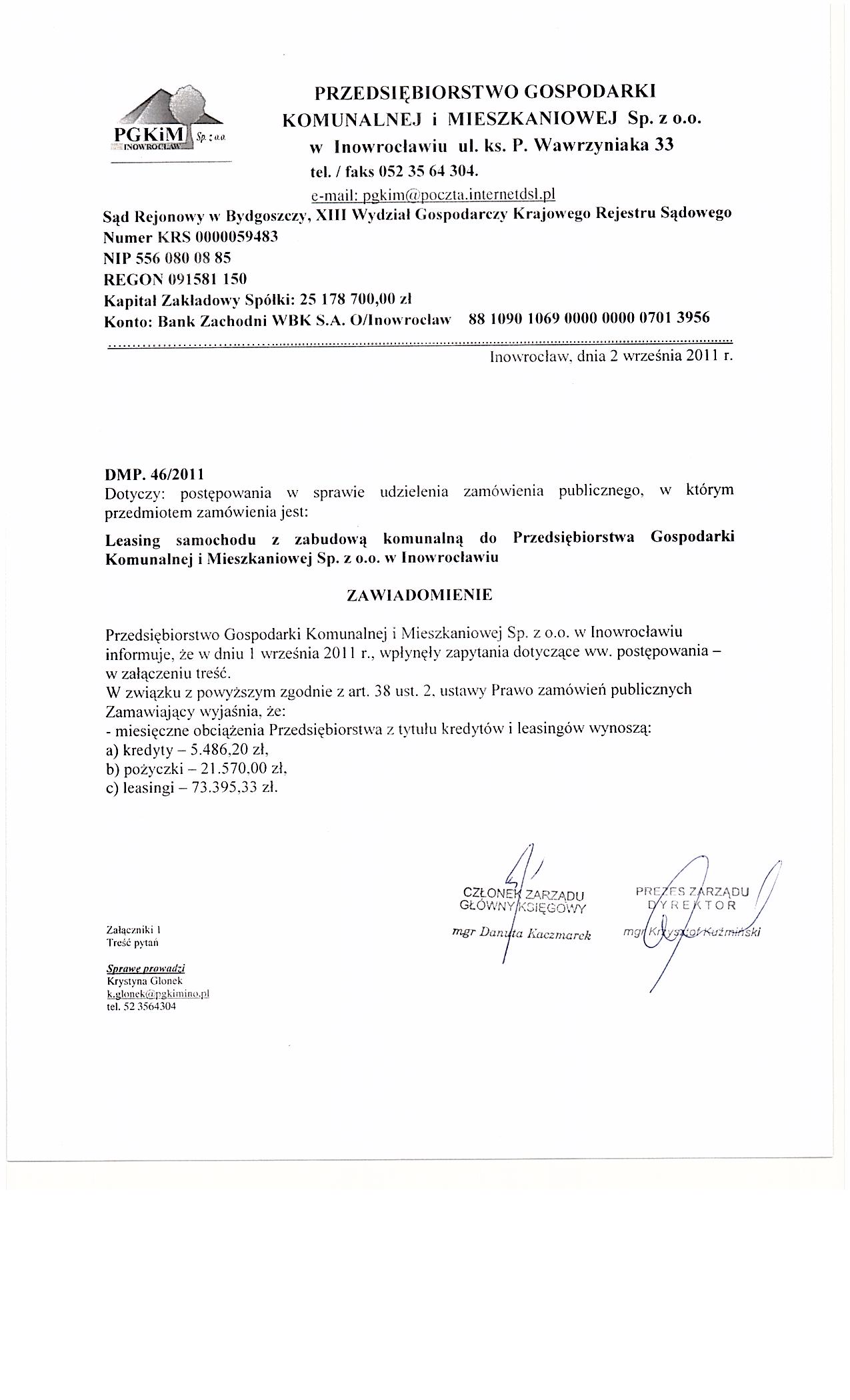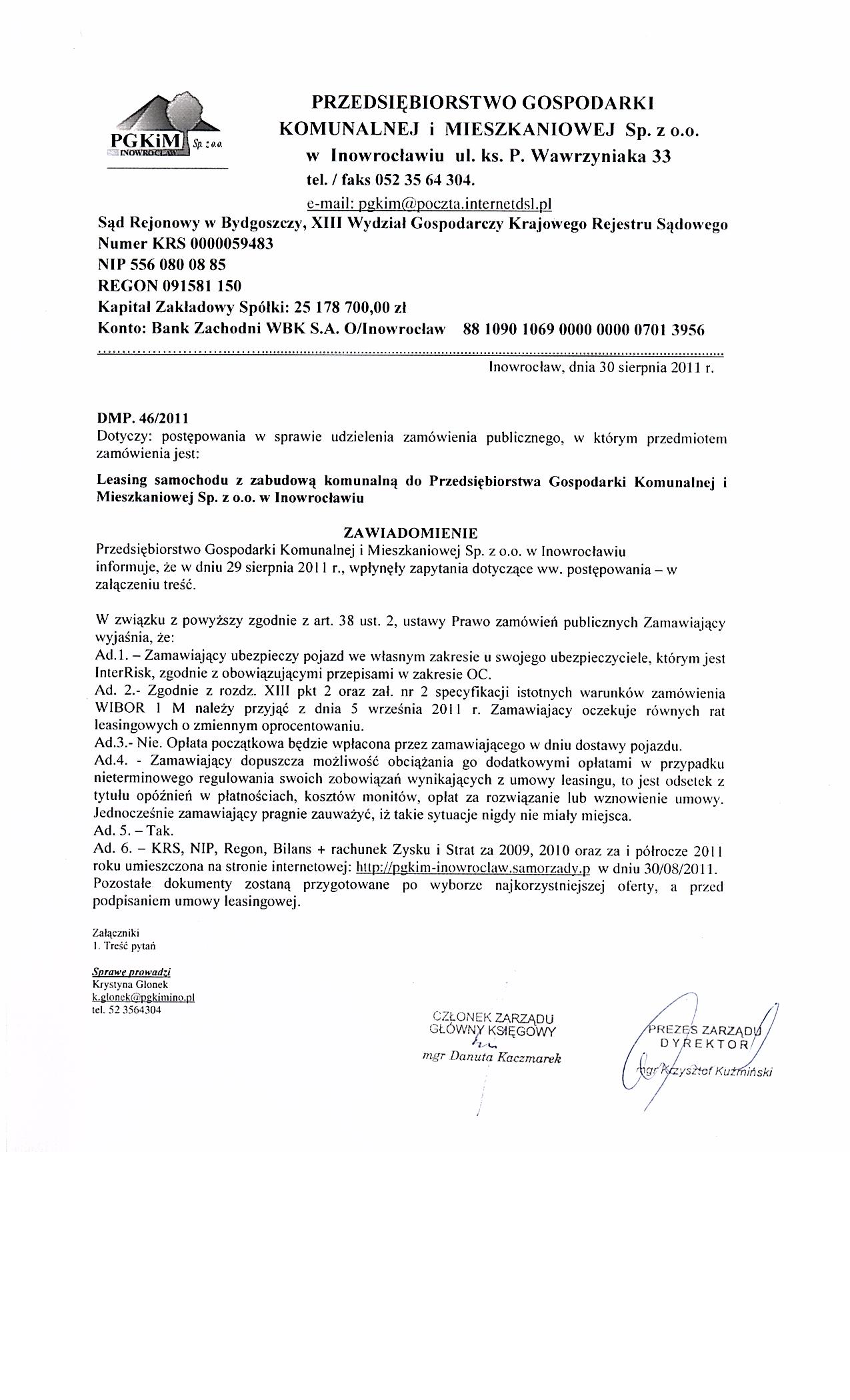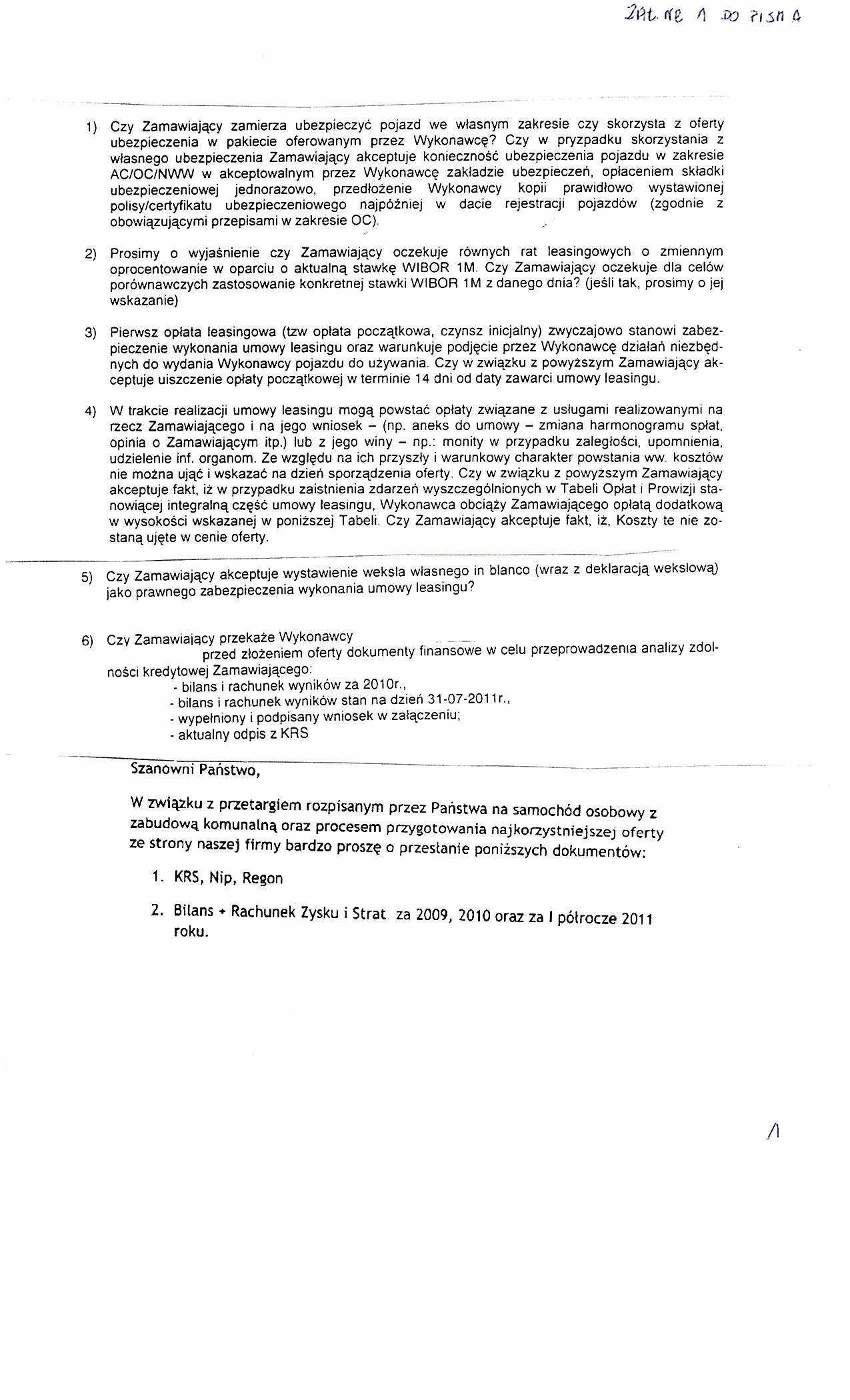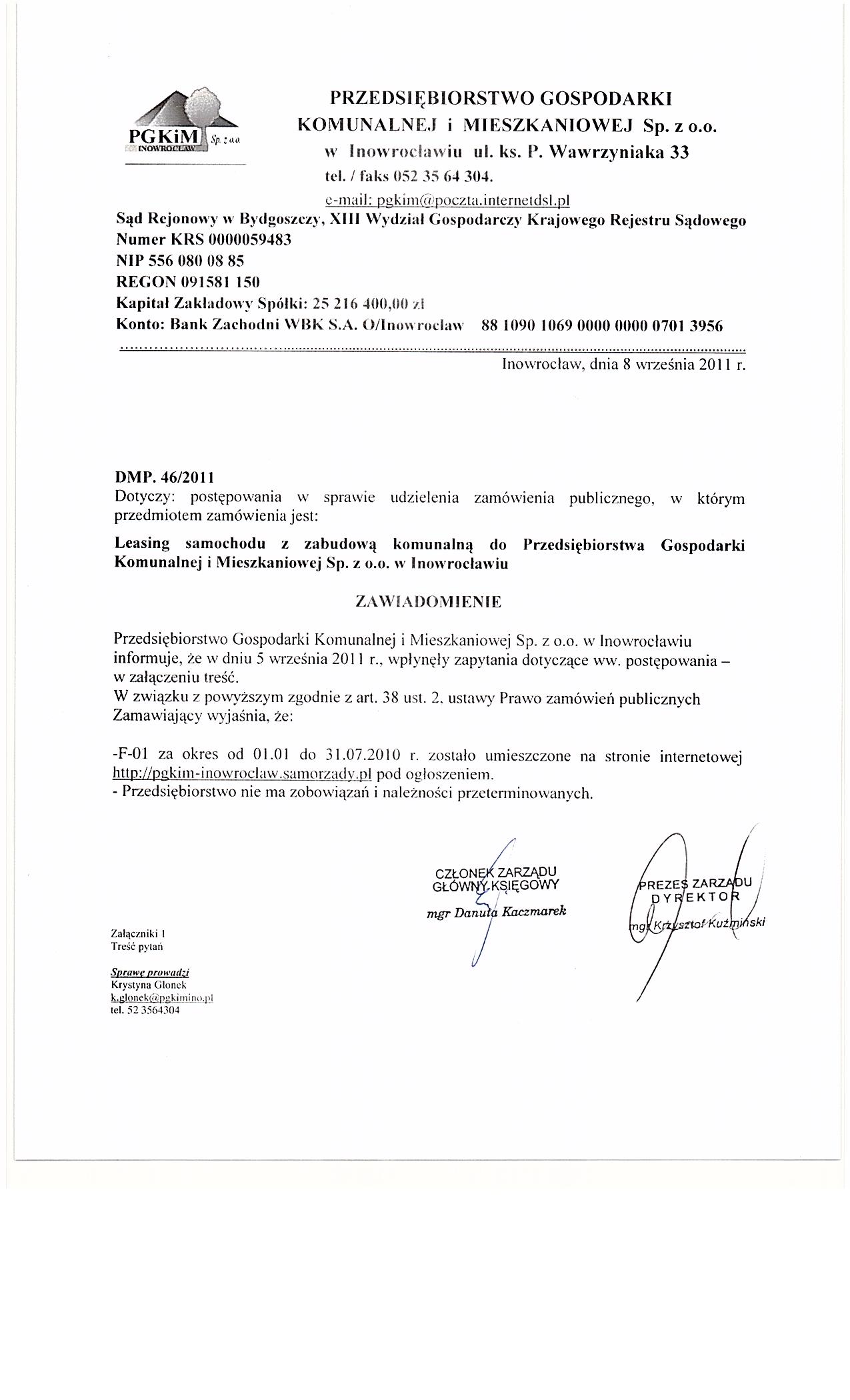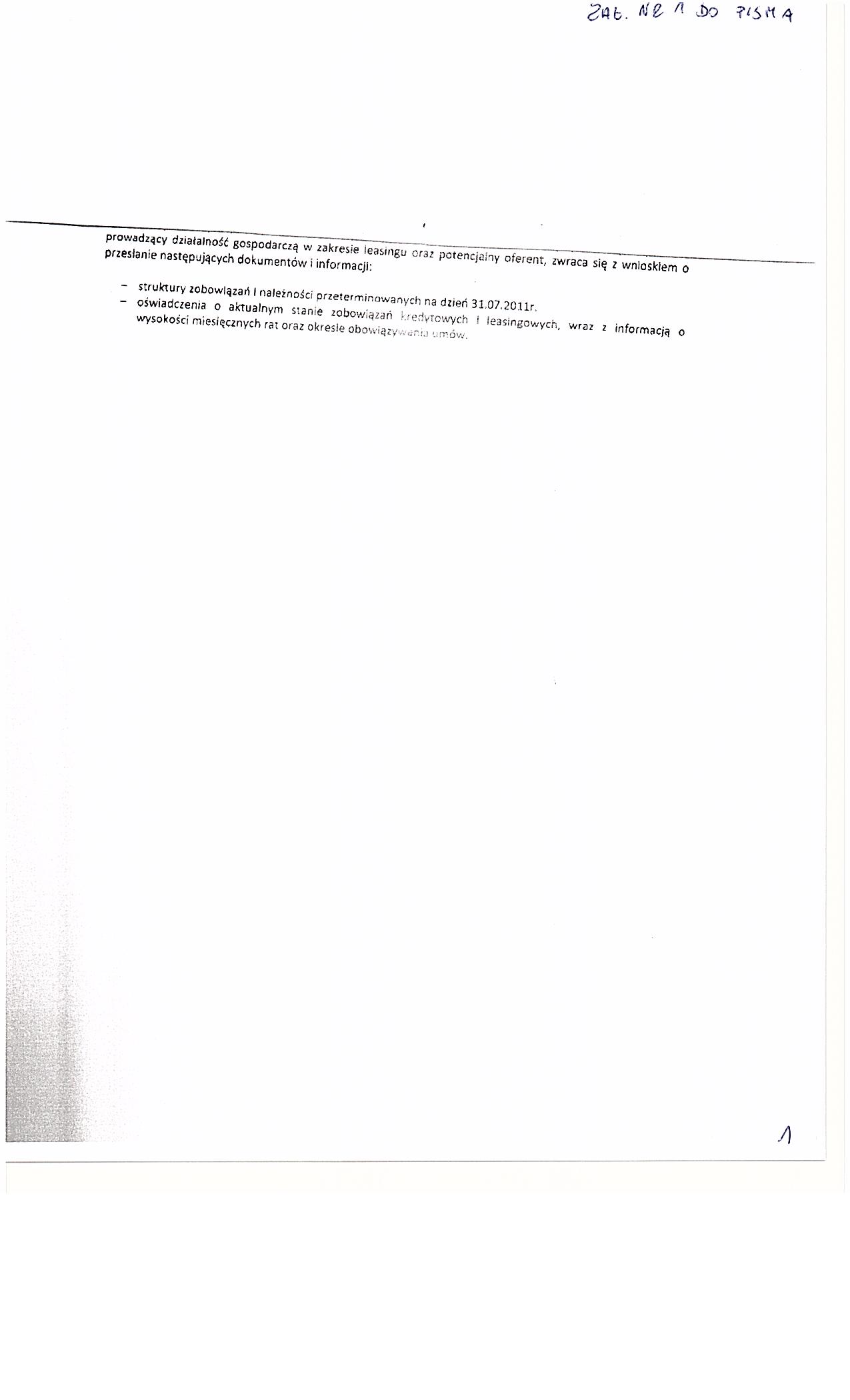 | Typ | Rozmiar | Pobierz | Komentarz | Data dodania | Licznik | ? | 22.4 KB | POBIERZ | Ogłoszenie | 2011-08-25 11:39:31 | 463 | .DOC | 244.5 KB | POBIERZ | Specyfikacja istotnych warunków zamówienia | 2011-08-25 11:40:05 | 600 | .DOC | 27 KB | POBIERZ | Zał. nr 5 do siwz | 2011-08-25 11:40:20 | 581 | graf. | 502.2 KB | POBIERZ | Zał. nr 6 do siwz | 2011-08-25 11:40:50 | 558 | graf. | 689.4 KB | POBIERZ | zał. nr 7 do siwz | 2011-08-25 11:41:16 | 563 | graf. | 294 KB | POBIERZ | Odpowiedzi na zapytania | 2011-08-30 11:13:26 | 549 | graf. | 320.3 KB | POBIERZ | Treść pytań | 2011-08-30 11:13:46 | 561 | .ZIP | 1739.7 KB | POBIERZ | KRS | 2011-08-30 11:16:09 | 518 | .ZIP | 1195.2 KB | POBIERZ | Bilans 2009 | 2011-08-30 11:16:48 | 520 | .ZIP | 1047.3 KB | POBIERZ | Bilans 2010 | 2011-08-30 11:17:15 | 549 | .ZIP | 2157.9 KB | POBIERZ | F-01 | 2011-08-30 11:18:03 | 525 | graf. | 208 KB | POBIERZ | Odpowiedzi na zapytania II | 2011-09-02 10:58:25 | 558 | graf. | 93.1 KB | POBIERZ | Treść pytań II | 2011-09-02 10:59:05 | 462 | graf. | 214.8 KB | POBIERZ | Odpowiedzi na zapytania III | 2011-09-08 08:46:56 | 501 | .ZIP | 1543.2 KB | POBIERZ | F-01, I kw. 2010 | 2011-09-08 08:48:13 | 500 | .ZIP | 2014.7 KB | POBIERZ | F-01, II kw. 2010 | 2011-09-08 08:49:04 | 510 | graf. | 79 KB | POBIERZ | Treść pytań III | 2011-09-08 08:52:07 | 519 | graf. | 281.9 KB | POBIERZ | Wybór oferty | 2011-09-15 14:37:23 | 438 | ? | 17.5 KB | POBIERZ | Ogłoszenie o udzieleniu zamówienia BZP nr 278901-2011 | 2011-10-25 08:08:17 | 447 |