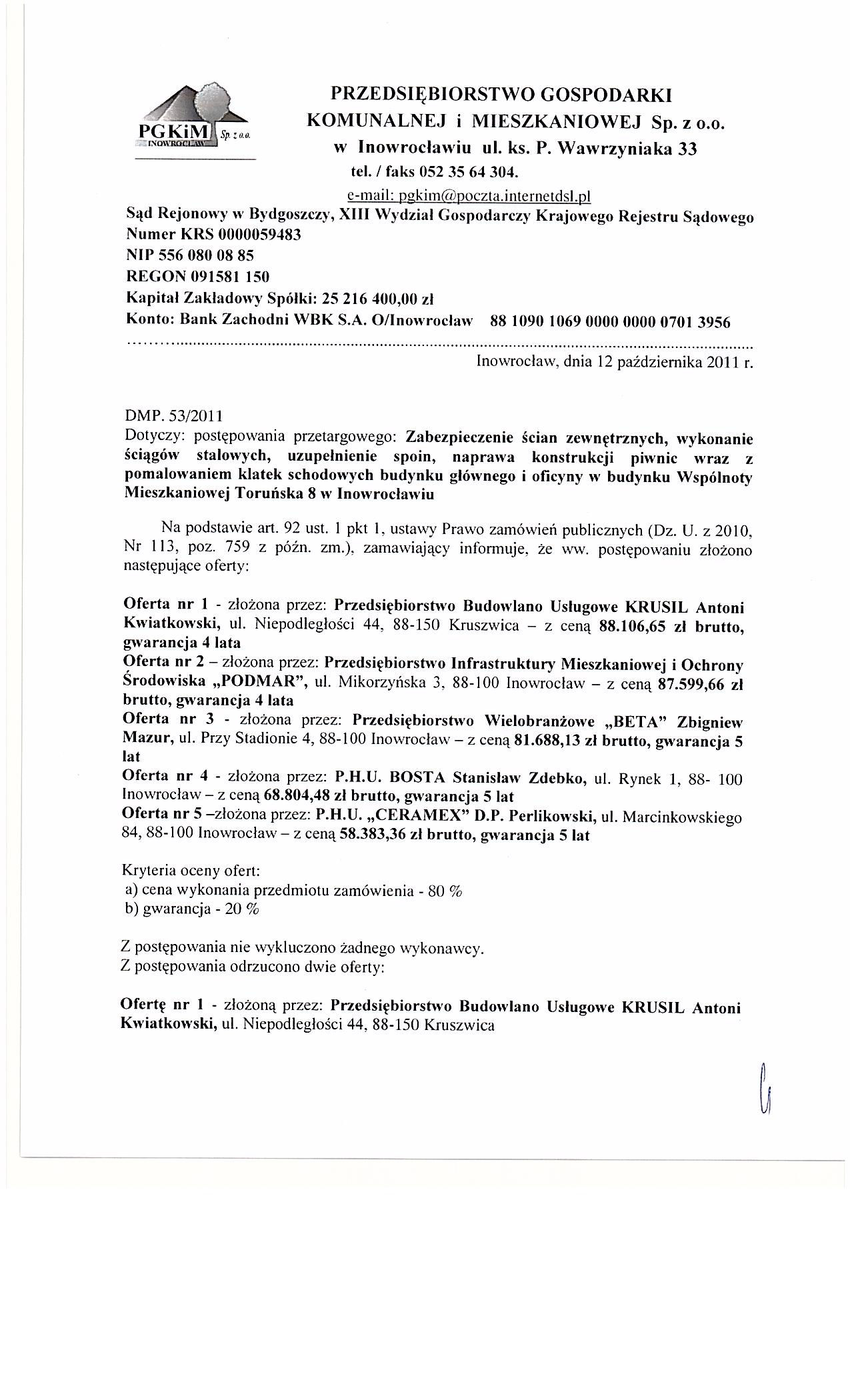 19/09/2011 Og艂oszenie o zam贸wieniu - DMP.53/2011