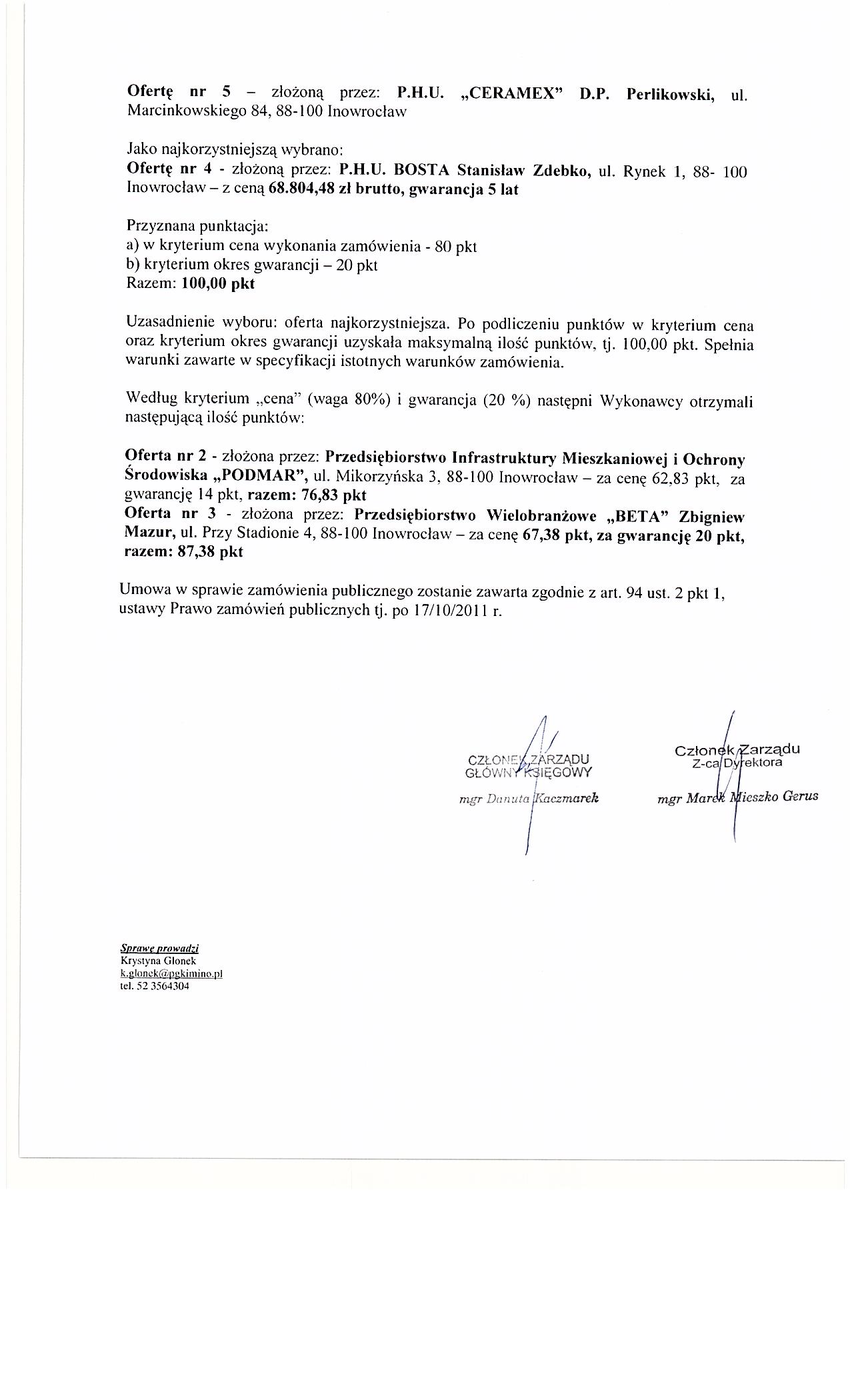 Og艂oszenie o udzieleniu zam贸wienia-BZP nr 276421-2011