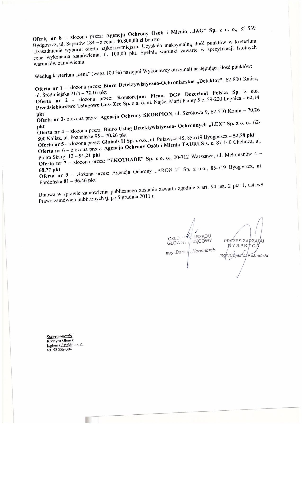 Ochrona obiekt贸w, os贸b oraz mienia Przedsi臋biorstwa Gospodarki Komunalnej i Mieszkaniowej Sp. z o. o. w Inowroc艂awiu