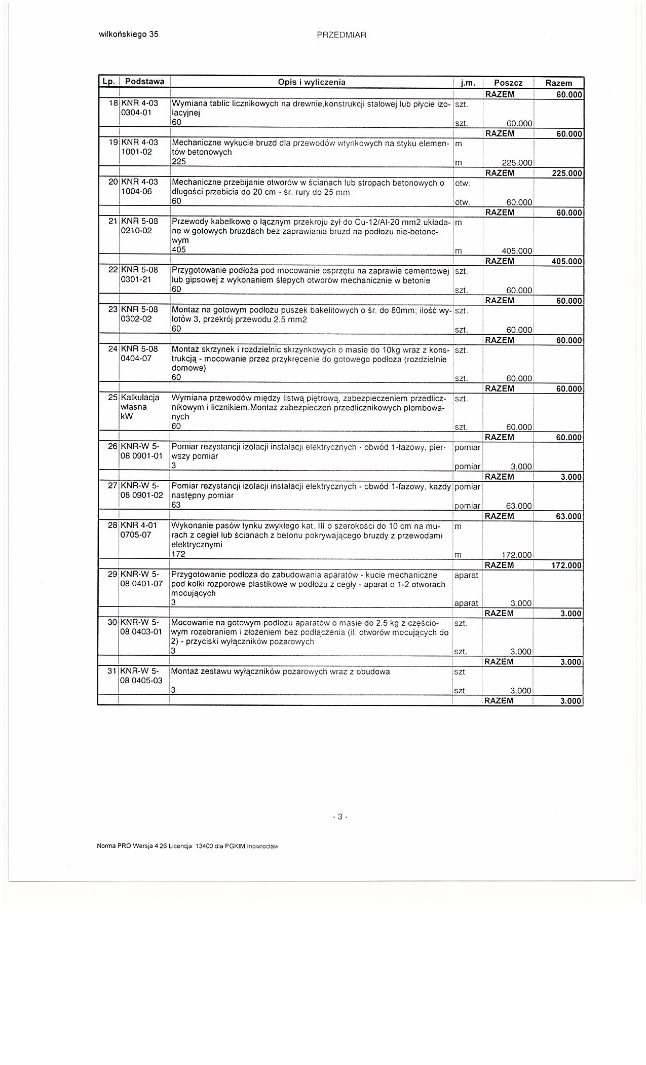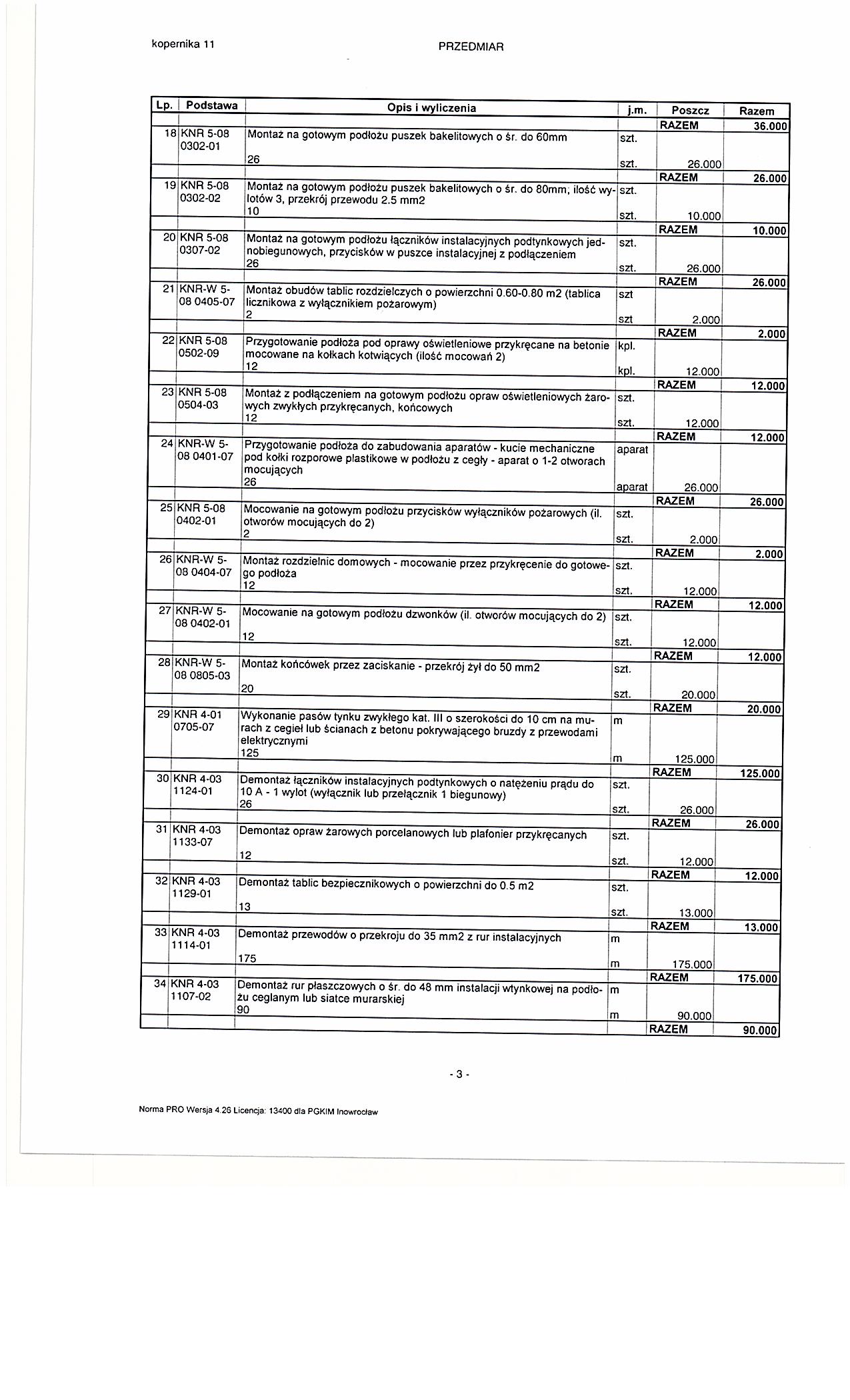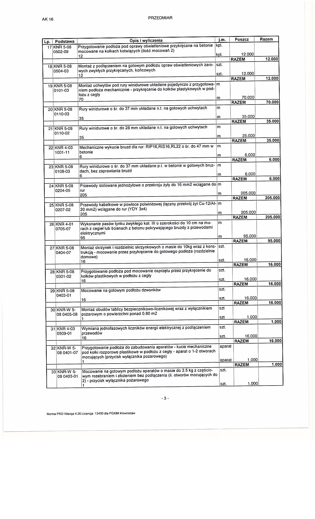 Remont i wymiana instalacji elektrycznej w klatchach schodowych budynków Współnot Mieszkaniowych przy ulicy Wilkońskiego nr 35 (I,II i III kl.), Kopernika nr 11 (I i II kl. z wymianą instalacji domofonowej) oraz Armii Krajowej nr 16 (tylko IV kl.) w Inowrocławiu.