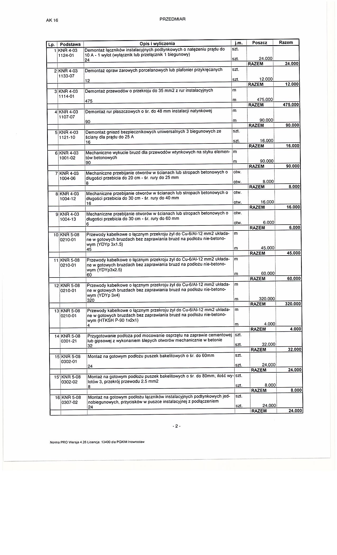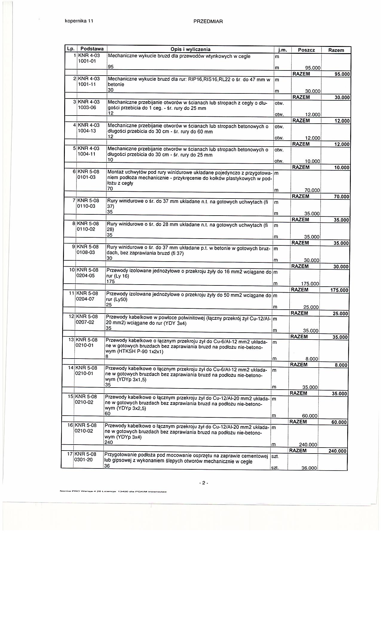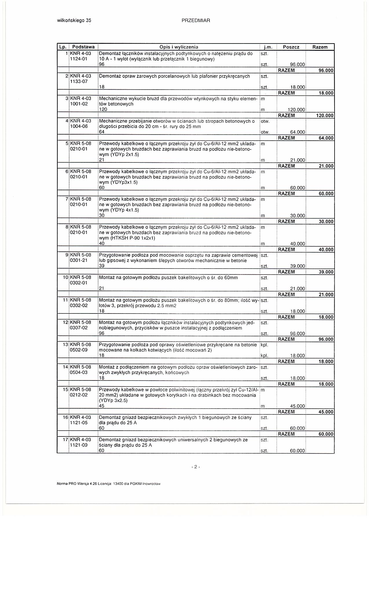 Remont i wymiana instalacji elektrycznej w klatchach schodowych budynków Współnot Mieszkaniowych przy ulicy Wilkońskiego nr 35 (I,II i III kl.), Kopernika nr 11 (I i II kl. z wymianą instalacji domofonowej) oraz Armii Krajowej nr 16 (tylko IV kl.) w Inowrocławiu.