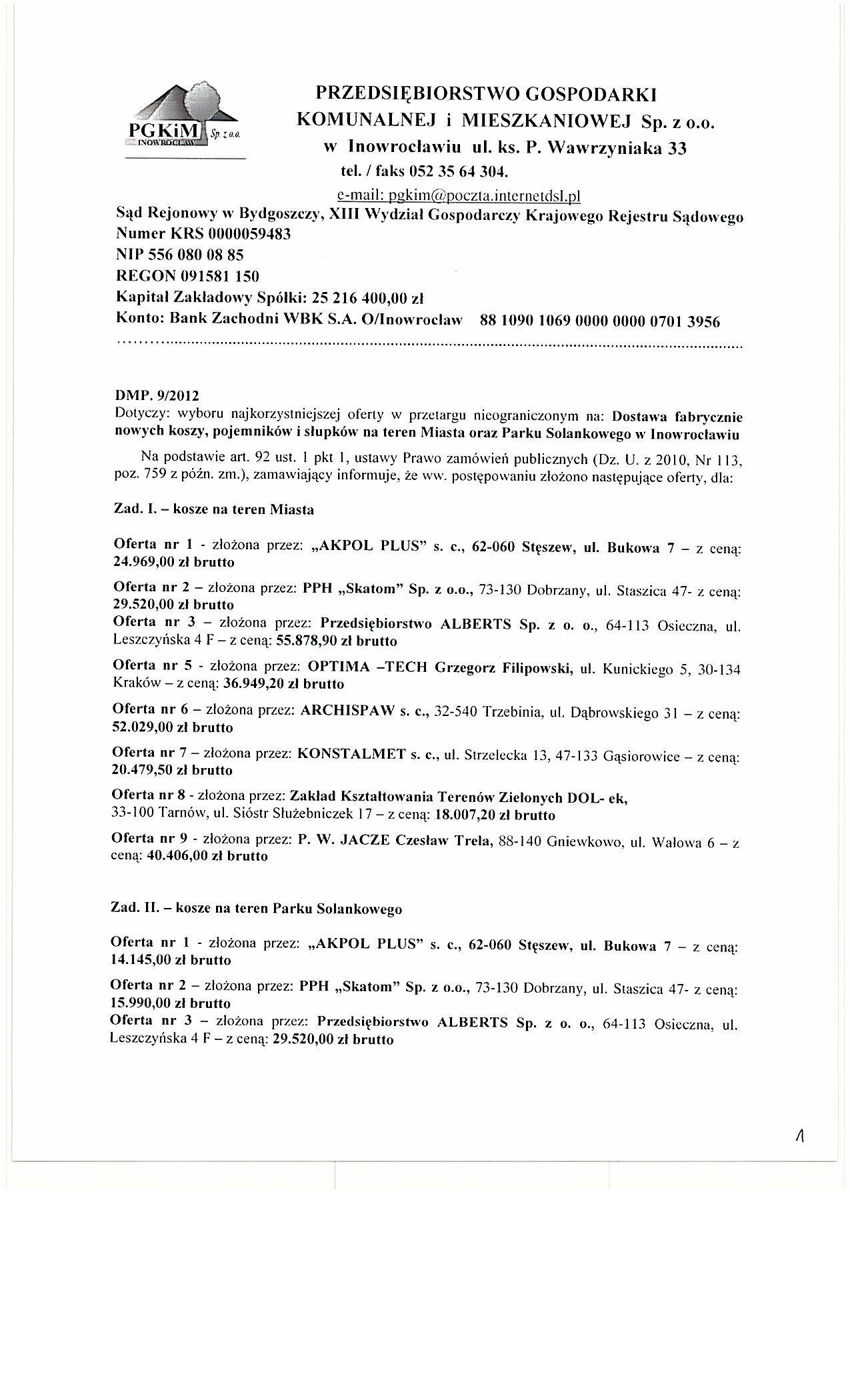 Dostawa fabrycznie nowych koszy, pojemnik贸w i s艂upk贸w na teren Miasta oraz Parku Solankowego w Inowroc艂awiu