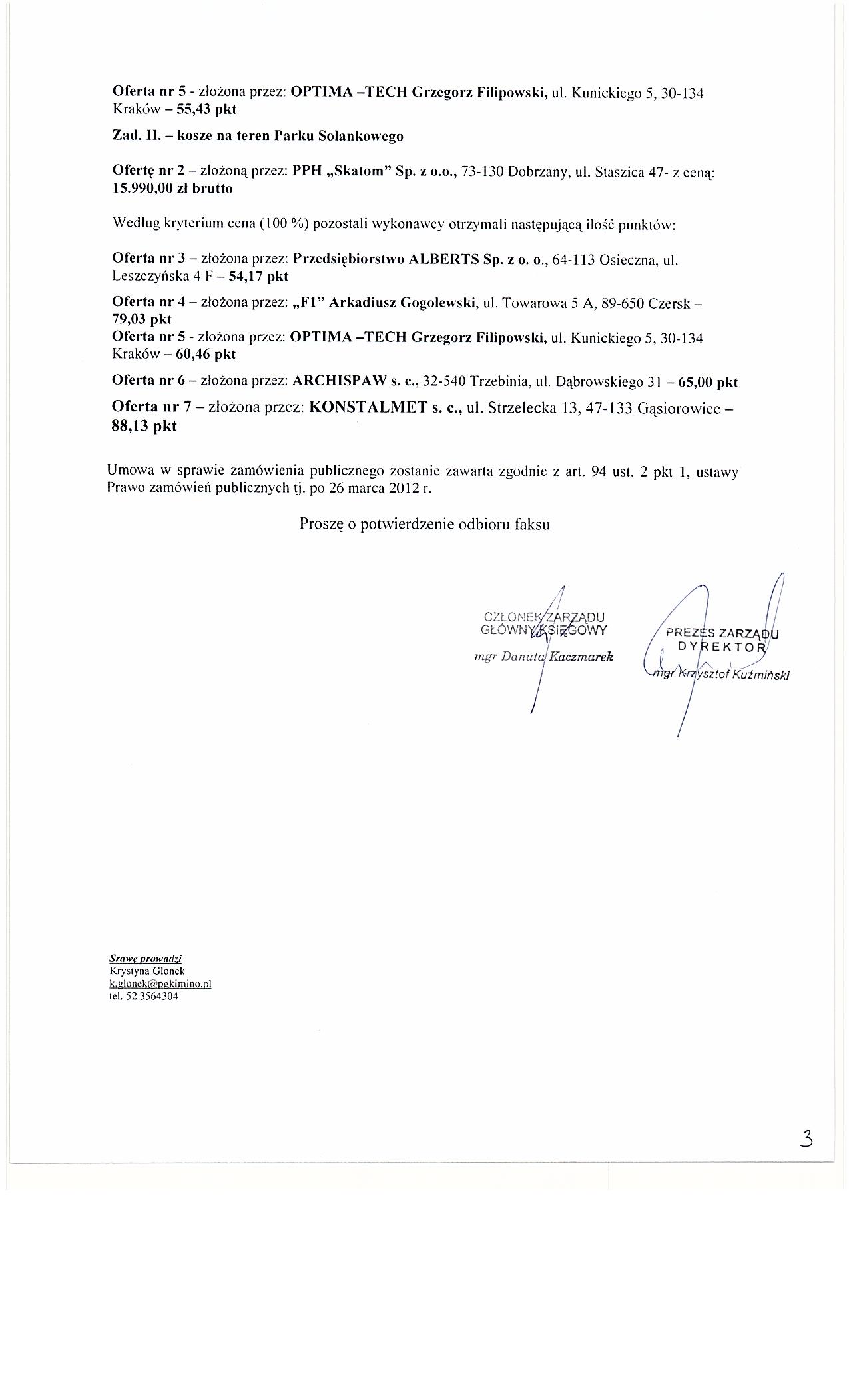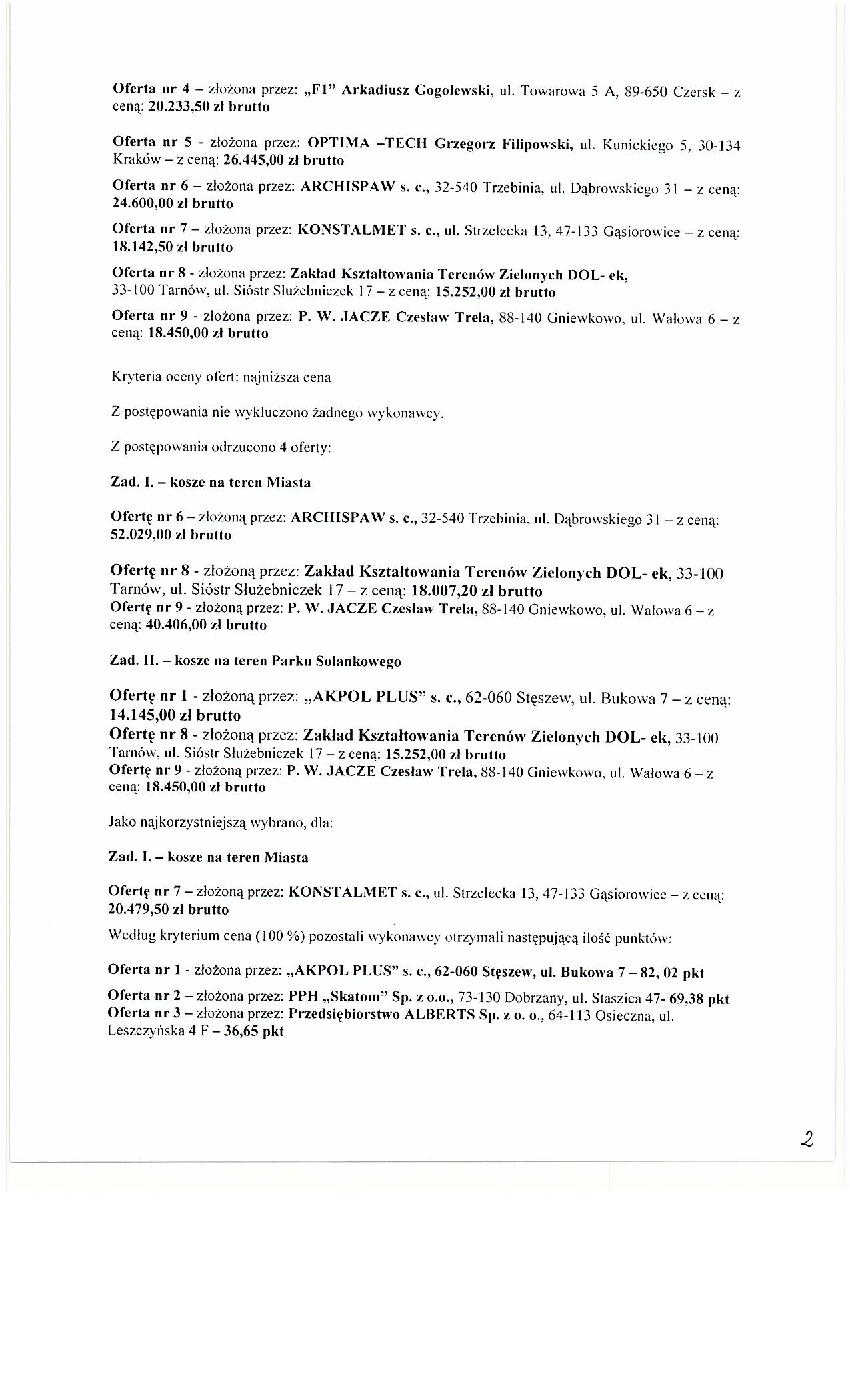 | Typ | Rozmiar | Pobierz | Komentarz | Data dodania | Licznik | ? | 25.2 KB | POBIERZ | Og艂oszenie | 2012-02-27 13:38:03 | 445 | .DOC | 297.5 KB | POBIERZ | Specyfikacja istotnych warunk贸w zam贸wienia | 2012-02-27 13:38:32 | 555 | graf. | 66.2 KB | POBIERZ | Za艂. nr 5 do siwz | 2012-02-27 13:38:56 | 566 | graf. | 286 KB | POBIERZ | Odpowiedzi na zapytania | 2012-03-02 13:27:20 | 483 | graf. | 209 KB | POBIERZ | Tre艣膰 pyta艅 | 2012-03-02 13:27:40 | 479 | graf. | 278.6 KB | POBIERZ | Wyb贸r | 2012-03-21 12:40:13 | 444 | graf. | 259.5 KB | POBIERZ | s.2 | 2012-03-21 12:40:27 | 432 | graf. | 168.5 KB | POBIERZ | s.3 | 2012-03-21 12:40:37 | 438 | ? | 18.9 KB | POBIERZ | Og艂oszenie o udzieleniu zam贸wienia BZP nr 73047-2012 | 2012-03-30 09:46:35 | 421 |