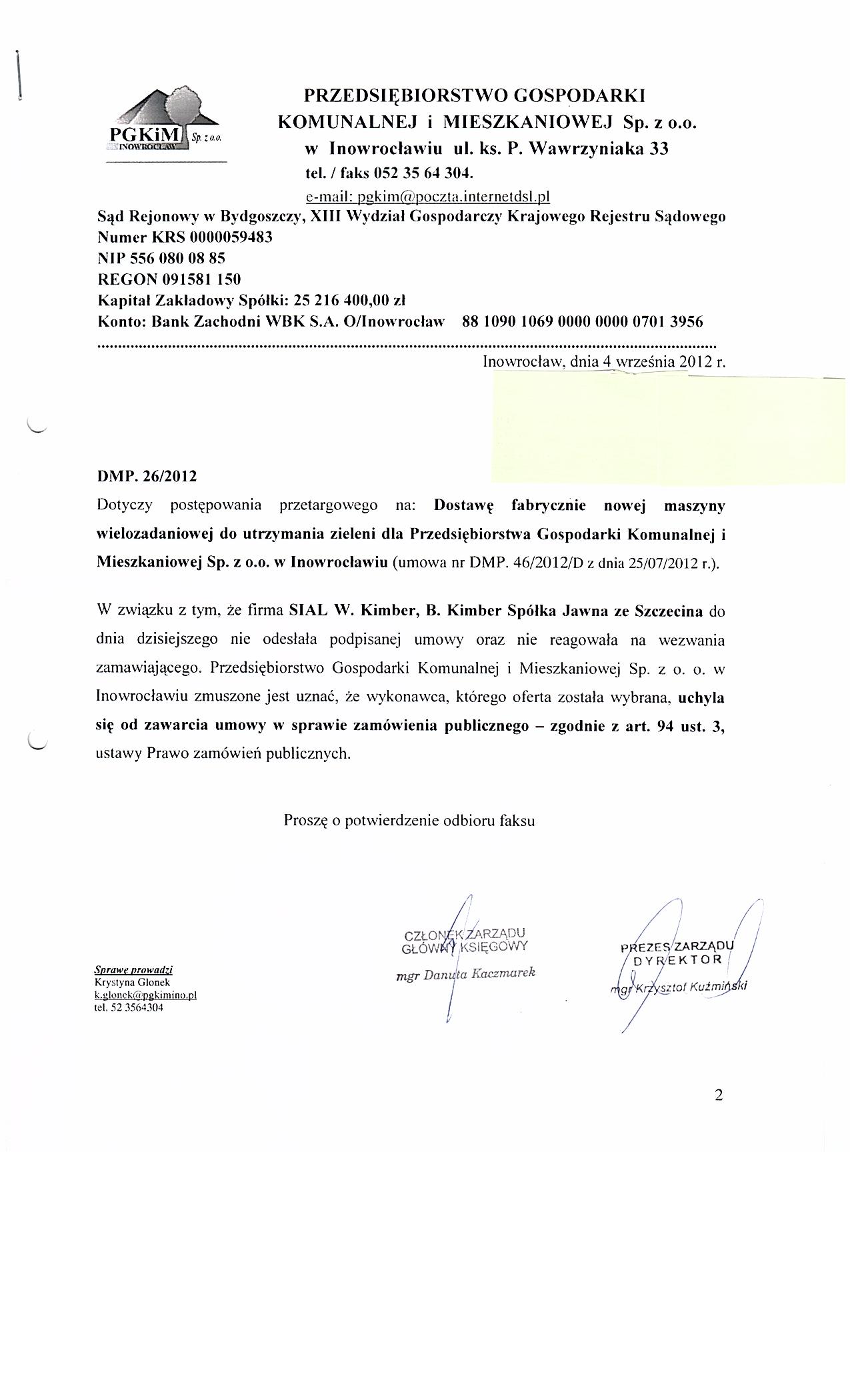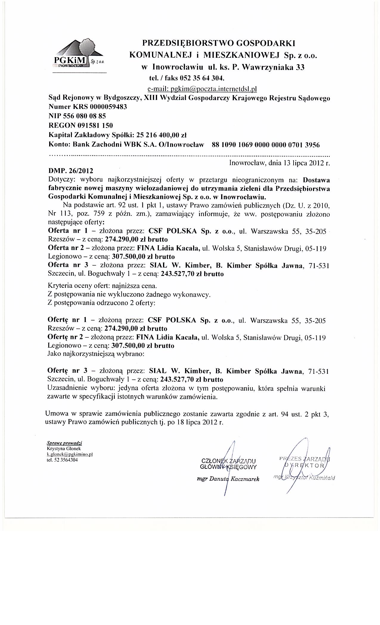 | Typ | Rozmiar | Pobierz | Komentarz | Data dodania | Licznik | ? | 25.4 KB | POBIERZ | Ogłoszenie | 2012-06-26 10:27:52 | 410 | .DOC | 307.5 KB | POBIERZ | Specyfikacja istotnych warunków zamówienia | 2012-06-26 10:28:24 | 511 | graf. | 309.9 KB | POBIERZ | Wybór oferty | 2012-07-13 11:39:37 | 382 | ? | 17.8 KB | POBIERZ | Ogłoszenie o udzieleniu zamówienia BZP nr 161559-2012 | 2012-07-25 08:33:15 | 393 | graf. | 213.5 KB | POBIERZ | Uchylenie się od zawarcia umowy | 2012-09-04 11:10:43 | 369 |