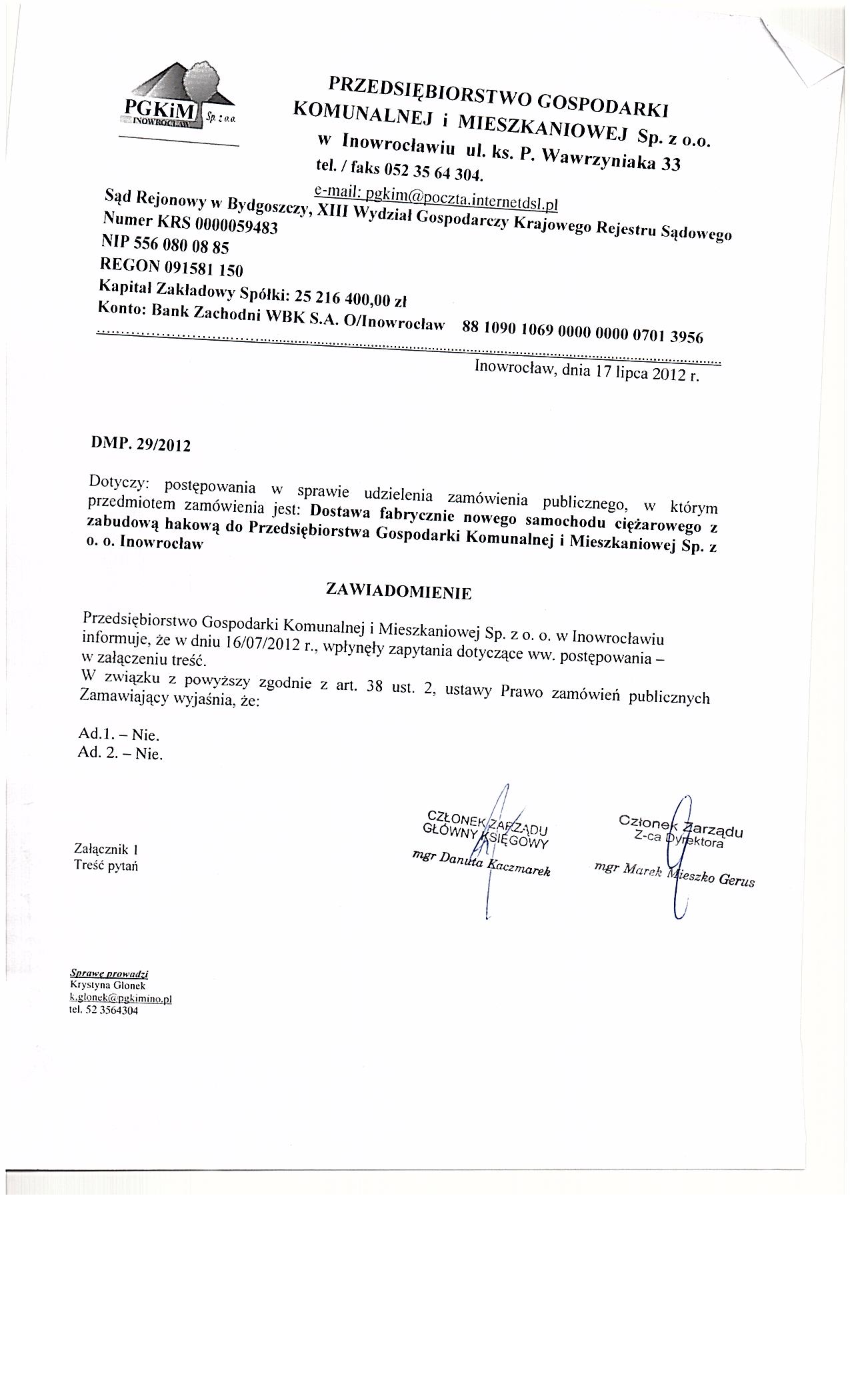| Typ | Rozmiar | Pobierz | Komentarz | Data dodania | Licznik | ? | 25.9 KB | POBIERZ | Ogłoszenie | 2012-07-13 12:12:06 | 452 | .DOC | 327.5 KB | POBIERZ | Specyfikacja istotnych warunków zamówienia | 2012-07-13 12:15:43 | 563 | graf. | 208.8 KB | POBIERZ | Odpowiedzi na zapytania | 2012-07-17 13:51:41 | 461 | graf. | 106.4 KB | POBIERZ | Treść pytań | 2012-07-17 13:51:57 | 524 | graf. | 212.1 KB | POBIERZ | Odpowiedzi na zapytania II | 2012-07-20 14:50:51 | 511 | graf. | 101.4 KB | POBIERZ | Treść pytań II | 2012-07-20 14:51:07 | 458 | graf. | 307.4 KB | POBIERZ | Wybór | 2012-07-31 12:03:54 | 479 | graf. | 158.7 KB | POBIERZ | s.2 | 2012-07-31 12:04:06 | 483 | ? | 18 KB | POBIERZ | Ogłoszenie o udzieleniu zamówienia BZP nr 173035-2012 | 2012-08-10 08:58:18 | 411 |