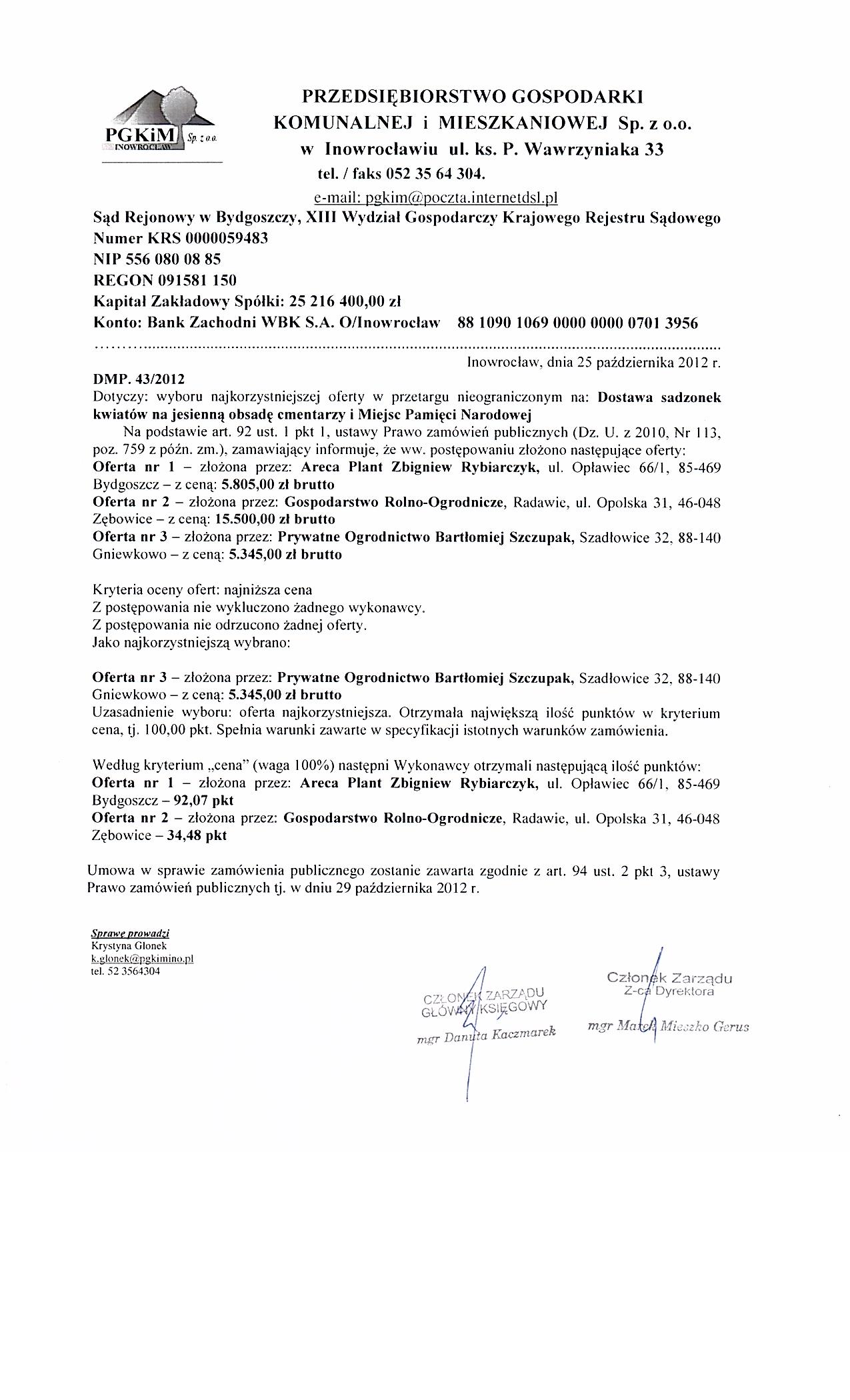 | Typ | Rozmiar | Pobierz | Komentarz | Data dodania | Licznik | ? | 21.6 KB | POBIERZ | Ogłoszenie | 2012-10-12 11:43:46 | 393 | .DOC | 240 KB | POBIERZ | Specyfikacja istotnych warunków zamówienia | 2012-10-12 11:44:30 | 493 | graf. | 282.8 KB | POBIERZ | Wybór | 2012-10-25 12:26:58 | 423 | ? | 16.7 KB | POBIERZ | Ogłoszenie o udzieleniu zamówienia BZP nr 229025-2012 | 2012-10-29 12:15:15 | 371 |