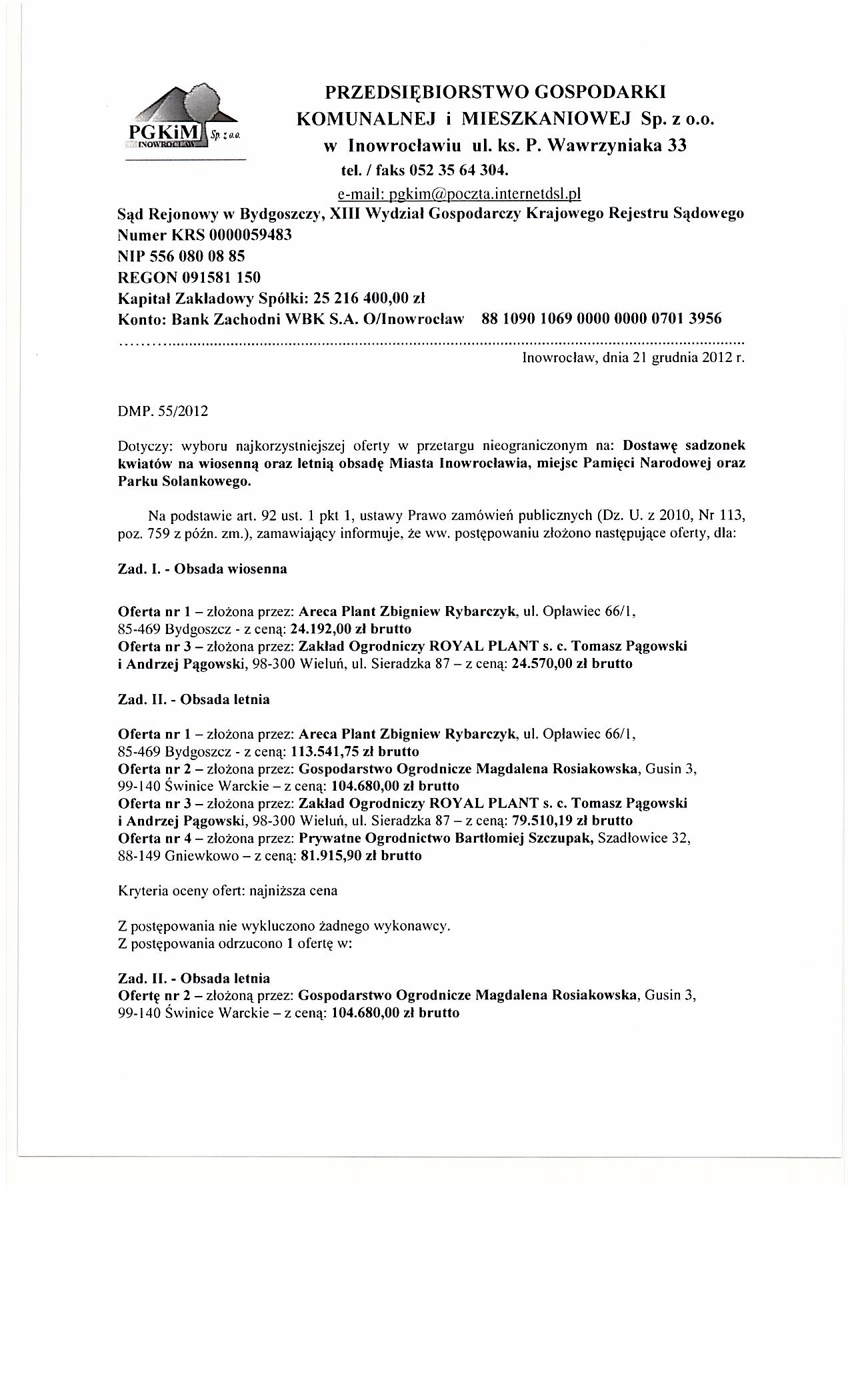 Dostawa sadzonek kwiat贸w na wiosenn膮 oraz letni膮 obsad臋 Miasta Inowroc艂awia, miejsc Pami臋ci Narodowej oraz Parku Solankowego