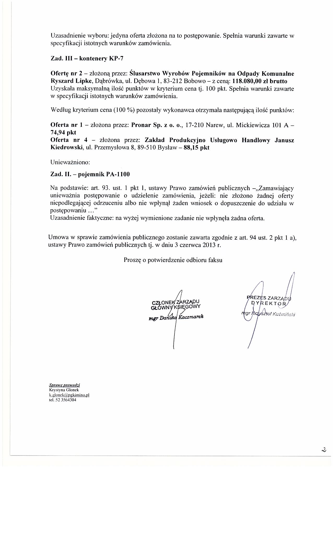 | Typ | Rozmiar | Pobierz | Komentarz | Data dodania | Licznik | ? | 28.4 KB | POBIERZ | Og艂oszenie | 2013-05-17 10:33:34 | 413 | .DOC | 328.5 KB | POBIERZ | Specyfikacja istotnych warunk贸w zam贸wienia | 2013-05-17 10:41:36 | 580 | graf. | 107.9 KB | POBIERZ | Rys. 1 do Zad. III. | 2013-05-17 10:41:54 | 498 | graf. | 114 KB | POBIERZ | Rys. 2 do Zad. III. | 2013-05-17 10:42:08 | 474 | graf. | 271.6 KB | POBIERZ | Wyb贸r | 2013-05-28 13:07:27 | 430 | graf. | 211.2 KB | POBIERZ | s.2 | 2013-05-28 13:07:36 | 413 | ? | 19 KB | POBIERZ | Og艂oszenie o udzieleniu zam贸wienia BZP nr 98439-2013 | 2013-06-04 09:42:16 | 449 |