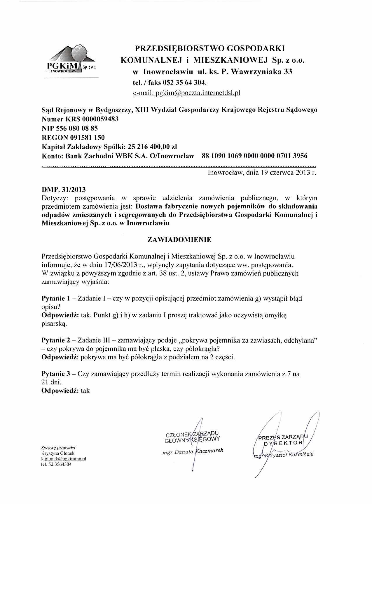 graf. | 244 KB | POBIERZ | Odpowiedzi na zapytania i zmiana terminu dostawy | 2013-06-19 12:45:28 | 483 |