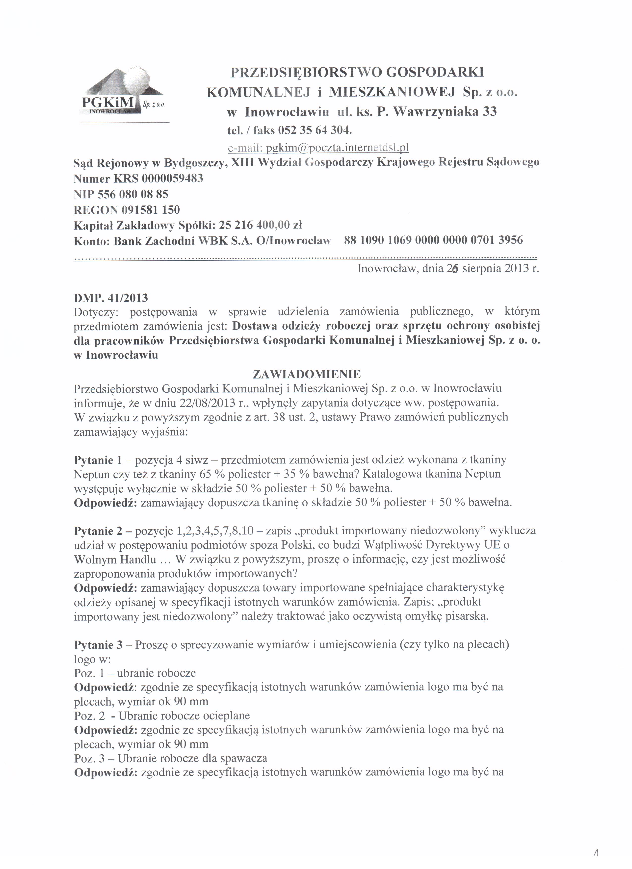 | Typ | Rozmiar | Pobierz | Komentarz | Data dodania | Licznik | ? | 21.3 KB | POBIERZ | Ogłoszenie | 2013-08-20 09:40:35 | 514 | .DOC | 312.5 KB | POBIERZ | Specyfikacja istotnych warunków zamówienia | 2013-08-20 09:41:01 | 464 | .XLS | 53 KB | POBIERZ | Zał. nr 7 do siwz - OPZ | 2013-08-20 09:41:24 | 494 | graf. | 693.8 KB | POBIERZ | Odpowiedzi na zapytania | 2013-08-26 12:05:43 | 419 | graf. | 540.1 KB | POBIERZ | s.2 | 2013-08-26 12:06:34 | 401 | graf. | 629.5 KB | POBIERZ | Wybór | 2013-08-29 13:01:34 | 388 | graf. | 400.7 KB | POBIERZ | s.2 | 2013-08-29 13:01:43 | 389 | ? | 17.6 KB | POBIERZ | Ogłoszenie o udzieleniu zamówienia BZP nr 368794-2013 | 2013-09-11 13:21:56 | 390 |