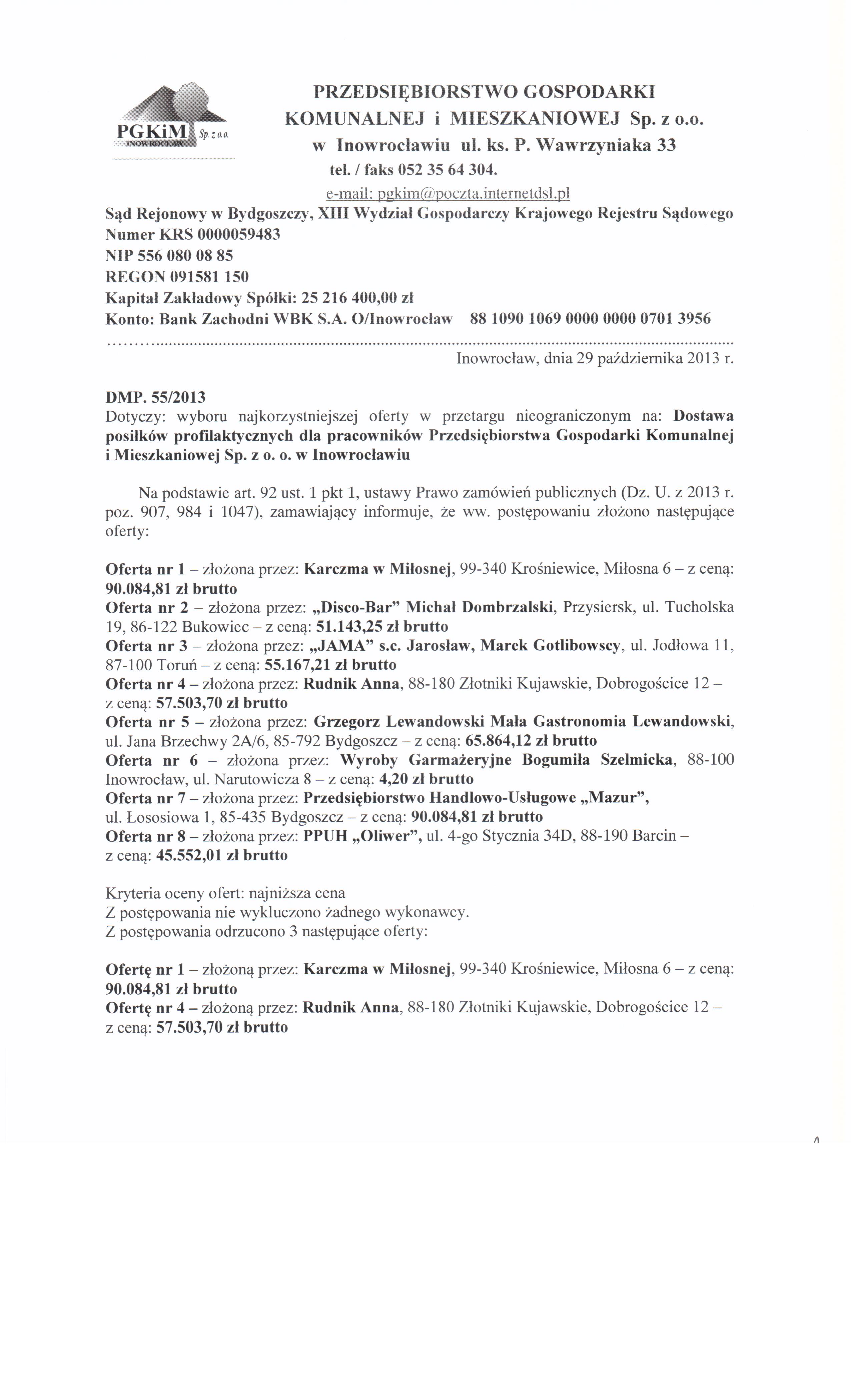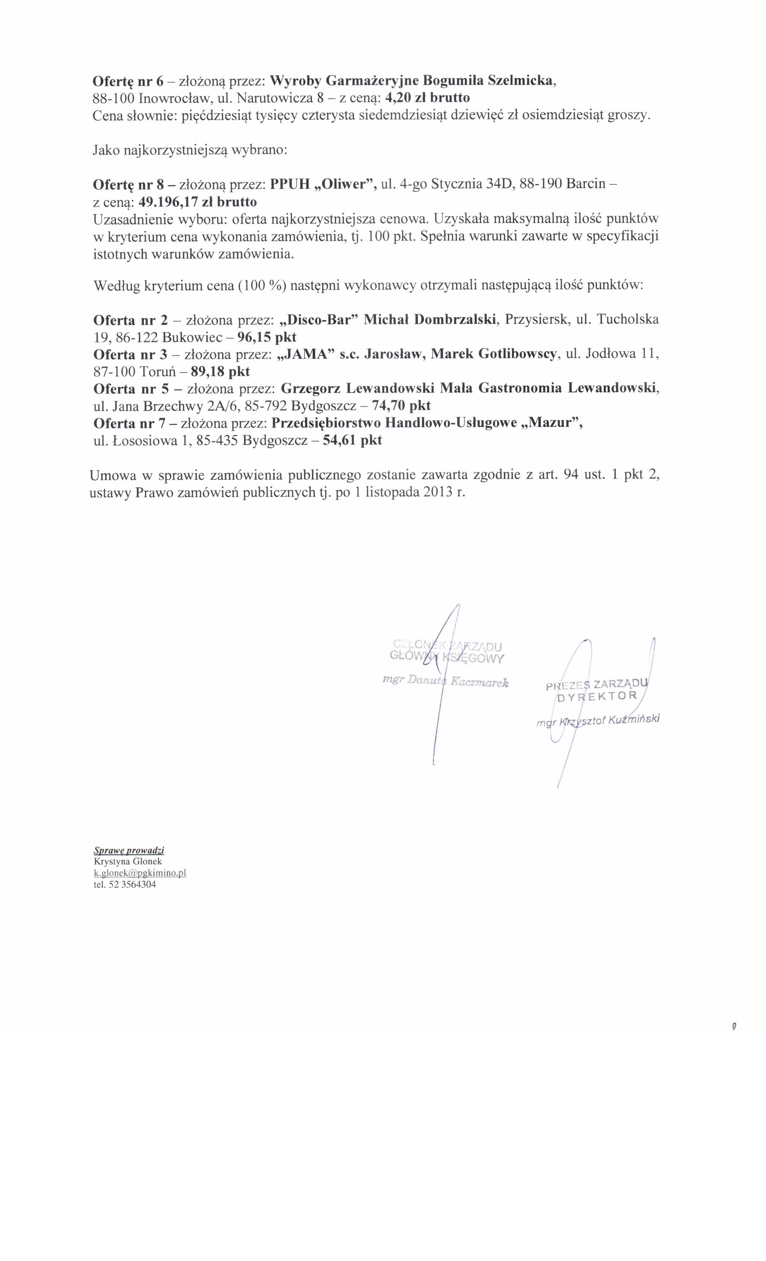 | Typ | Rozmiar | Pobierz | Komentarz | Data dodania | Licznik | ? | 21.1 KB | POBIERZ | Og艂oszenie | 2013-10-10 13:07:36 | 465 | .DOC | 256 KB | POBIERZ | Specyfikacja istotnych warunk贸w zam贸wienia | 2013-10-10 13:07:46 | 550 | graf. | 705.5 KB | POBIERZ | Wyb贸r wraz z informacj膮 o odrzuceniu 3 ofert | 2013-10-29 11:48:21 | 454 | graf. | 474.3 KB | POBIERZ | s.2 | 2013-10-29 11:48:37 | 453 | ? | 17.6 KB | POBIERZ | Og艂oszenie o udzieleniu zam贸wienia BZP nr 231919-2013 | 2013-11-05 10:06:57 | 468 |