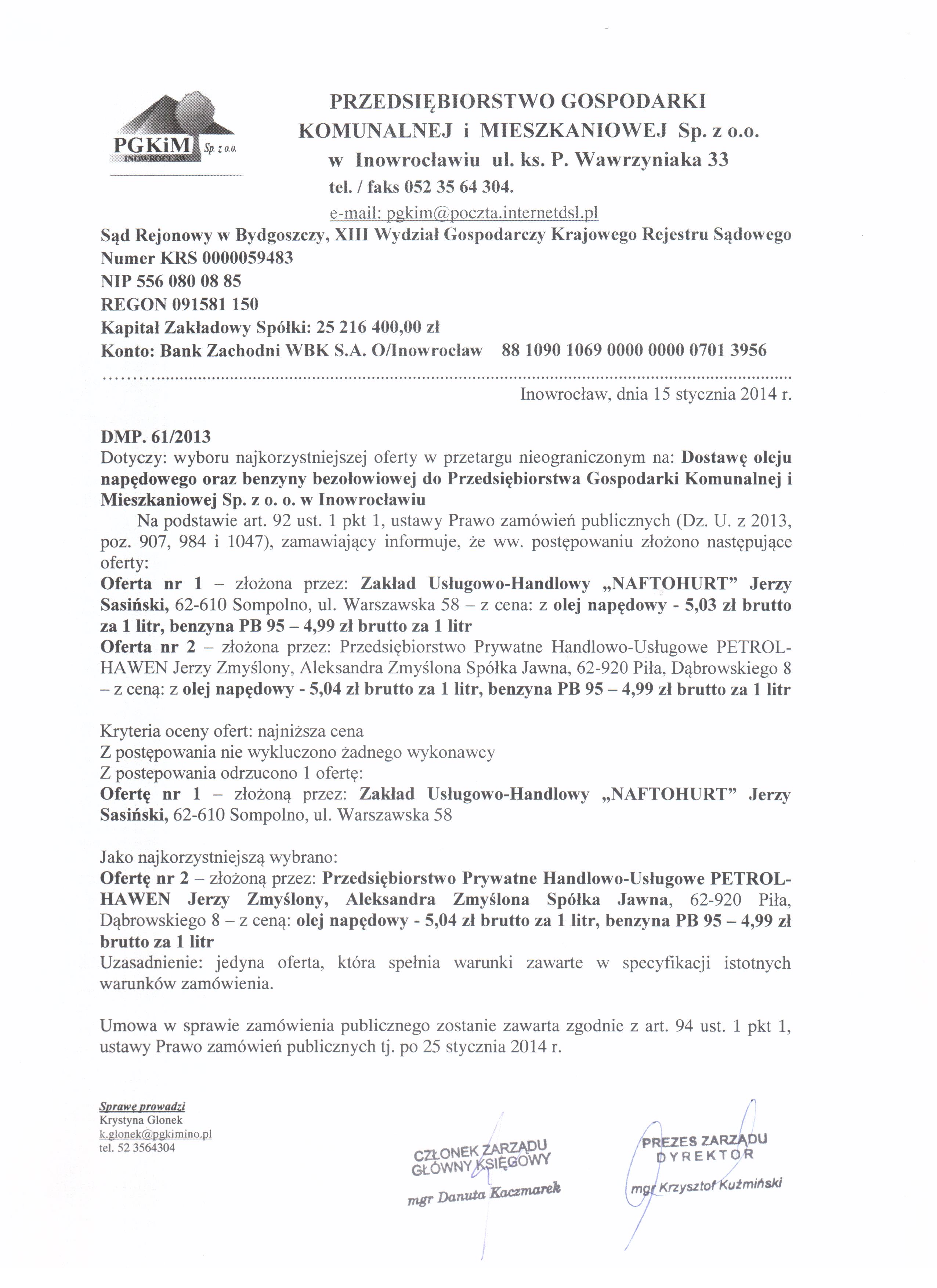 | Typ | Rozmiar | Pobierz | Komentarz | Data dodania | Licznik | ? | 30.2 KB | POBIERZ | Ogłoszenie | 2013-11-19 09:21:55 | 345 | .DOC | 309.5 KB | POBIERZ | Specyfikacja istotnych warunków zamówienia | 2013-11-19 09:23:19 | 711 | graf. | 668.7 KB | POBIERZ | Wybór wraz z informacją o odrzuceniu 1 oferty | 2014-01-15 10:34:01 | 346 | .PDF | 95 KB | POBIERZ | Przesłanie ogłoszenia do Dz. U. UE | 2014-02-12 09:01:54 | 345 | ? | 50.7 KB | POBIERZ | Ogłoszenie o udzieleniu zamówienia 2014/S 032-051531 | 2014-02-14 10:24:30 | 615 |
