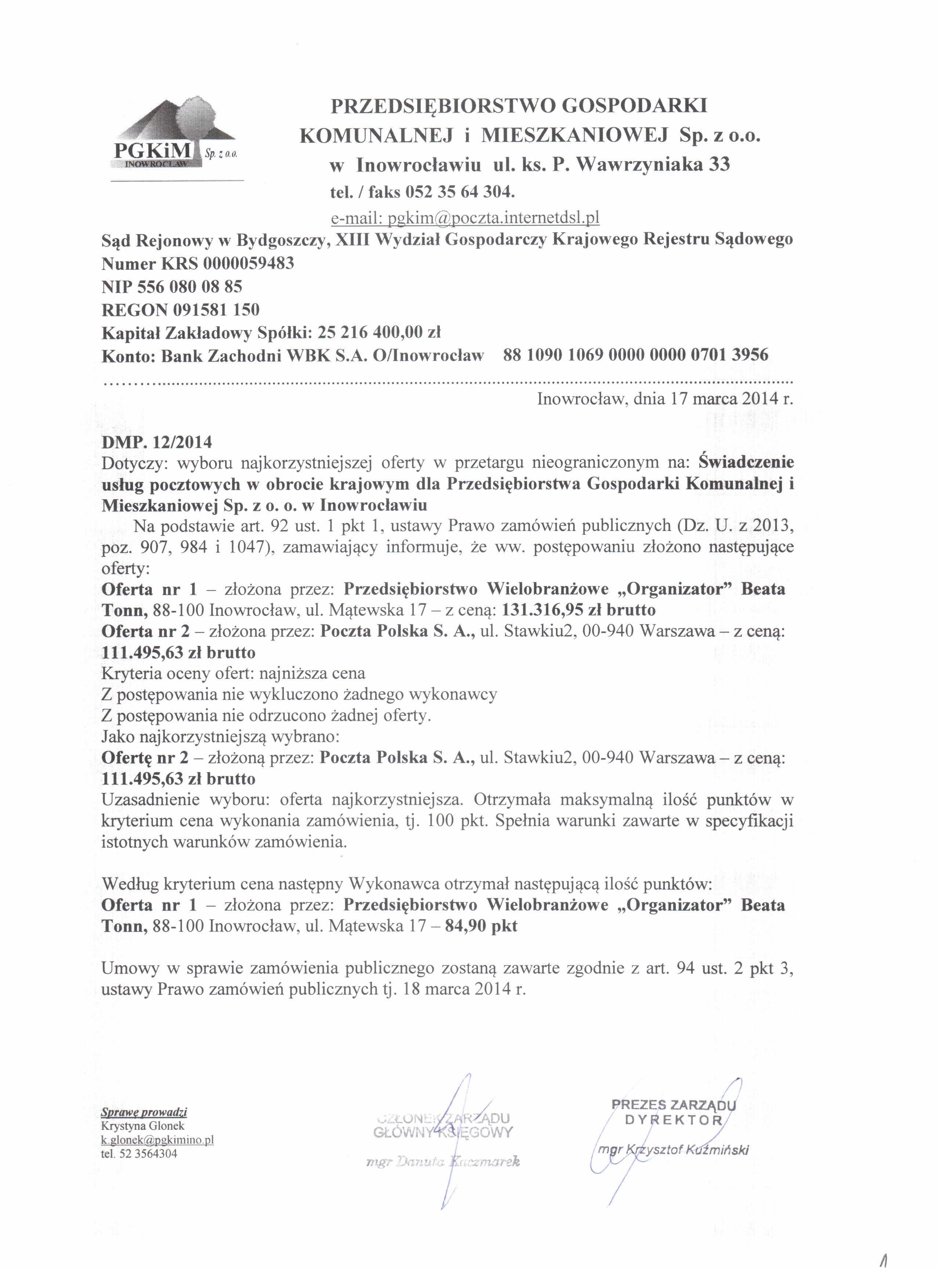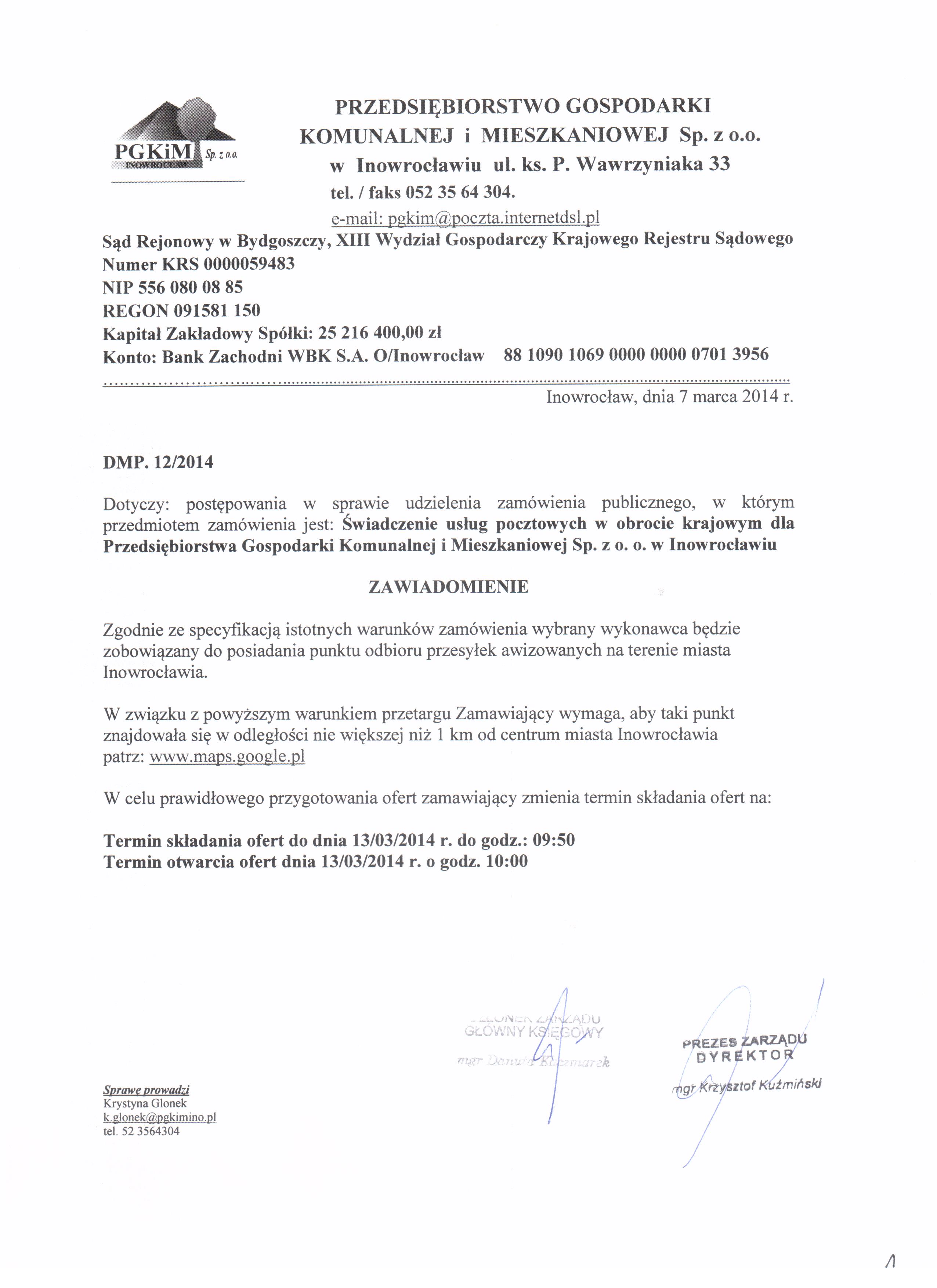 | Typ | Rozmiar | Pobierz | Komentarz | Data dodania | Licznik | ? | 19.7 KB | POBIERZ | Ogłoszenie | 2014-02-26 14:10:51 | 419 | .DOC | 292.5 KB | POBIERZ | Specyfikacja istotnych warunków zamówienia | 2014-02-26 14:12:03 | 513 | .ZIP | 2040.9 KB | POBIERZ | Odpowiedzi na zapytania | 2014-03-06 13:50:26 | 404 | graf. | 513.2 KB | POBIERZ | Wyjaśnienie siwz i zmiana terminu | 2014-03-07 12:16:48 | 466 | ? | 2.7 KB | POBIERZ | Ogłoszenie o zmianie ogłoszenia BZP 49269-2014 | 2014-03-07 12:24:03 | 616 | graf. | 645.3 KB | POBIERZ | Wybór | 2014-03-17 14:58:14 | 422 | ? | 17 KB | POBIERZ | Ogłoszenie o udzieleniu zamówienia BZP nr 97658-2014 | 2014-03-24 08:21:59 | 355 |