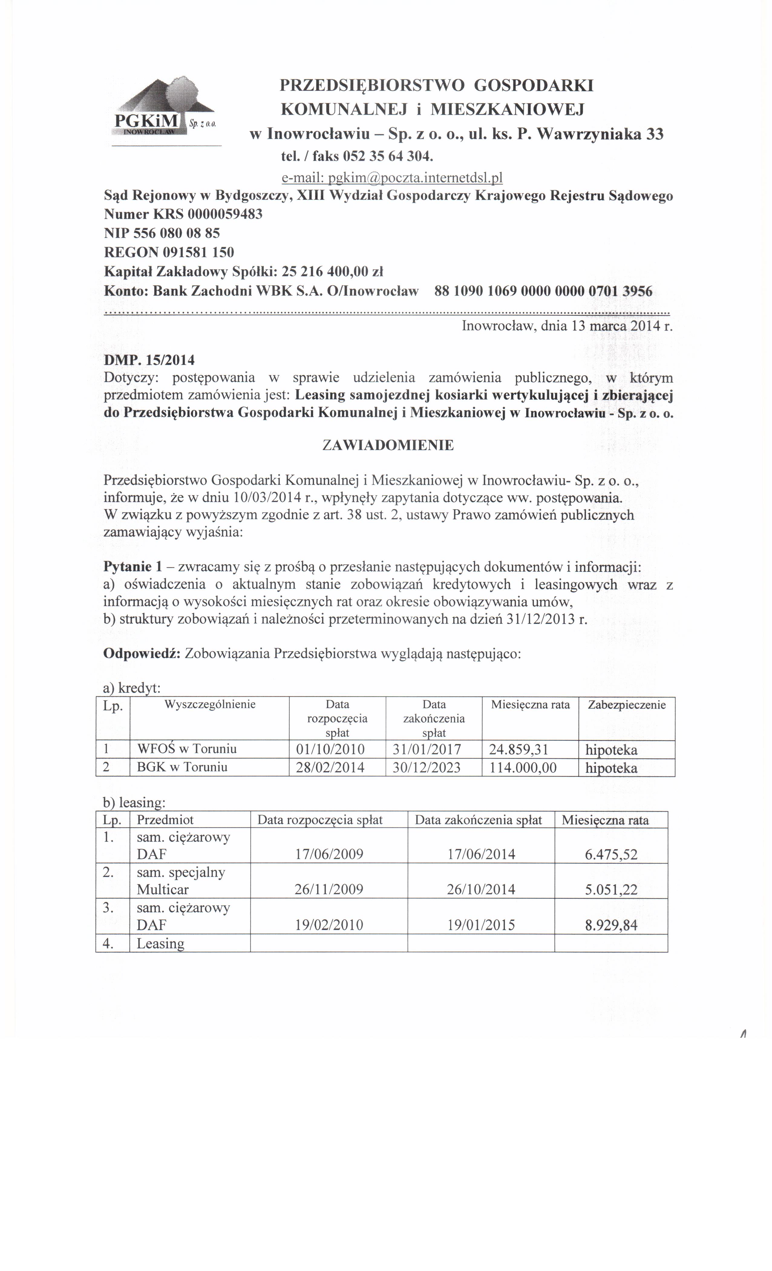 | Typ | Rozmiar | Pobierz | Komentarz | Data dodania | Licznik | ? | 19.6 KB | POBIERZ | Ogłoszenie | 2014-03-07 13:42:33 | 432 | .DOC | 224 KB | POBIERZ | Specyfikacja istotnych warunków zamówienia | 2014-03-07 13:42:43 | 481 | ? | 15.1 KB | POBIERZ | Zał. nr 6 do siwz - OT | 2014-03-07 13:43:00 | 487 | .ZIP | 5704.4 KB | POBIERZ | Zał. nr 7 di siwz - F-01 za 2013 r. | 2014-03-07 13:43:30 | 452 | graf. | 725.1 KB | POBIERZ | Odpowiedzi na zapytania | 2014-03-13 14:11:24 | 404 | graf. | 473.2 KB | POBIERZ | s.2 | 2014-03-13 14:11:37 | 383 | graf. | 661 KB | POBIERZ | Unieważnienie | 2014-03-25 15:27:04 | 409 |