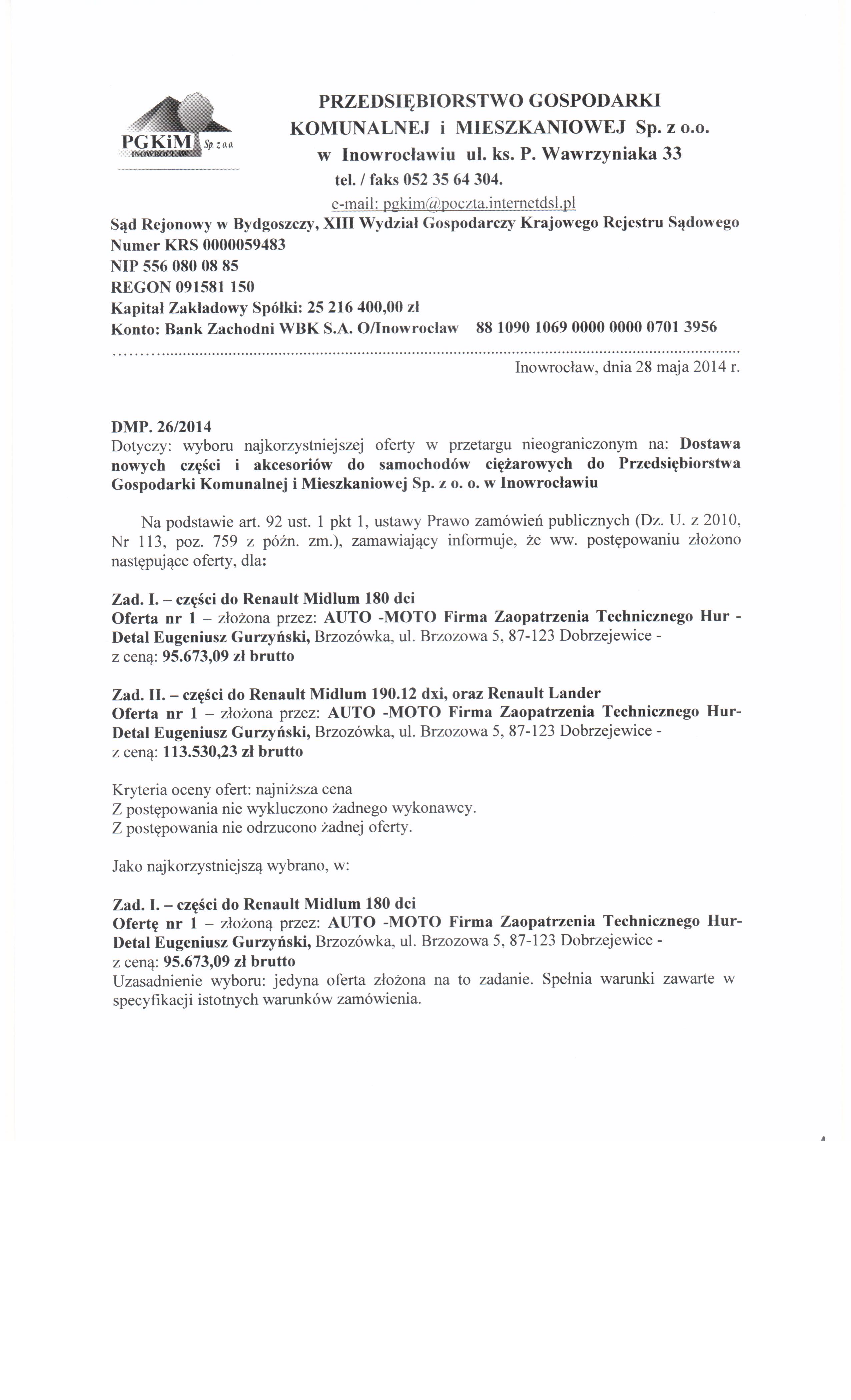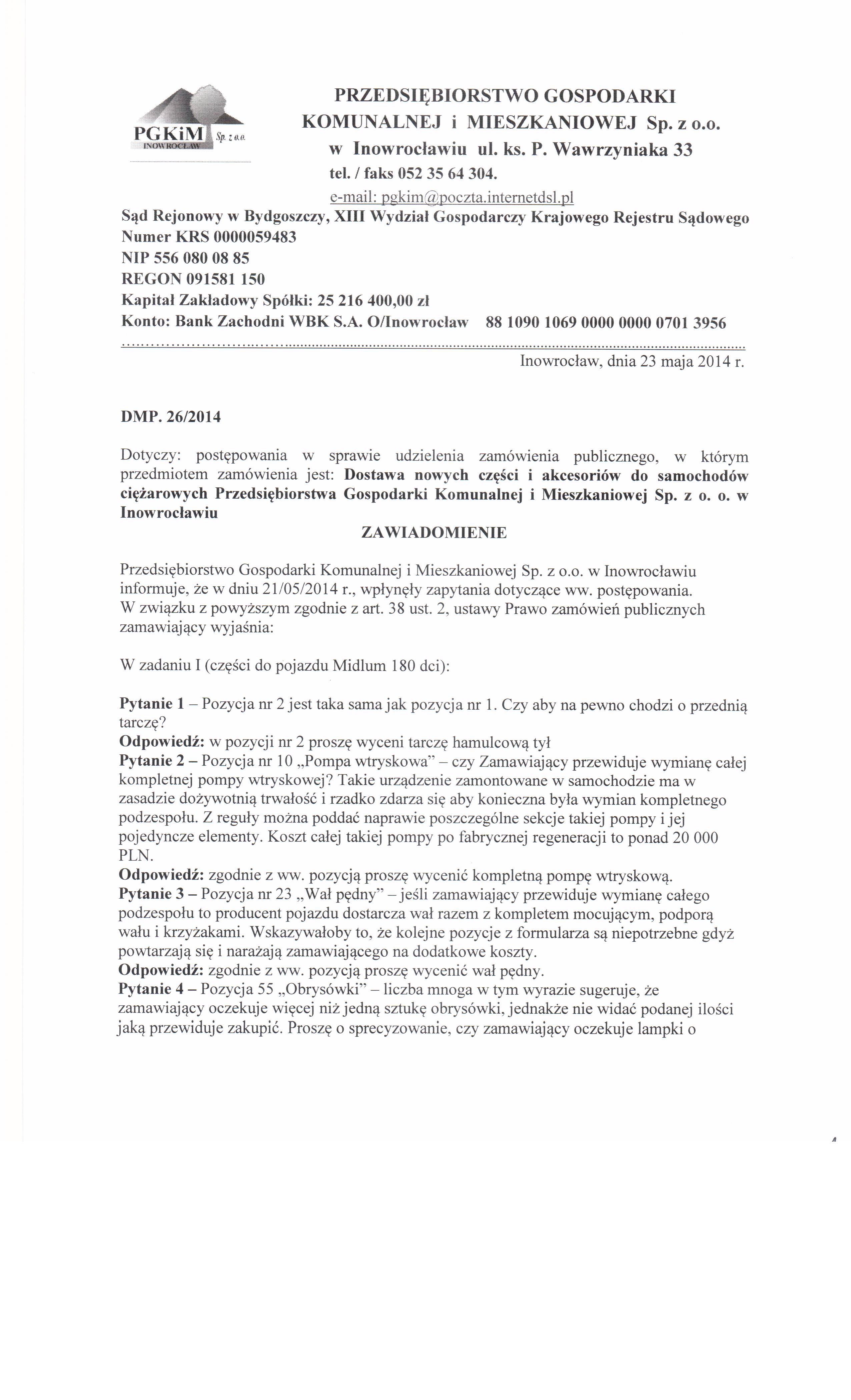 | Typ | Rozmiar | Pobierz | Komentarz | Data dodania | Licznik | ? | 20.9 KB | POBIERZ | Og艂oszenie | 2014-05-16 12:29:30 | 413 | .DOC | 246 KB | POBIERZ | Specyfikacja istotnych warunk贸w zam贸wienia | 2014-05-16 12:29:40 | 460 | .XLS | 38.5 KB | POBIERZ | Za艂. nr 7 do siwz | 2014-05-16 12:29:58 | 474 | graf. | 741.9 KB | POBIERZ | Odpowiedzi na zapytania | 2014-05-23 11:03:57 | 416 | graf. | 685.9 KB | POBIERZ | s.2 | 2014-05-23 11:04:10 | 404 | graf. | 630.7 KB | POBIERZ | Wyb贸r | 2014-05-28 13:33:15 | 395 | graf. | 319.6 KB | POBIERZ | s.2 | 2014-05-28 13:33:28 | 438 | ? | 18 KB | POBIERZ | Og艂oszenie o udzieleniu zam贸wienia BZP nr 143043-2014 | 2014-07-03 08:21:31 | 417 |