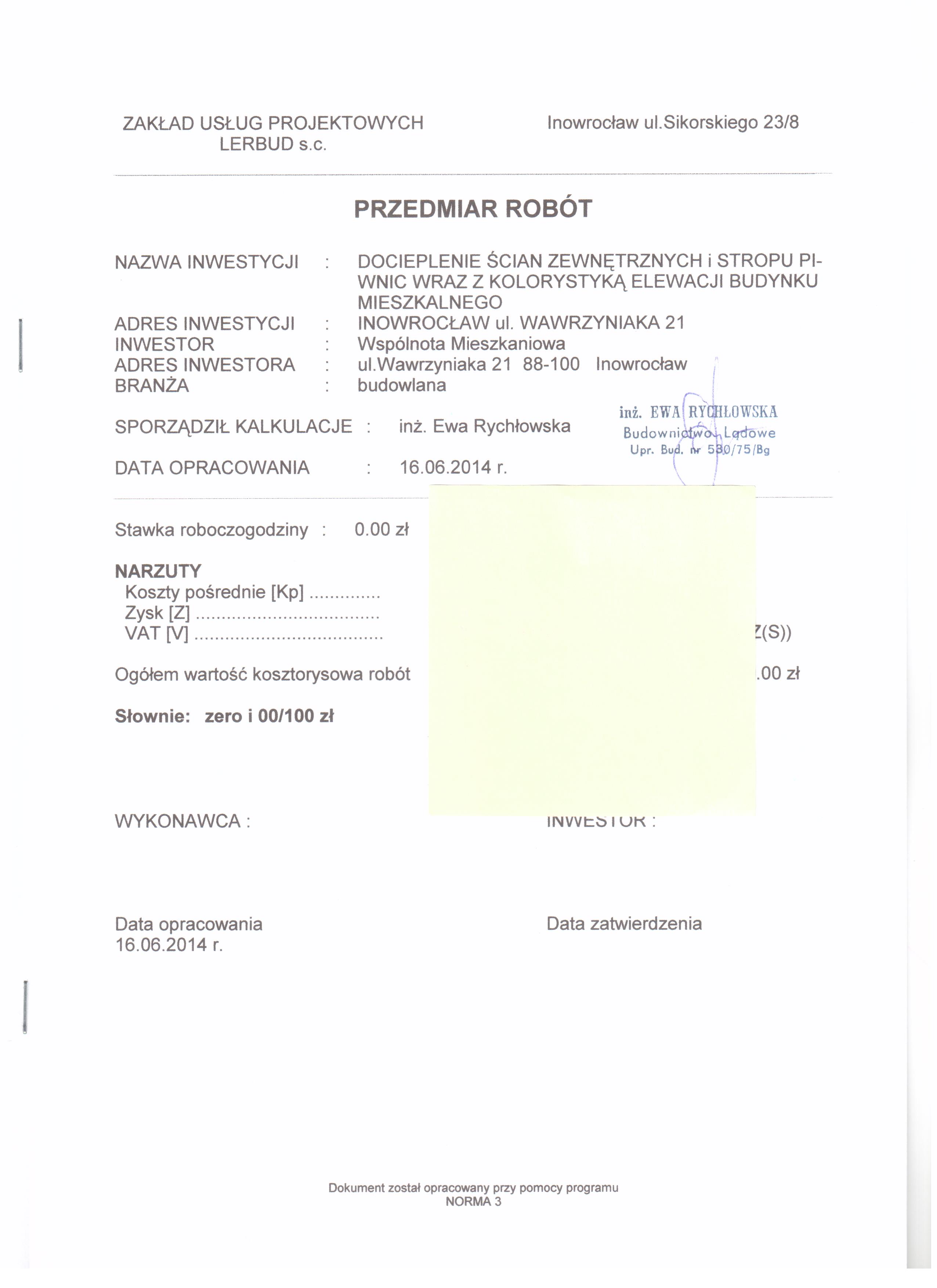 Docieplenie ścian zewnętrznych, remont i malowanie klatki schodowej, wymiana stolarki okiennej i drzwiowej oraz obróbki blacharskie budynku Wspólnoty Mieszkaniowej Wawrzyniaka 21 w Inowrocławiu
