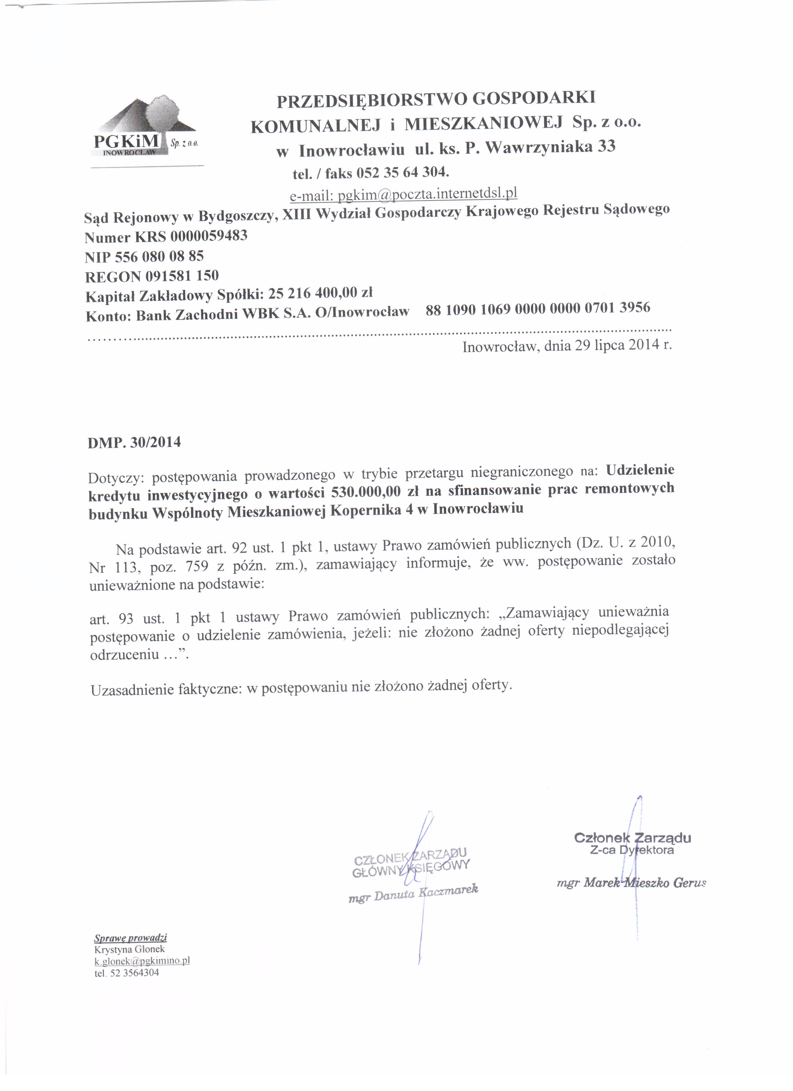 Udzielenie kredytu inwestycyjnego o wartości 530.000,00 zł na sfinansowanie prac remontowych budynku Wspólnoty Mieszkaniowej Kopernika 4 w Inowrocławiu