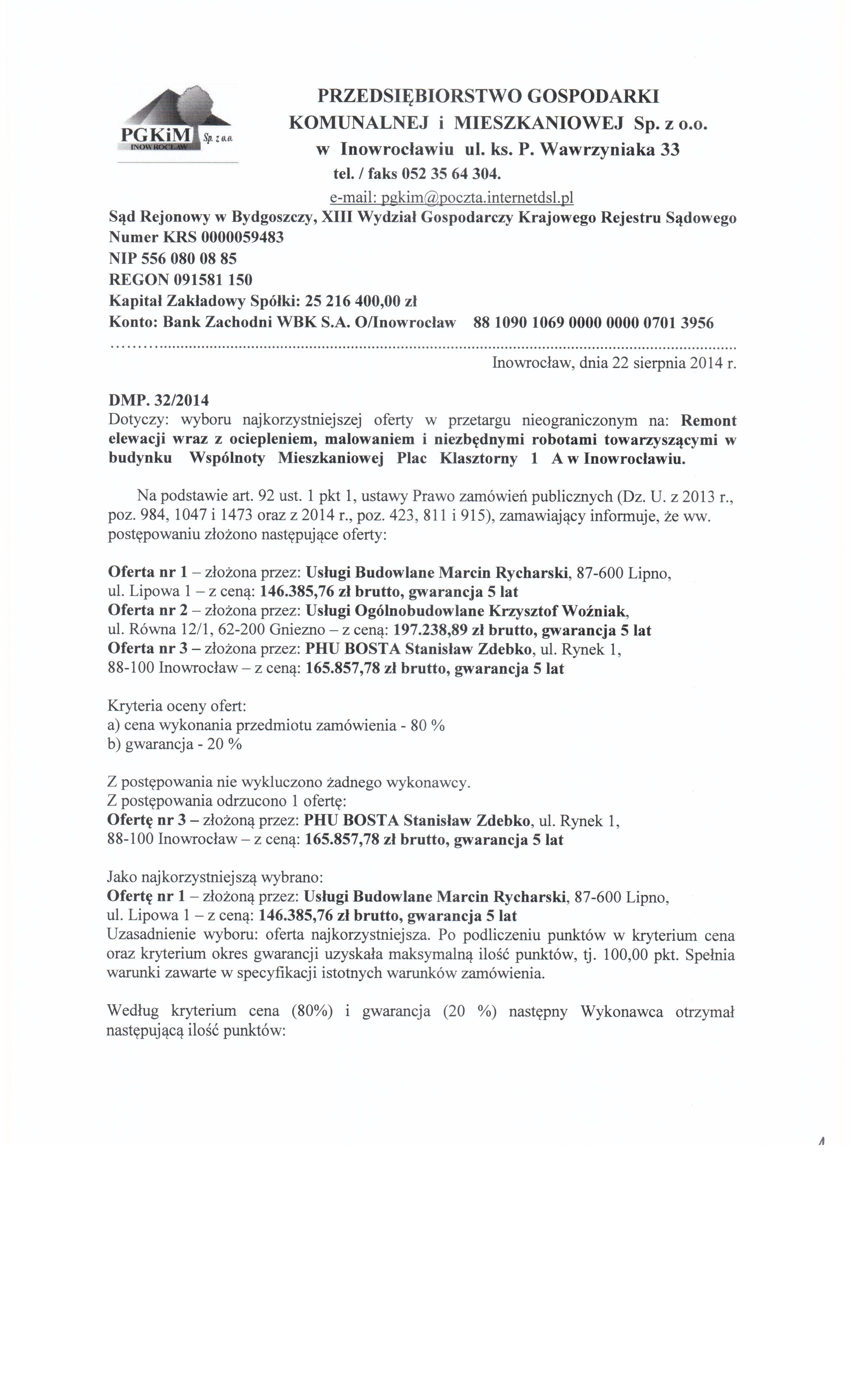 | Typ | Rozmiar | Pobierz | Komentarz | Data dodania | Licznik | ? | 20.8 KB | POBIERZ | Og艂oszenie | 2014-07-30 13:15:32 | 374 | ? | 16.5 KB | POBIERZ | Og艂oszenie o zmianie og艂oszenia | 2014-07-30 13:16:07 | 413 | .DOC | 329.5 KB | POBIERZ | Specyfikacja istotnych warunk贸w zam贸wienia | 2014-07-30 13:16:19 | 591 | .ZIP | 2375.9 KB | POBIERZ | Za艂. nr 8 do siwz- STWiOR | 2014-07-30 13:17:55 | 587 | .ZIP | 5110.2 KB | POBIERZ | Za艂. nr 9 do siwz-przedmiar | 2014-07-30 13:19:03 | 586 | .ZIP | 12486 KB | POBIERZ | Za艂. nr 10 do siwz -PB | 2014-07-30 13:20:13 | 625 | graf. | 702.9 KB | POBIERZ | Wyb贸r | 2014-08-22 12:14:12 | 427 | graf. | 267.6 KB | POBIERZ | s.2 | 2014-08-22 12:14:23 | 375 | ? | 17.2 KB | POBIERZ | Og艂oszenie o udzieleniu zam贸wienia BZP 186749-2014 | 2014-09-02 08:01:13 | 381 |