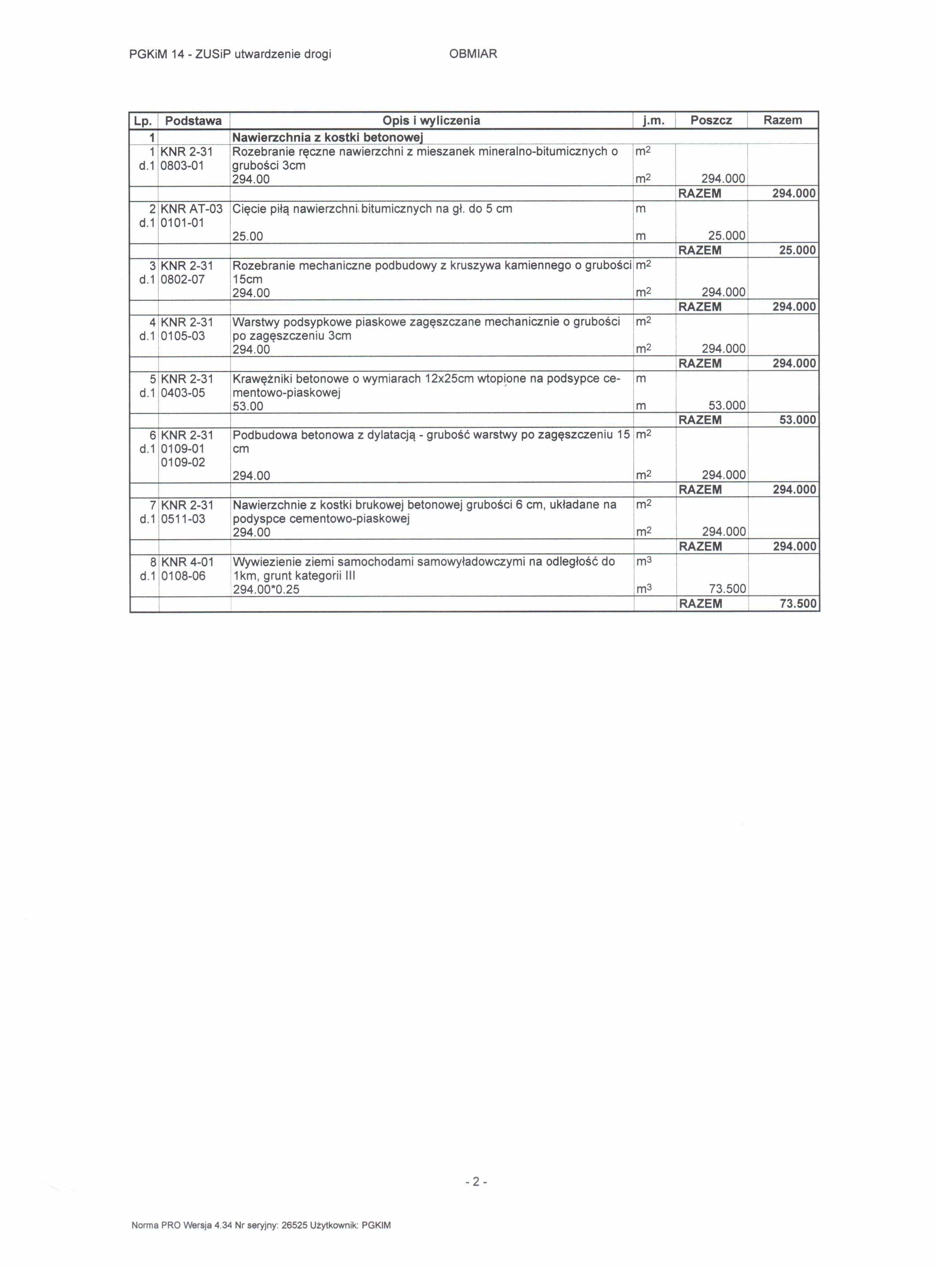 | Typ | Rozmiar | Pobierz | Komentarz | Data dodania | Licznik | ? | 21.8 KB | POBIERZ | Ogłoszenie | 2014-09-03 14:09:33 | 365 | .DOC | 282.5 KB | POBIERZ | Specyfikacja istotnych warunków zamówienia | 2014-09-03 14:09:44 | 457 | .DOC | 71.5 KB | POBIERZ | Zał. nr 7 do siwz - STWiOR | 2014-09-03 14:10:00 | 499 | graf. | 435.4 KB | POBIERZ | Zał. nr 8 do siwz - przedmiar | 2014-09-03 14:10:26 | 493 | graf. | 424.3 KB | POBIERZ | s.2 | 2014-09-03 14:10:34 | 523 | graf. | 448.3 KB | POBIERZ | Wyjaśnienie siwz | 2014-09-09 13:47:46 | 367 | graf. | 641.2 KB | POBIERZ | Wybór | 2014-09-22 13:08:59 | 419 | ? | 17.1 KB | POBIERZ | Ogłoszenie o udzieleniu zamówienia BZP nr 206265-2014 | 2014-09-30 09:04:35 | 348 |
