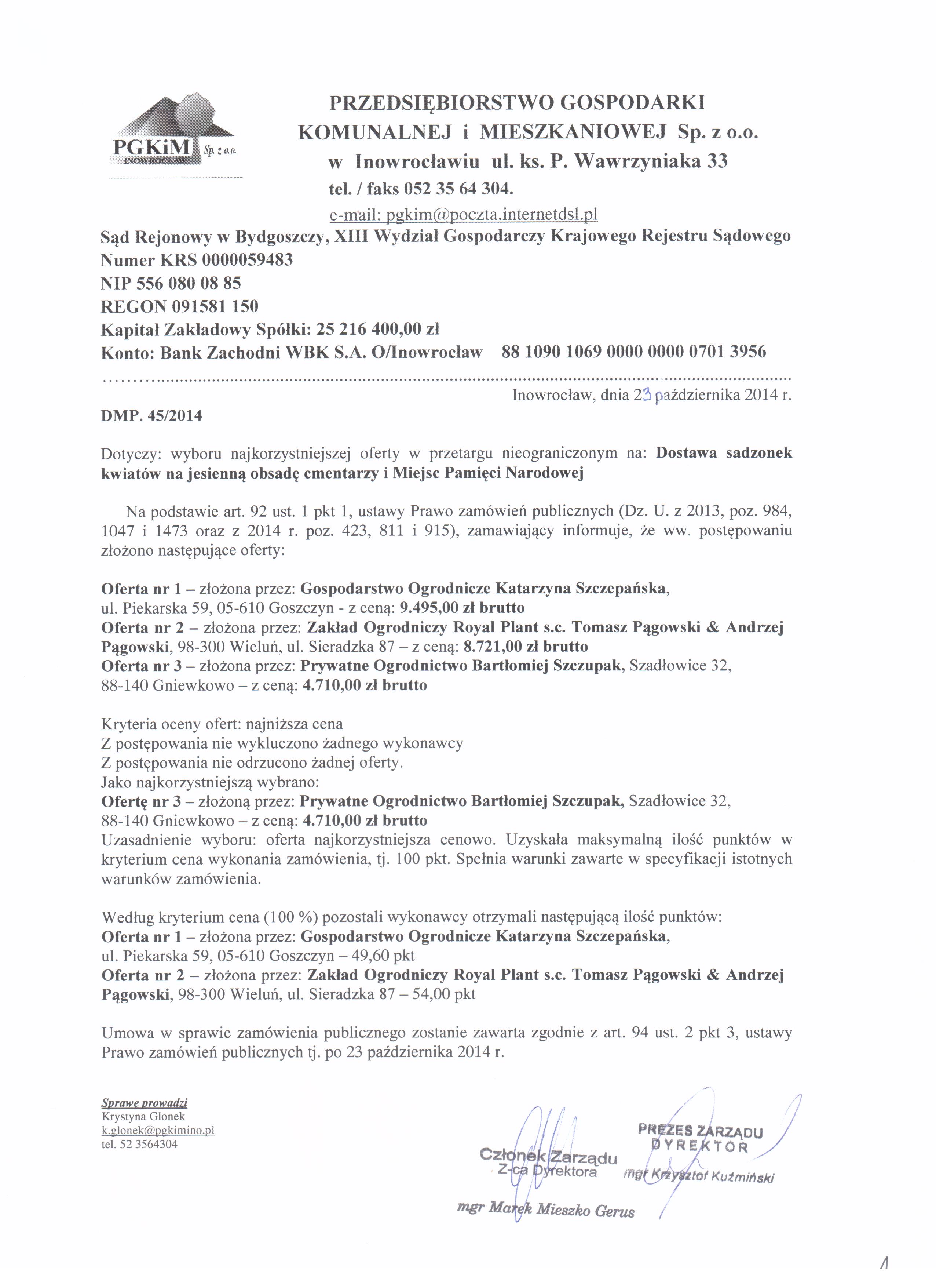 | Typ | Rozmiar | Pobierz | Komentarz | Data dodania | Licznik | ? | 19.5 KB | POBIERZ | Ogłoszenie | 2014-10-09 13:40:39 | 398 | .DOC | 213 KB | POBIERZ | Specyfikacja istotnych warunków zamówienia | 2014-10-09 13:41:35 | 431 | graf. | 657.4 KB | POBIERZ | Wybór | 2014-10-23 10:26:34 | 362 | ? | 16.9 KB | POBIERZ | Ogłoszenie o udzieleniu zamowienia BZP nr 228173-2014 | 2014-10-30 08:33:59 | 385 |