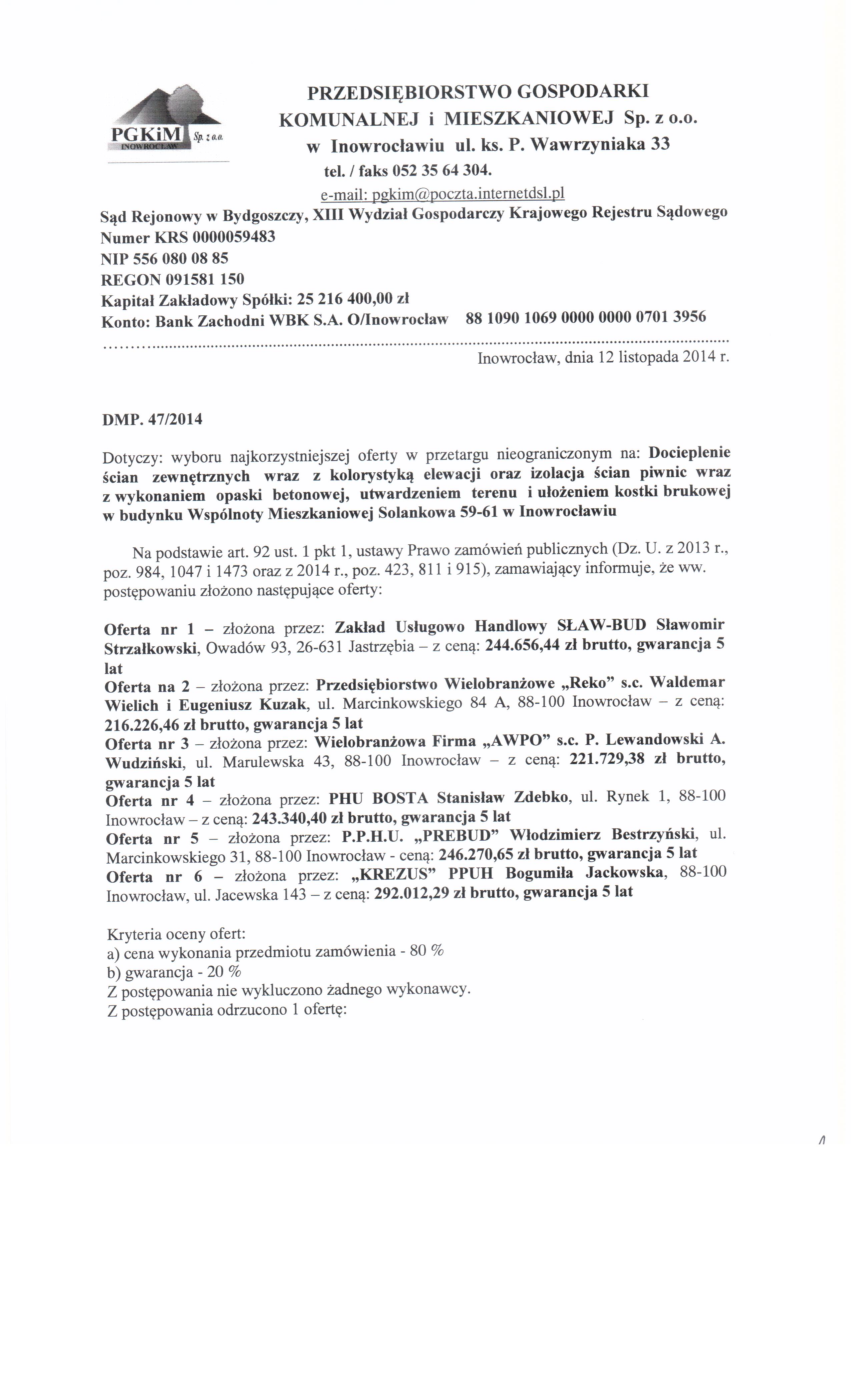 15/10/2014 Ogłoszenie o zamówieniu - DMP. 47/2014