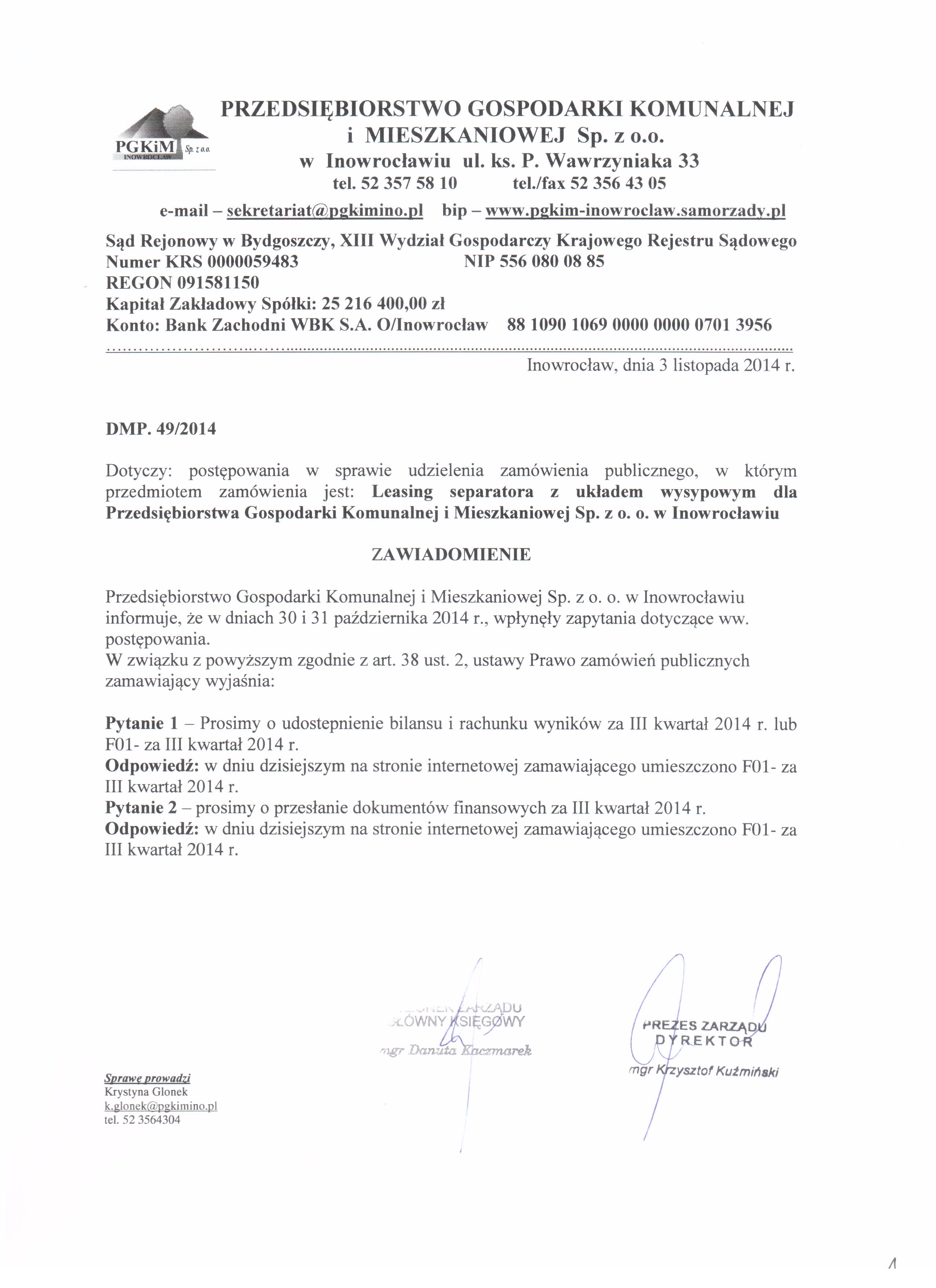 | Typ | Rozmiar | Pobierz | Komentarz | Data dodania | Licznik | ? | 19.6 KB | POBIERZ | Ogłoszenie | 2014-10-29 13:16:57 | 428 | .DOC | 259 KB | POBIERZ | Specyfikacja istotnych warunków zamówienia | 2014-10-29 13:17:10 | 450 | ? | 24.4 KB | POBIERZ | Zał. nr 6 do siwz - OPZ | 2014-10-29 13:17:43 | 419 | .ZIP | 5704.4 KB | POBIERZ | Zał. nr 7 do siwz - F-01 za 2013 r. | 2014-10-29 13:18:07 | 423 | graf. | 537.7 KB | POBIERZ | Odpowiedzi na zapytania | 2014-11-03 13:09:22 | 405 | .ZIP | 5496.5 KB | POBIERZ | F-01 za III kw. 2014 | 2014-11-03 13:10:05 | 397 | graf. | 583.7 KB | POBIERZ | Odpowiedzi na zapytania II | 2014-11-05 14:37:24 | 369 | graf. | 552.4 KB | POBIERZ | Wybór | 2014-11-18 13:20:46 | 426 | ? | 17.5 KB | POBIERZ | Ogłoszenie o udzieleniu zamowienia BZP nr 259467-2014 | 2014-12-16 12:44:01 | 415 |