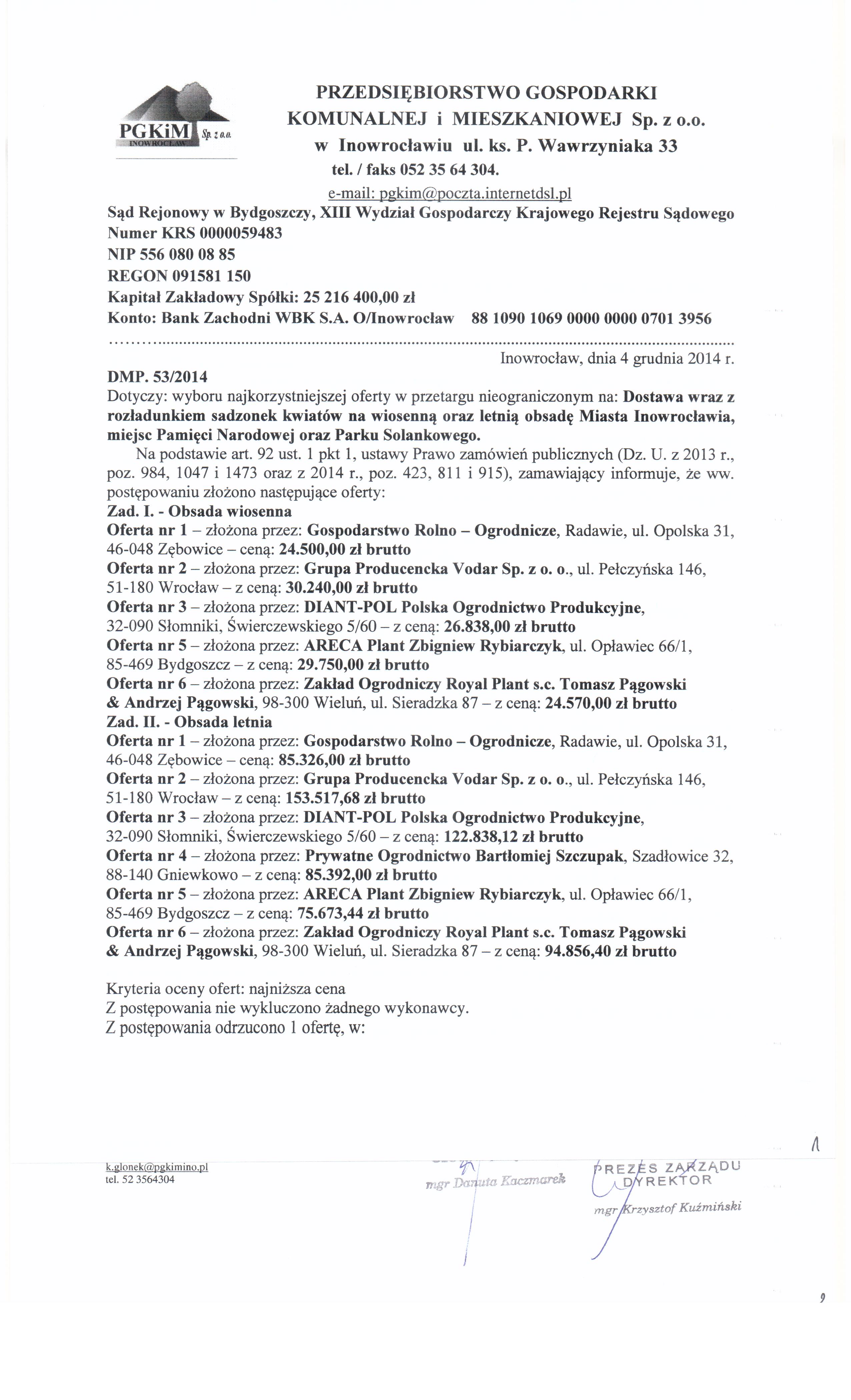 Dostawa wraz z roz艂adunkiem sadzonek kwiat贸w na wiosenn膮 oraz letni膮 obsad臋 Miasta Inowroc艂awia, miejsc Pami臋ci Narodowej oraz Parku Solankowego
