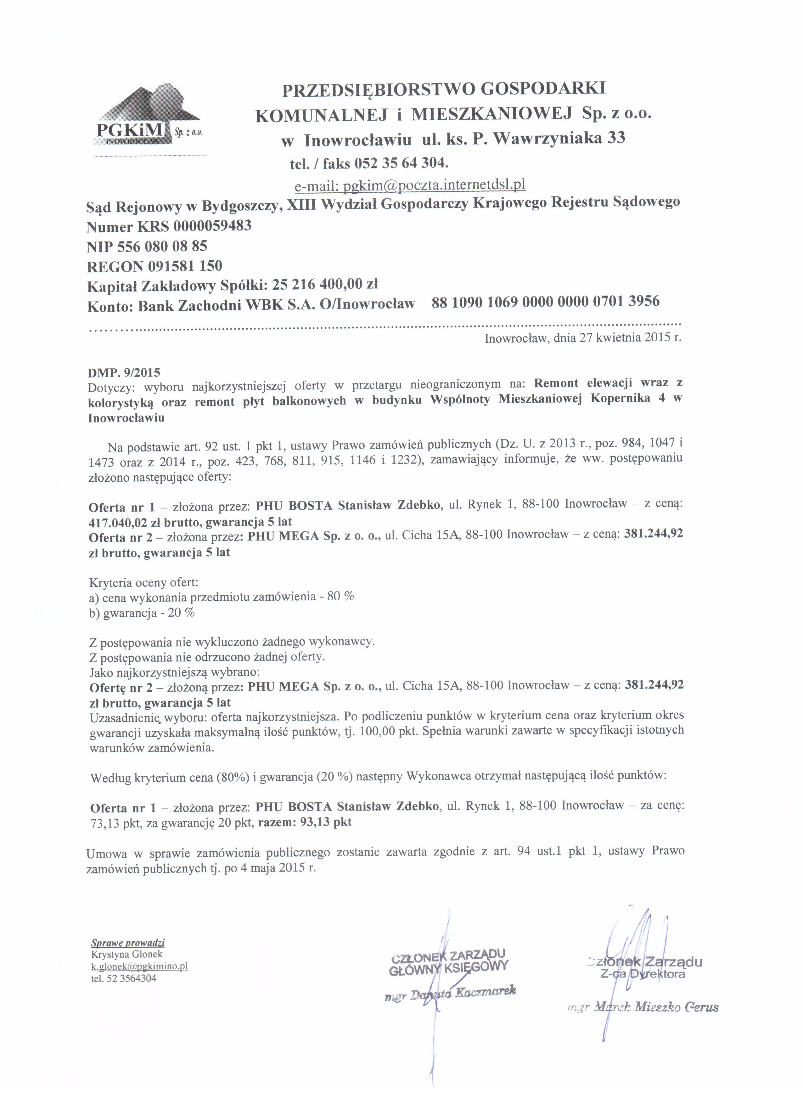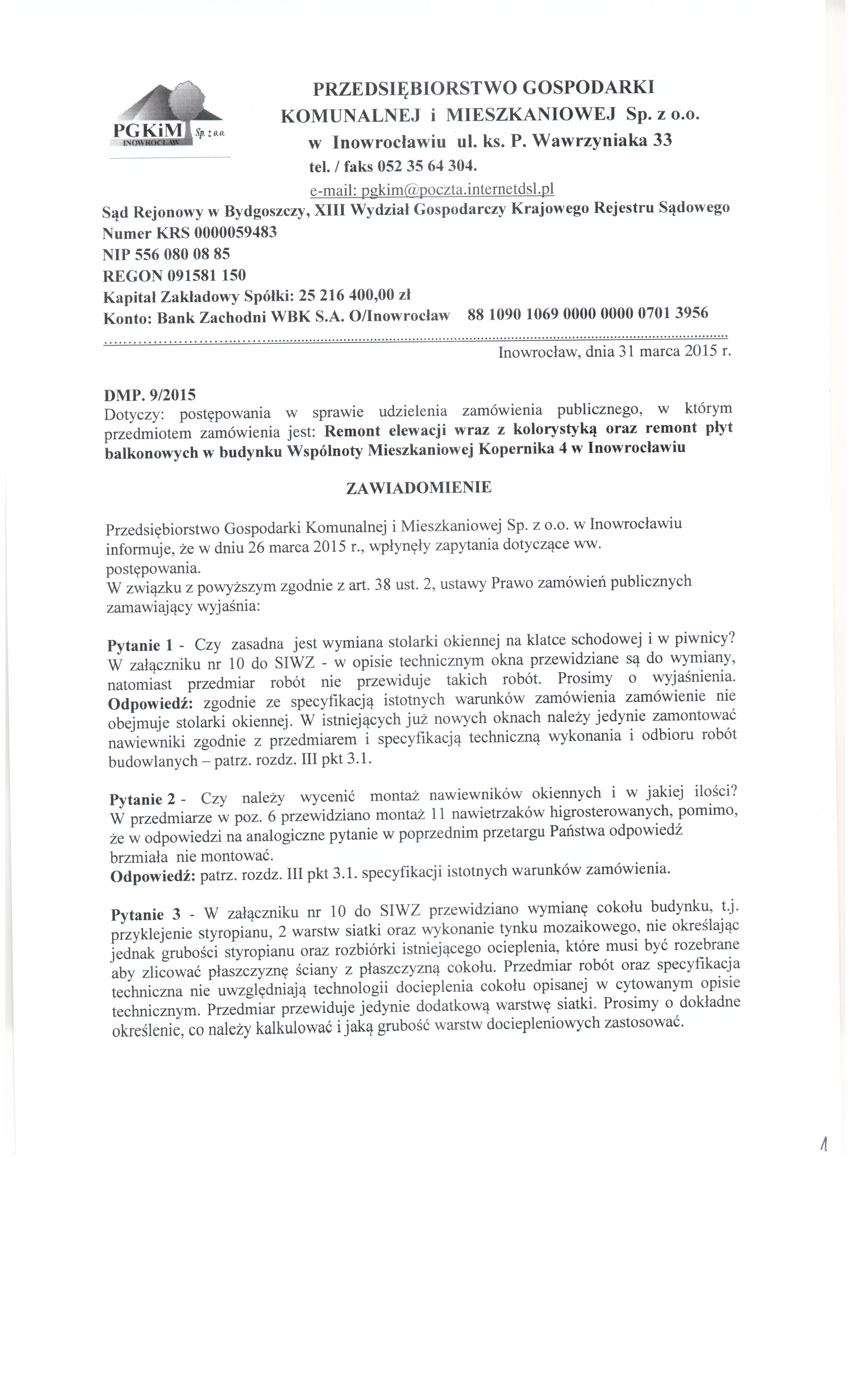 | Typ | Rozmiar | Pobierz | Komentarz | Data dodania | Licznik | ? | 24 KB | POBIERZ | Og艂oszenie | 2015-03-23 11:40:53 | 398 | .DOC | 346 KB | POBIERZ | Specyfikacja istotnych warunk贸w zam贸wienia | 2015-03-23 11:41:04 | 419 | .PDF | 1742.3 KB | POBIERZ | Za艂. nr 8 do siwz - STWiOR | 2015-03-23 11:41:48 | 704 | .PDF | 980.4 KB | POBIERZ | Za艂. nr 9 do siwz- przedmiar | 2015-03-23 11:42:08 | 459 | .PDF | 50.6 KB | POBIERZ | Za艂. na 10 do siwz - PB | 2015-03-23 11:42:50 | 458 | .PDF | 2644 KB | POBIERZ | Rys. 1 | 2015-03-23 11:43:20 | 479 | .PDF | 1496.8 KB | POBIERZ | Rys. 2 | 2015-03-23 11:43:29 | 412 | .PDF | 31.4 KB | POBIERZ | Informacja BIOZ | 2015-03-23 11:44:05 | 470 | graf. | 779.1 KB | POBIERZ | Odpowiedzi na zapytania | 2015-03-31 10:56:43 | 368 | graf. | 776.8 KB | POBIERZ | s.2 | 2015-03-31 10:56:55 | 374 | graf. | 276 KB | POBIERZ | s.3 | 2015-03-31 10:57:06 | 341 | graf. | 596.3 KB | POBIERZ | Wyb贸r | 2015-04-27 10:13:46 | 404 | ? | 17.5 KB | POBIERZ | Og艂oszenie o udzieleniu zam贸wienia BZP nr 71631-2015 | 2015-05-19 09:49:51 | 344 |