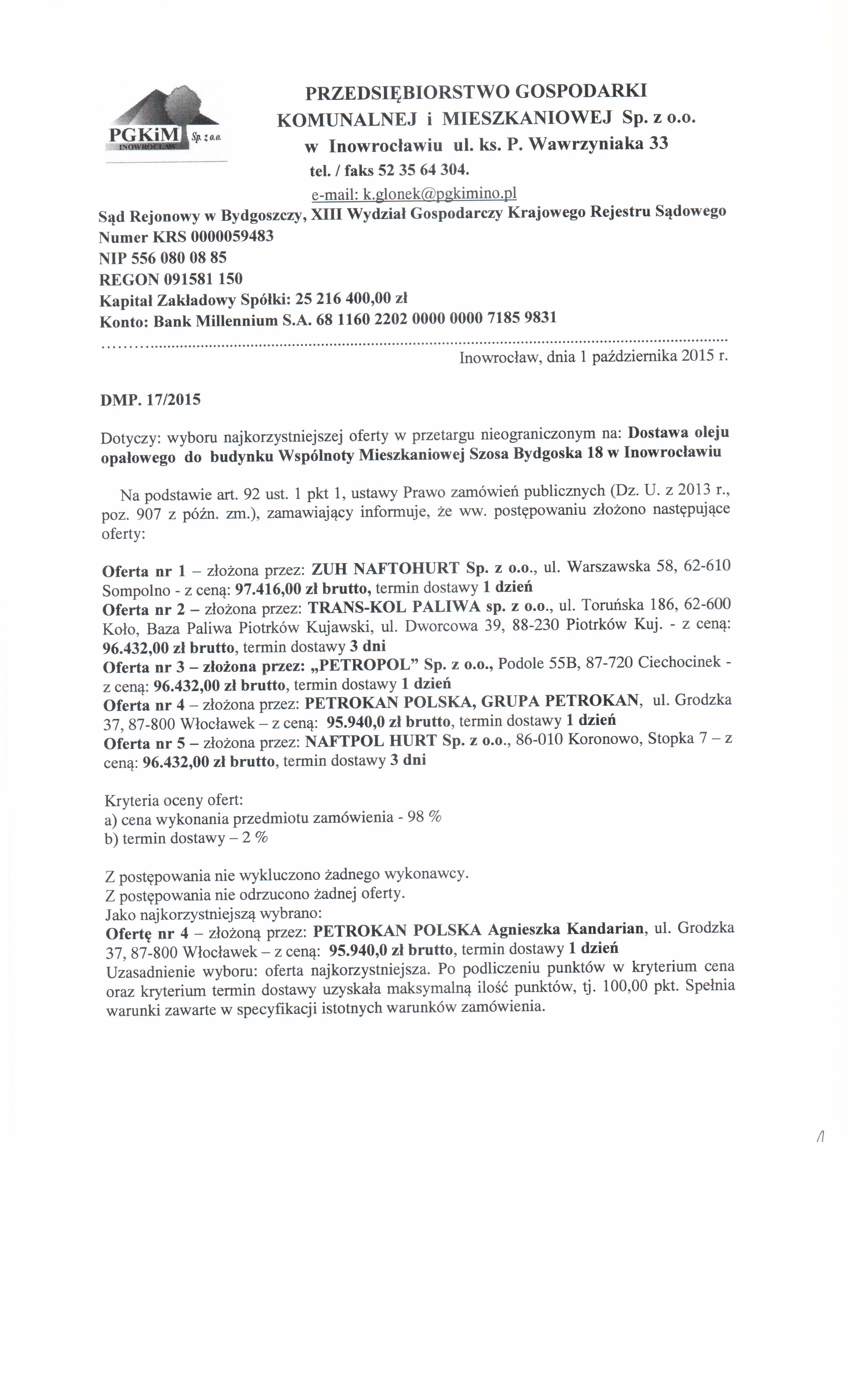 | Typ | Rozmiar | Pobierz | Komentarz | Data dodania | Licznik | ? | 22.5 KB | POBIERZ | Og艂oszenie | 2015-09-10 10:30:23 | 421 | .DOC | 244.5 KB | POBIERZ | Specyfikacja istotnych warunk贸w zam贸wienia | 2015-09-10 10:30:37 | 409 | graf. | 702.7 KB | POBIERZ | Wyb贸r | 2015-10-01 12:39:56 | 402 | graf. | 398 KB | POBIERZ | s.2 | 2015-10-01 12:40:06 | 395 | ? | 16.9 KB | POBIERZ | Og艂oszenie o udzieleniu zam贸wienia BZP 152605-2015 | 2015-10-20 07:53:27 | 367 |