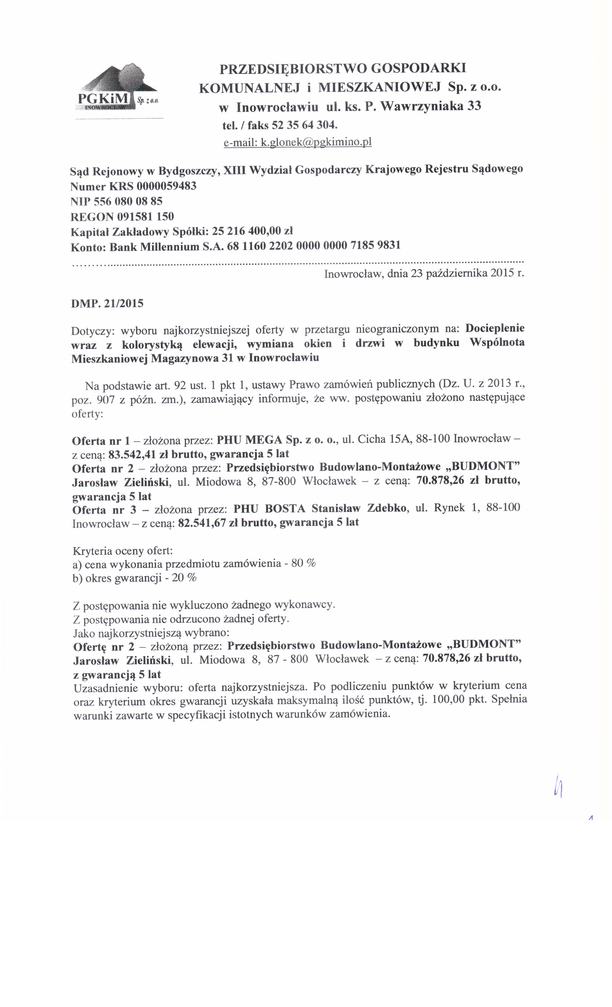 Docieplenie wraz z kolorystyk膮 elewacji, wymiana okien i drzwi w budynku Wsp贸lnoty Mieszkaniowej Magazynowa 31 w Inowroc艂awiu