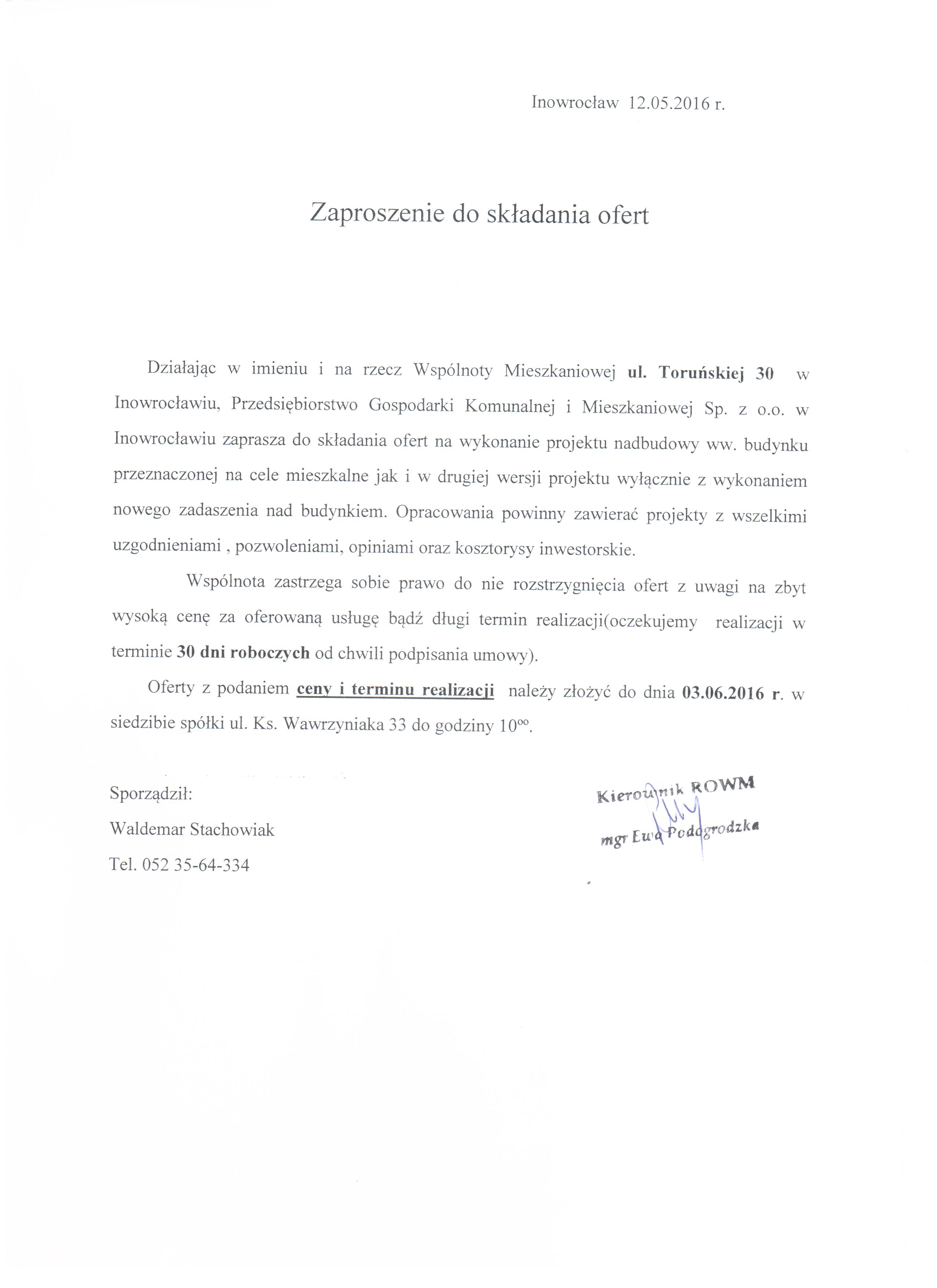 Wykonanie projektu dla budynku Wspólnoty Mieszkaniowej Toruńska 30 w Inowrocławiu