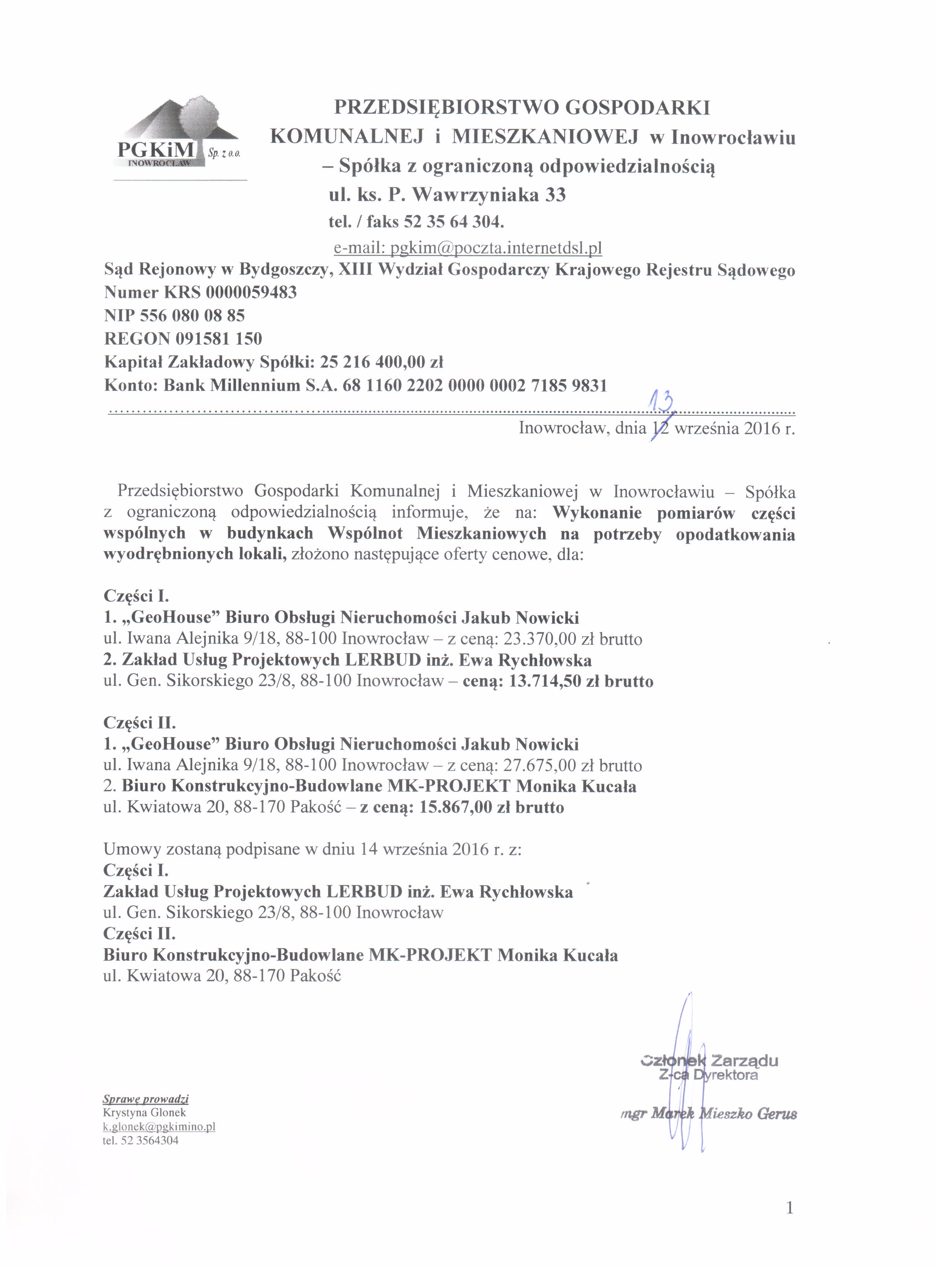 | Typ | Rozmiar | Pobierz | Komentarz | Data dodania | Licznik | .DOC | 126.5 KB | POBIERZ | Zaproszenie | 2016-09-02 10:21:02 | 386 | .DOC | 44.5 KB | POBIERZ | Wzór umowy | 2016-09-02 10:21:11 | 377 | .XLS | 46 KB | POBIERZ | Cz. I. | 2016-09-02 10:21:33 | 380 | .XLS | 50 KB | POBIERZ | Cz. II. | 2016-09-02 10:21:44 | 384 | graf. | 387.6 KB | POBIERZ | Odpowiedzi na zapytania | 2016-09-08 13:55:39 | 412 | graf. | 541.7 KB | POBIERZ | Wybór | 2016-09-13 11:53:35 | 398 |