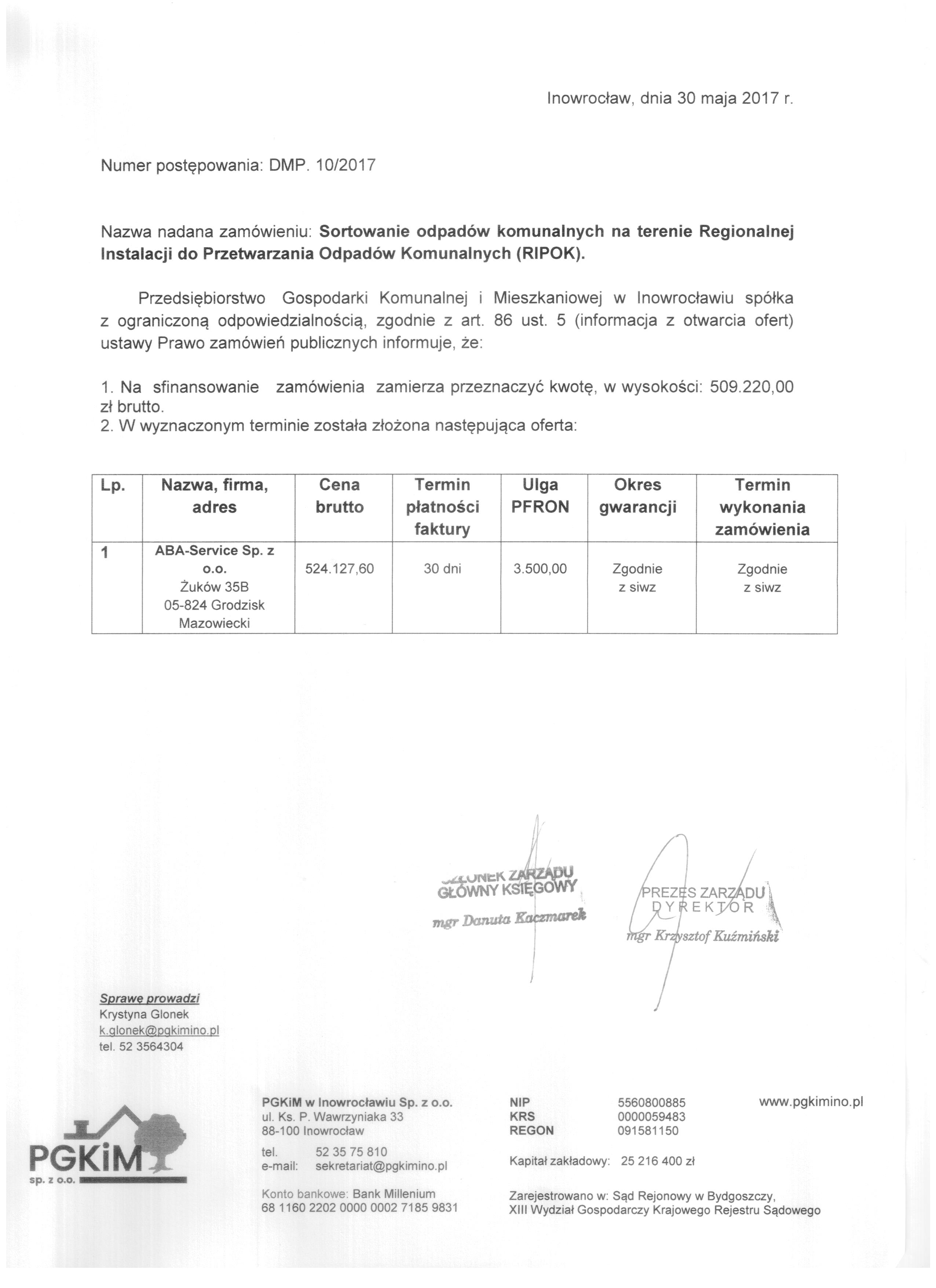 | Typ | Rozmiar | Pobierz | Komentarz | Data dodania | Licznik | ? | 20.5 KB | POBIERZ | Og艂oszenie o udzieleniu zam贸wienia nr 507517-N-2017 | 2017-05-12 14:22:24 | 392 | ? | 178.8 KB | POBIERZ | Specyfikcja istotnych warunk贸w zam贸wienia | 2017-05-12 14:22:35 | 457 | graf. | 440.5 KB | POBIERZ | Informacja z otwarcia ofert | 2017-05-30 11:50:55 | 381 | graf. | 448.1 KB | POBIERZ | Wyb贸r | 2017-06-01 08:44:35 | 359 | ? | 12.1 KB | POBIERZ | Og艂oszenie o udzieleniu zam贸wienia nr 101488-2017 | 2017-06-28 09:41:31 | 361 |