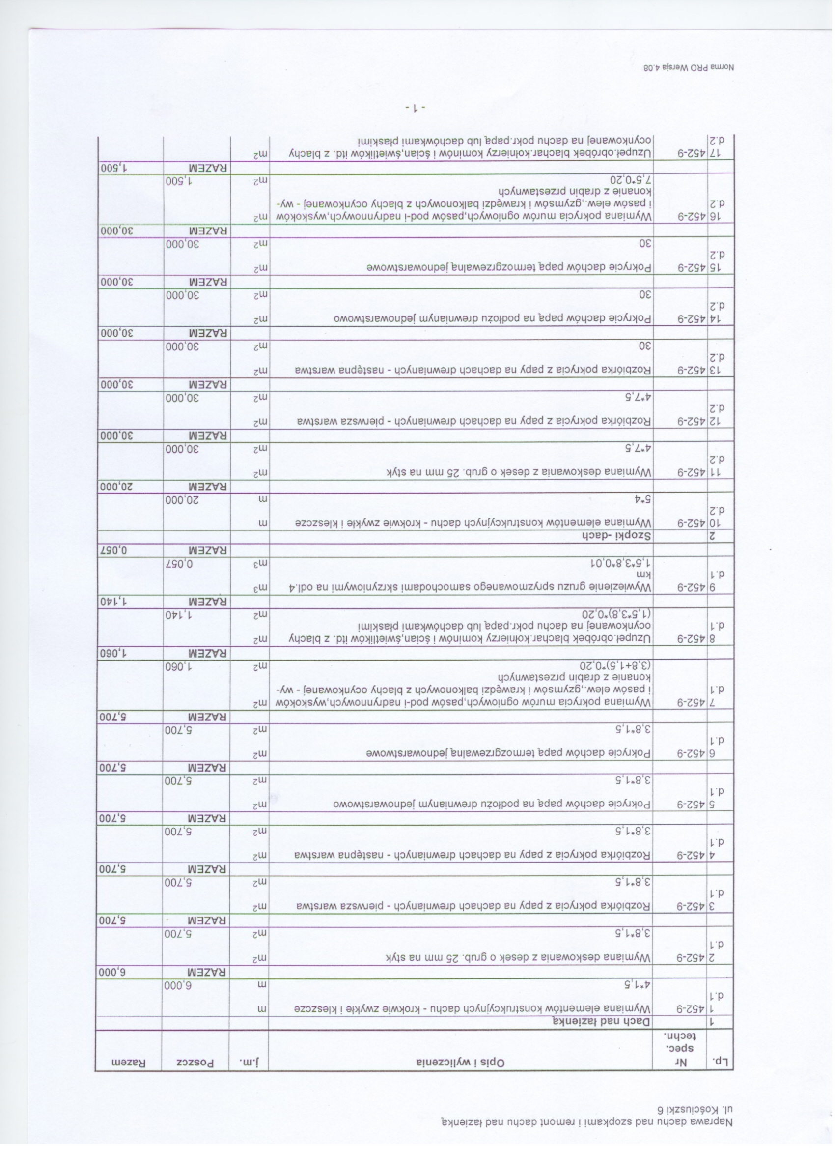 Przedmiot zam贸wienia obejmuje prace: rozebranie istniej膮cego pokrycia z papy, wykonanie obr贸bek聽 blacharskich, przemurowanie komin贸w, pokrycie dach贸w pap膮 termozgrzewaln膮. Zam贸wienie jest podzielone na 9 zada艅 z mo偶liwo艣ci膮 sk艂adania ofert cz臋艣ciowych. 聽